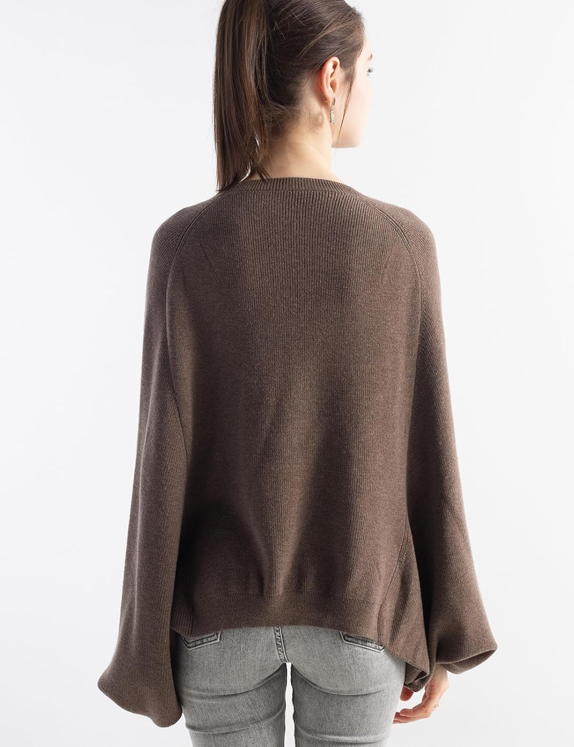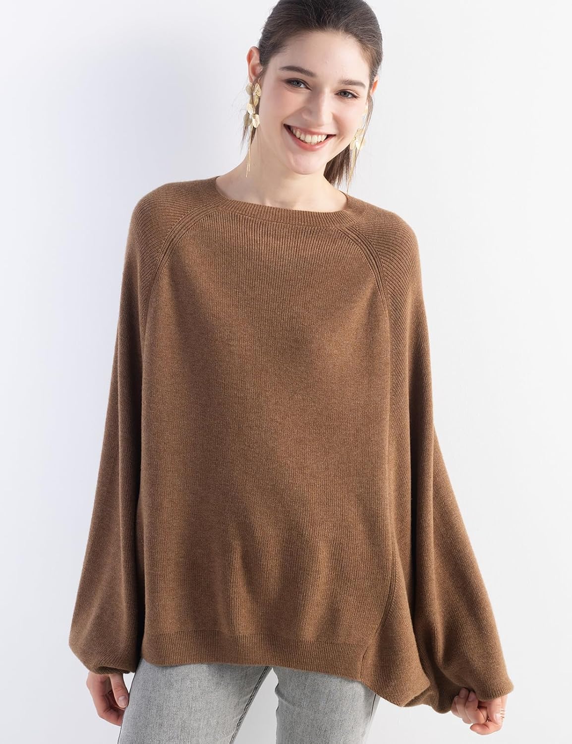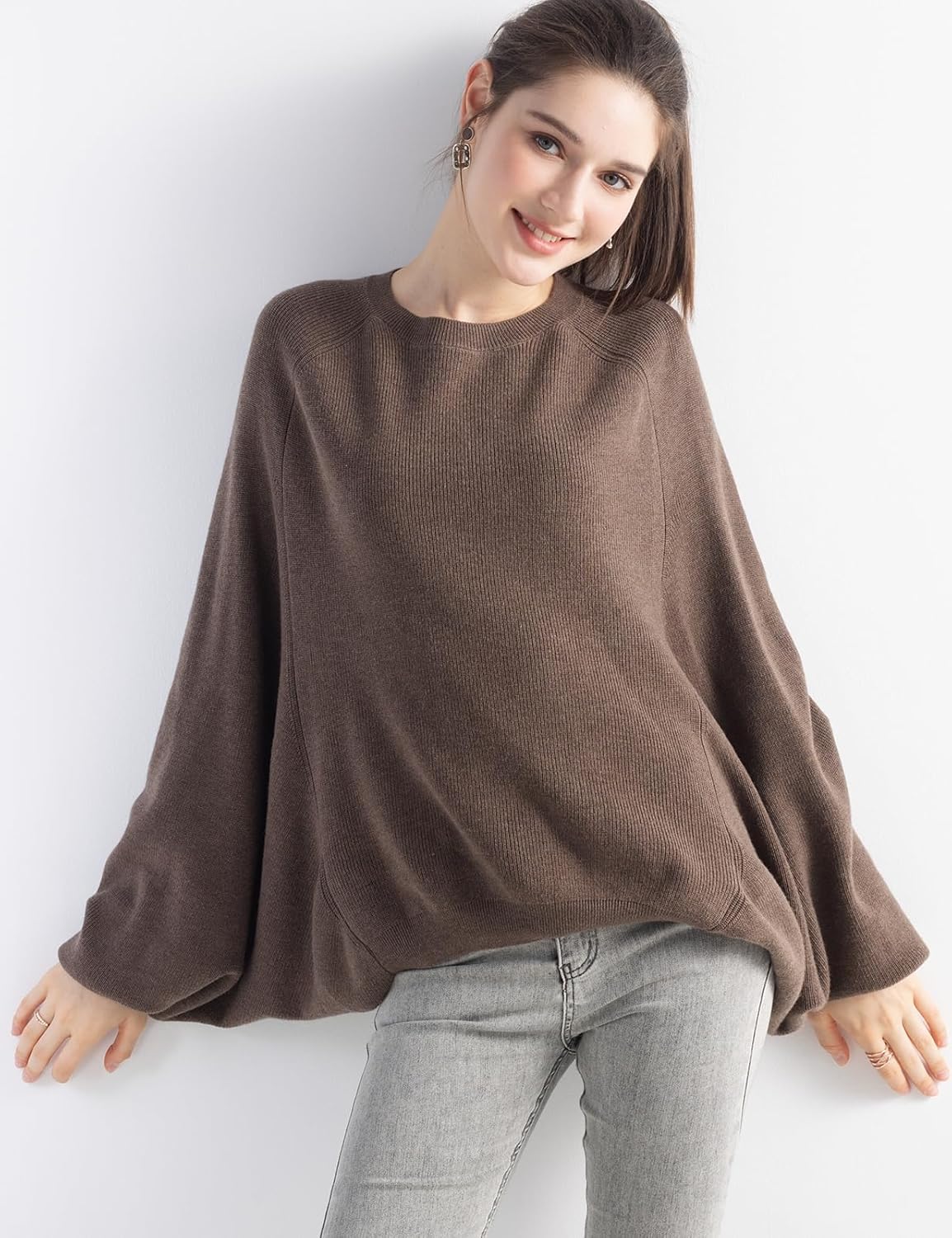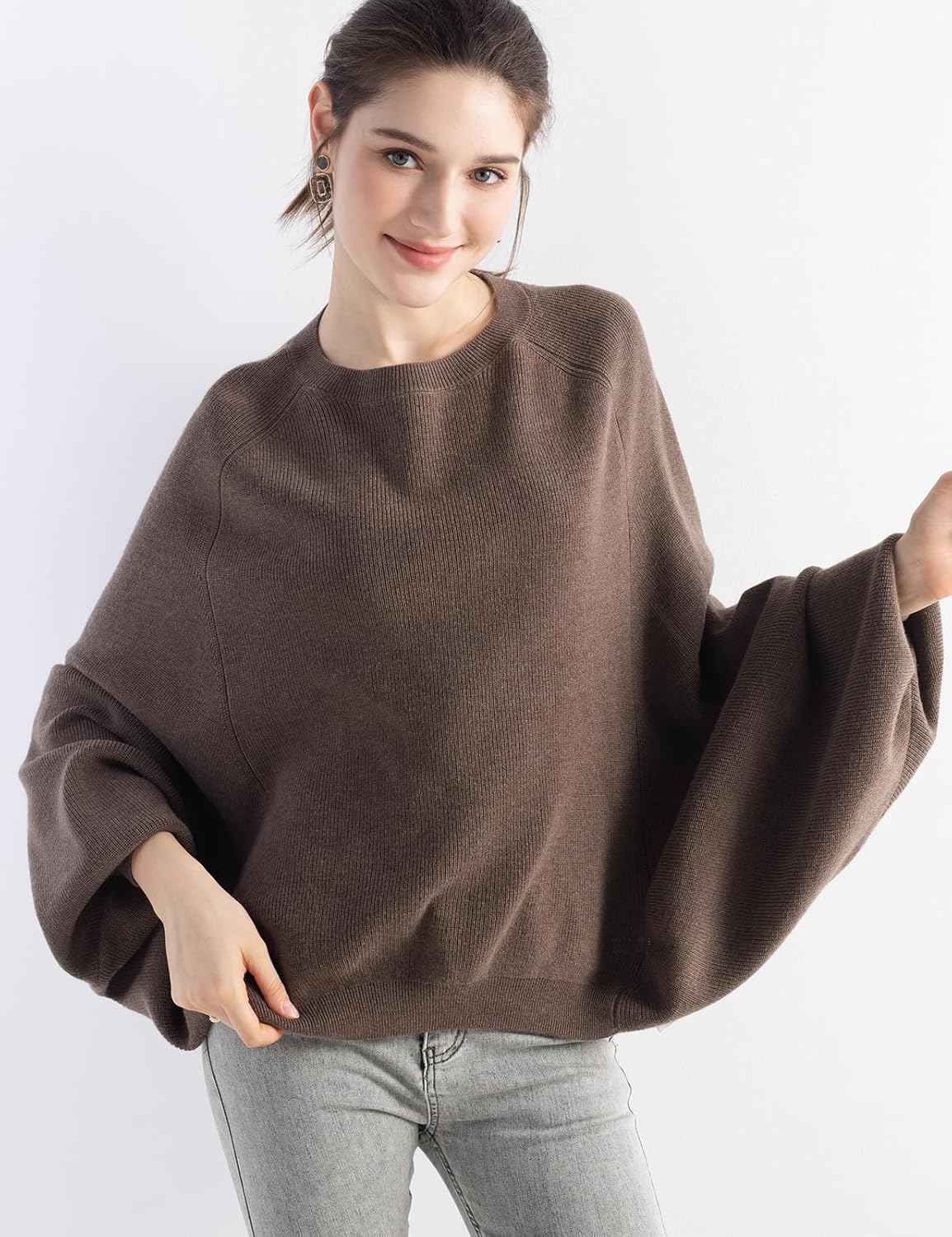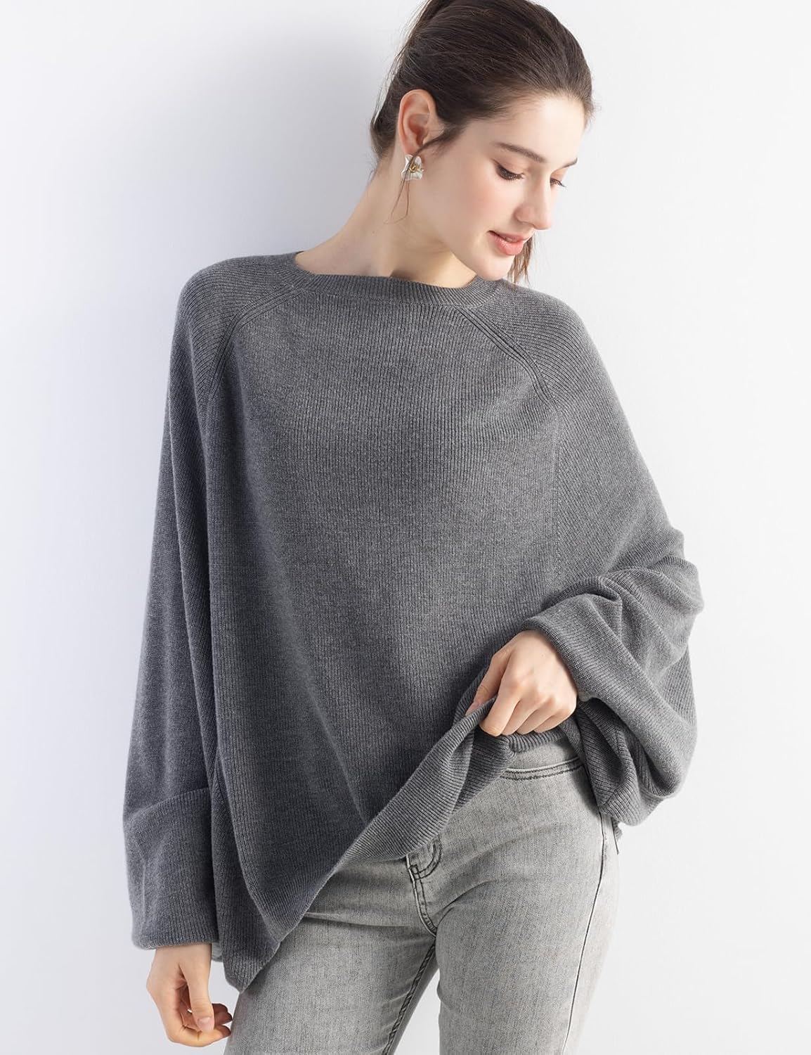 메리노 울 블렌드 오버사이즈 크루넥 배트윙 스웨터
