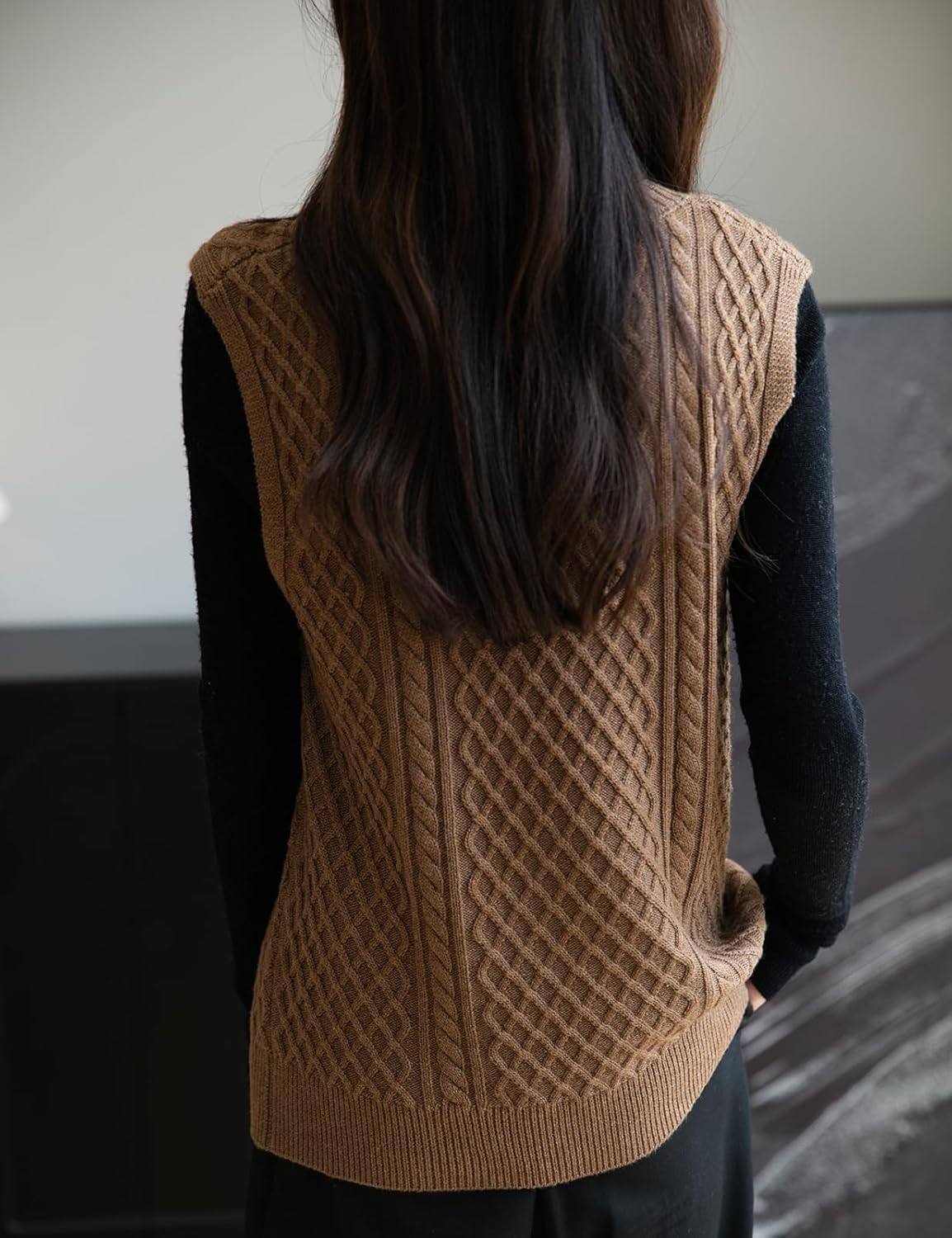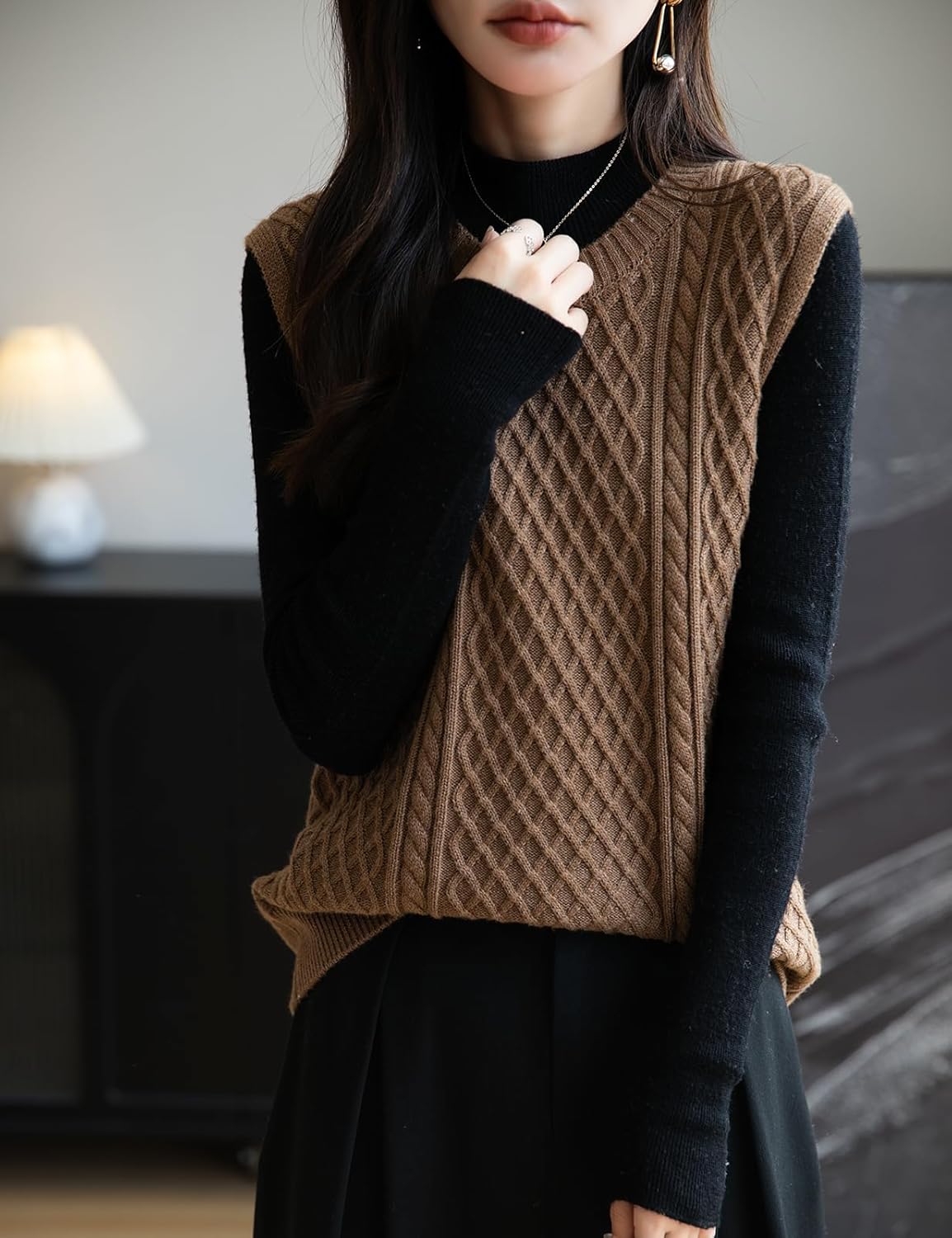메리노 울 블렌드 클래식 크루넥 케이블 니트 조끼