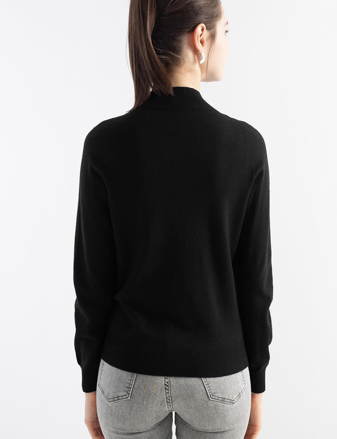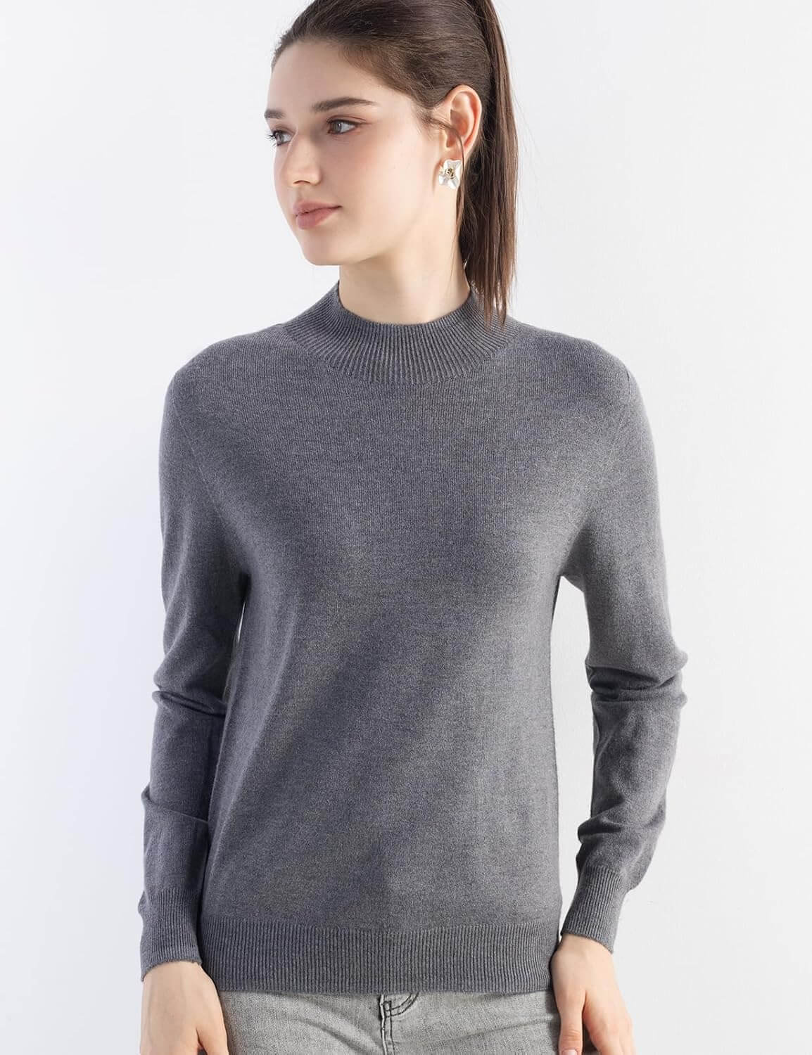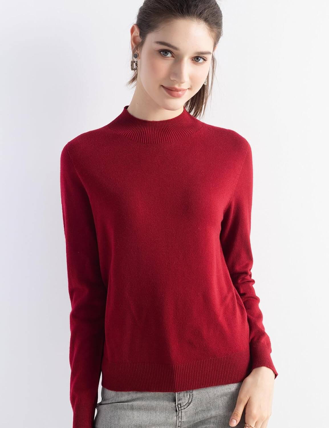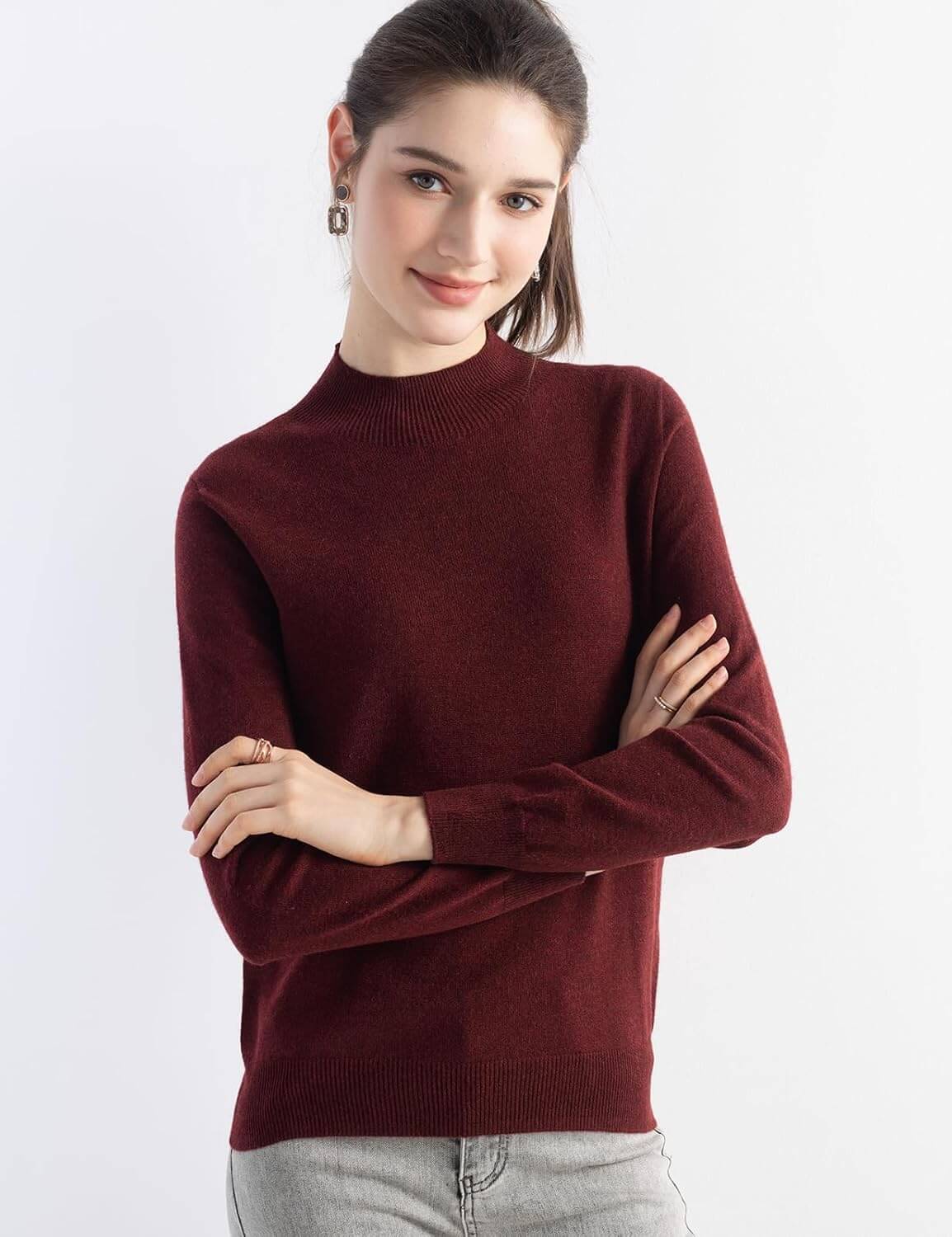This sweater is perfect for fall. I plan on wearing it for the winter also but the espresso brown color is perfect for any autumn outfit. The fabric is not as soft as I would like but it is not itchy enough that I can't wear it. It fits very true to size, and the sleeves are a great length for us ladies with long arms. Very nice quality. I like that the mock neck does not come up too high to be annoying, it is a perfect cut. Overall great addition to your fall/winter wardrobe.
