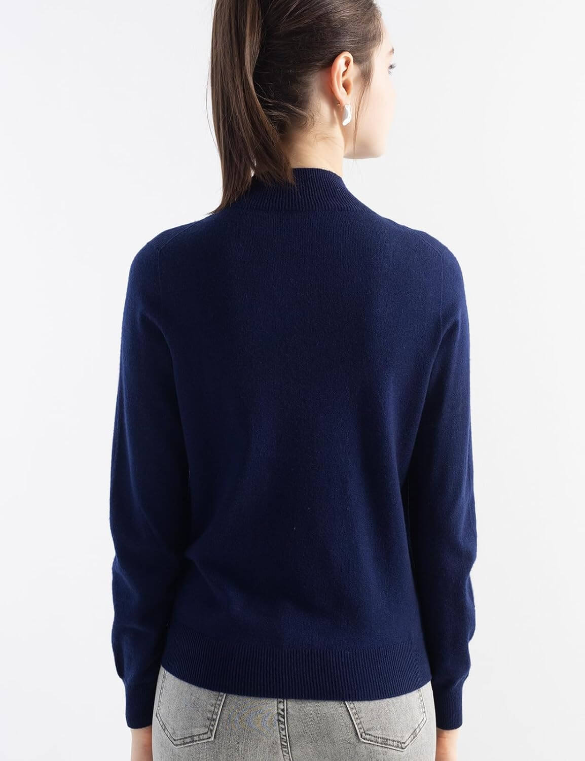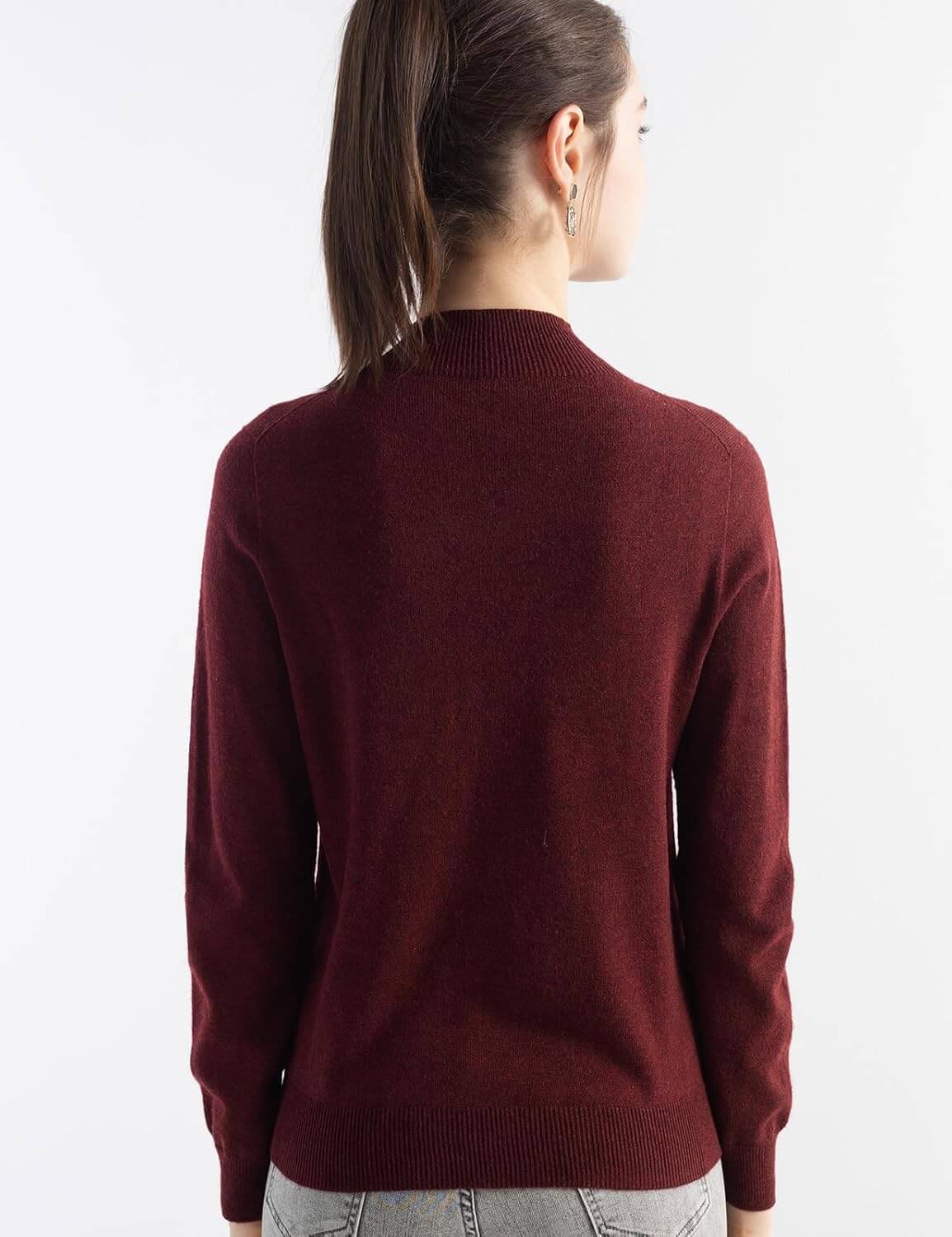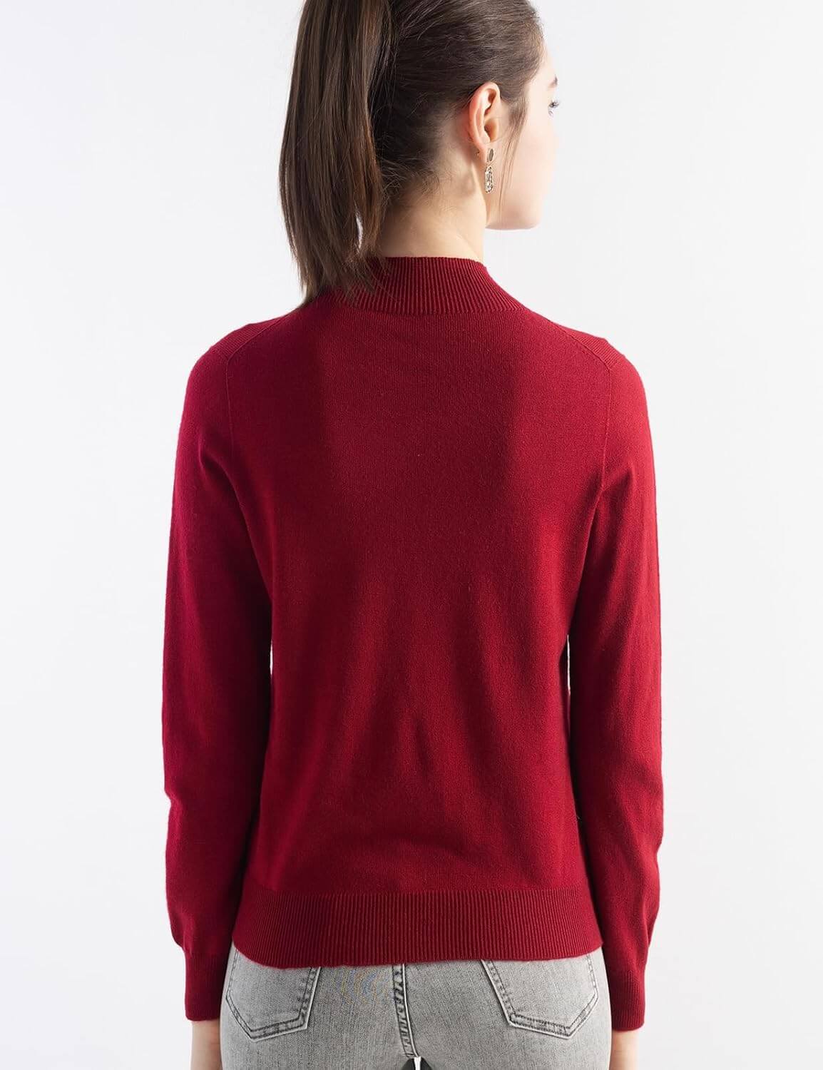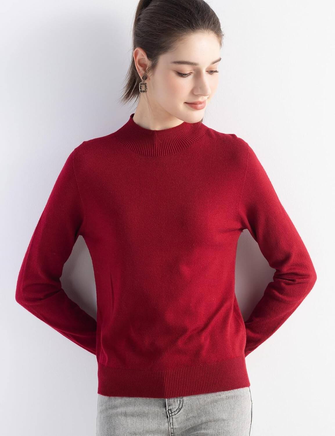 This sweater is perfect for fall. I plan on wearing it for the winter also but the espresso brown color is perfect for any autumn outfit. The fabric is not as soft as I would like but it is not itchy enough that I can't wear it. It fits very true to size, and the sleeves are a great length for us ladies with long arms. Very nice quality. I like that the mock neck does not come up too high to be annoying, it is a perfect cut. Overall great addition to your fall/winter wardrobe.