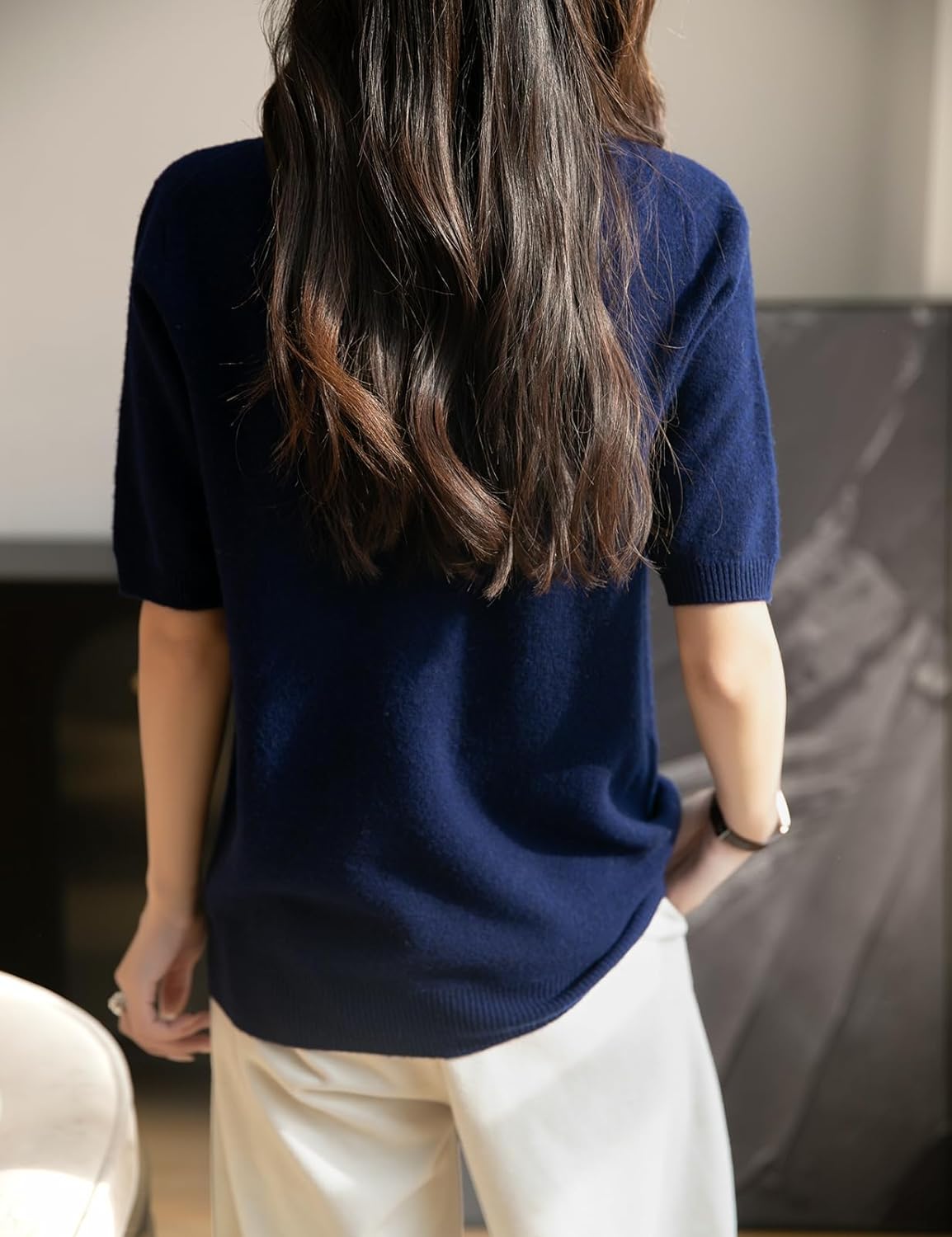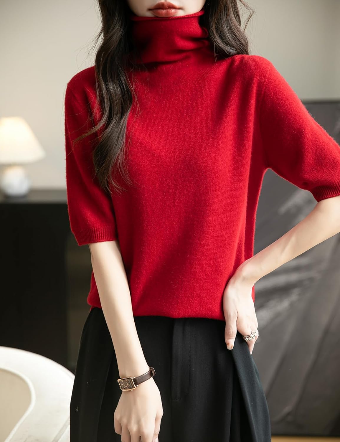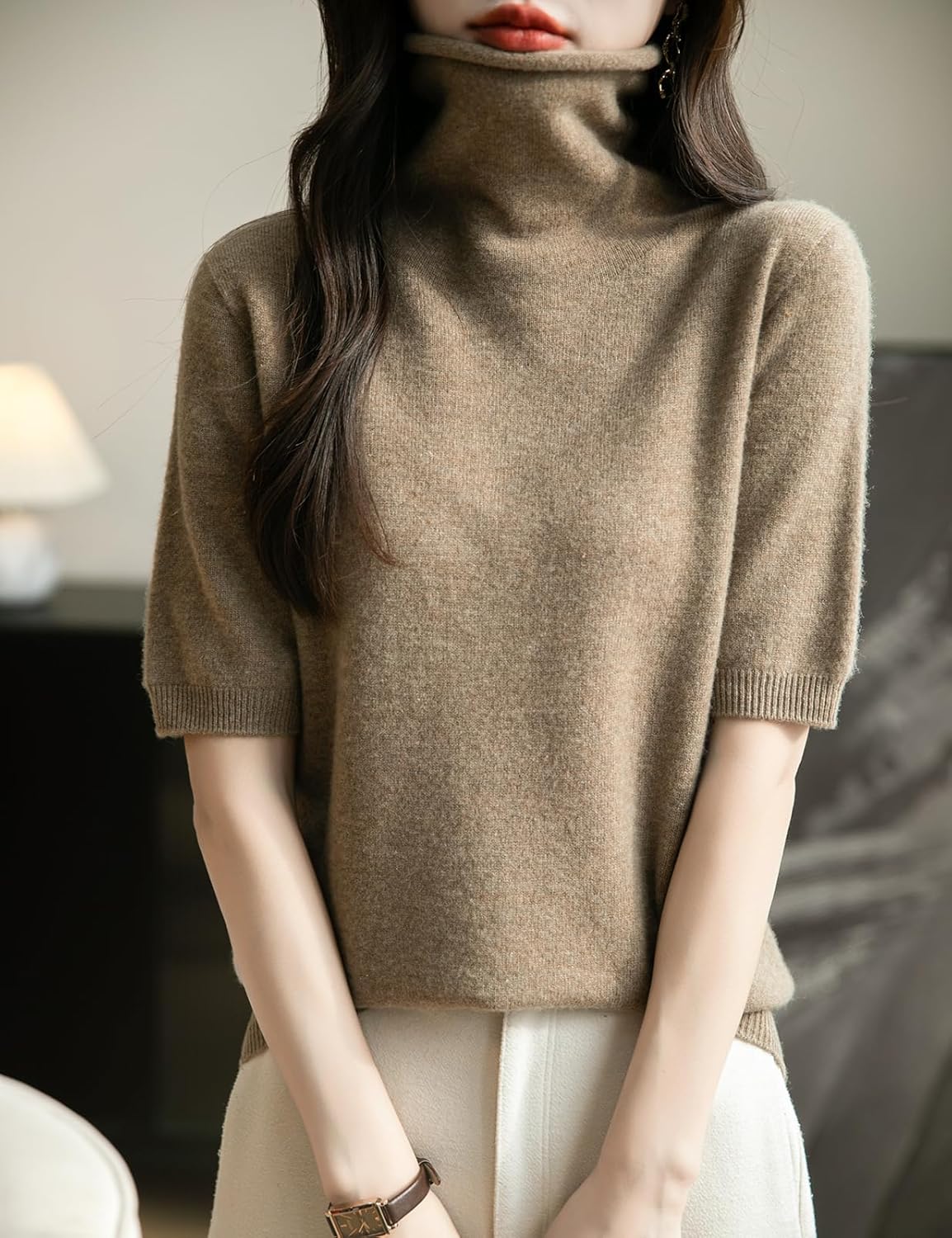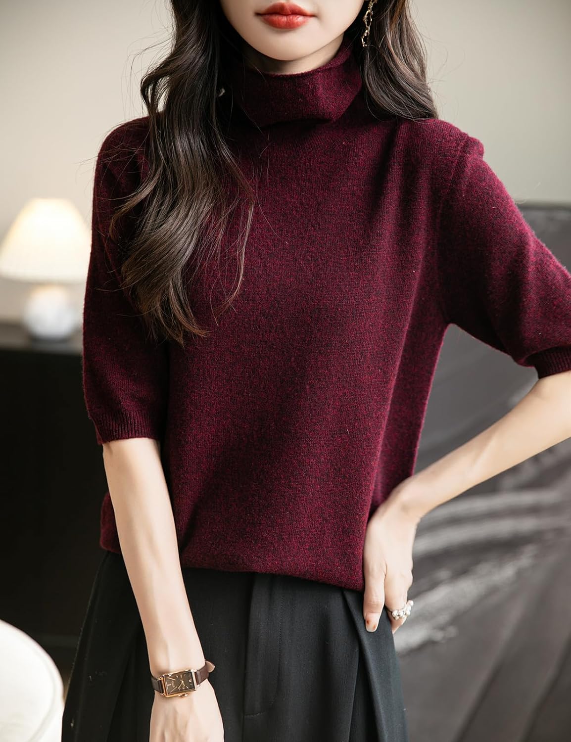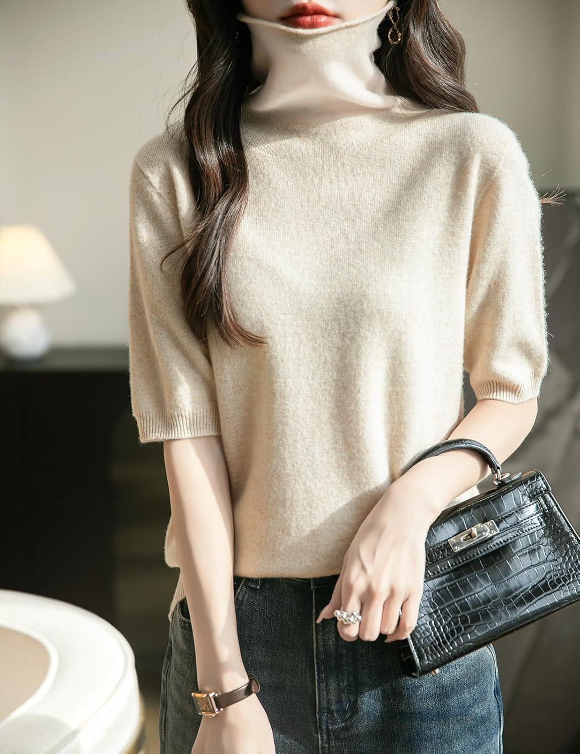 100% 메리노 울 터틀넥 반팔 심리스 스웨터