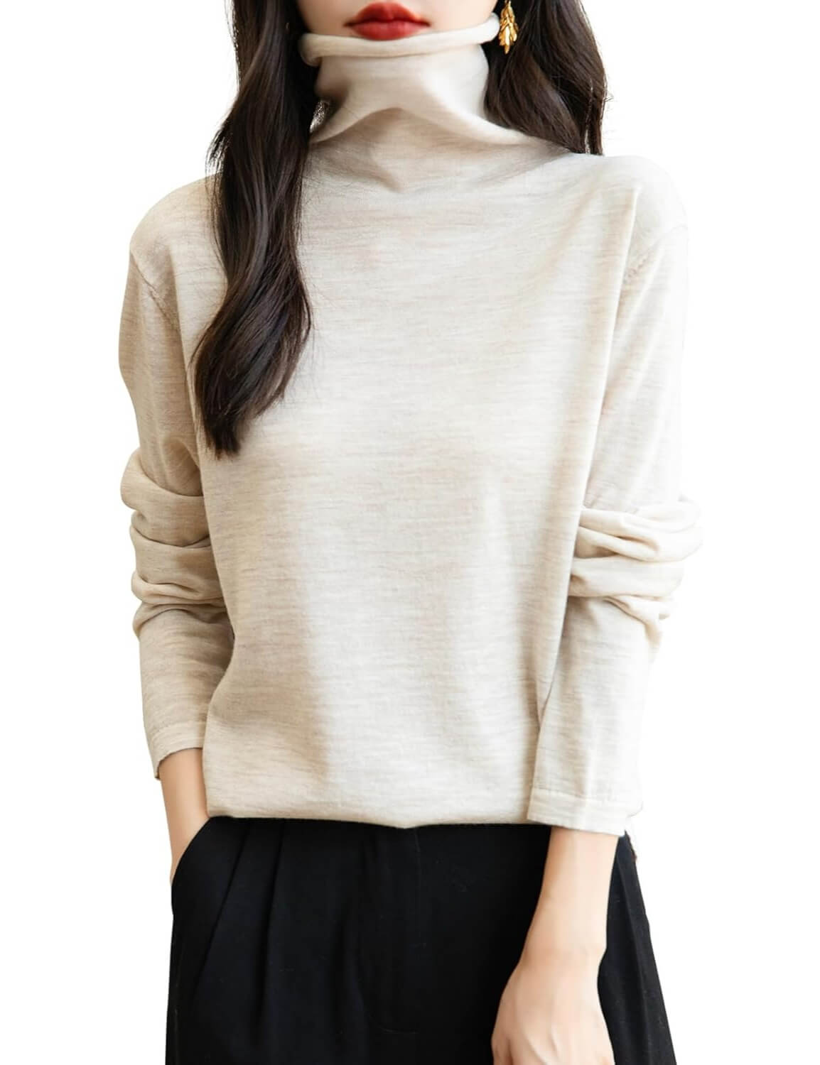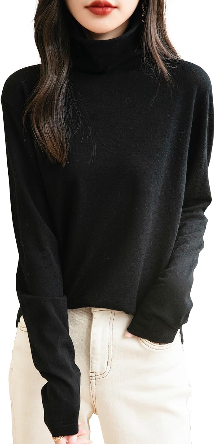 100% Merino Wool Turtleneck Travel Tee Sweater