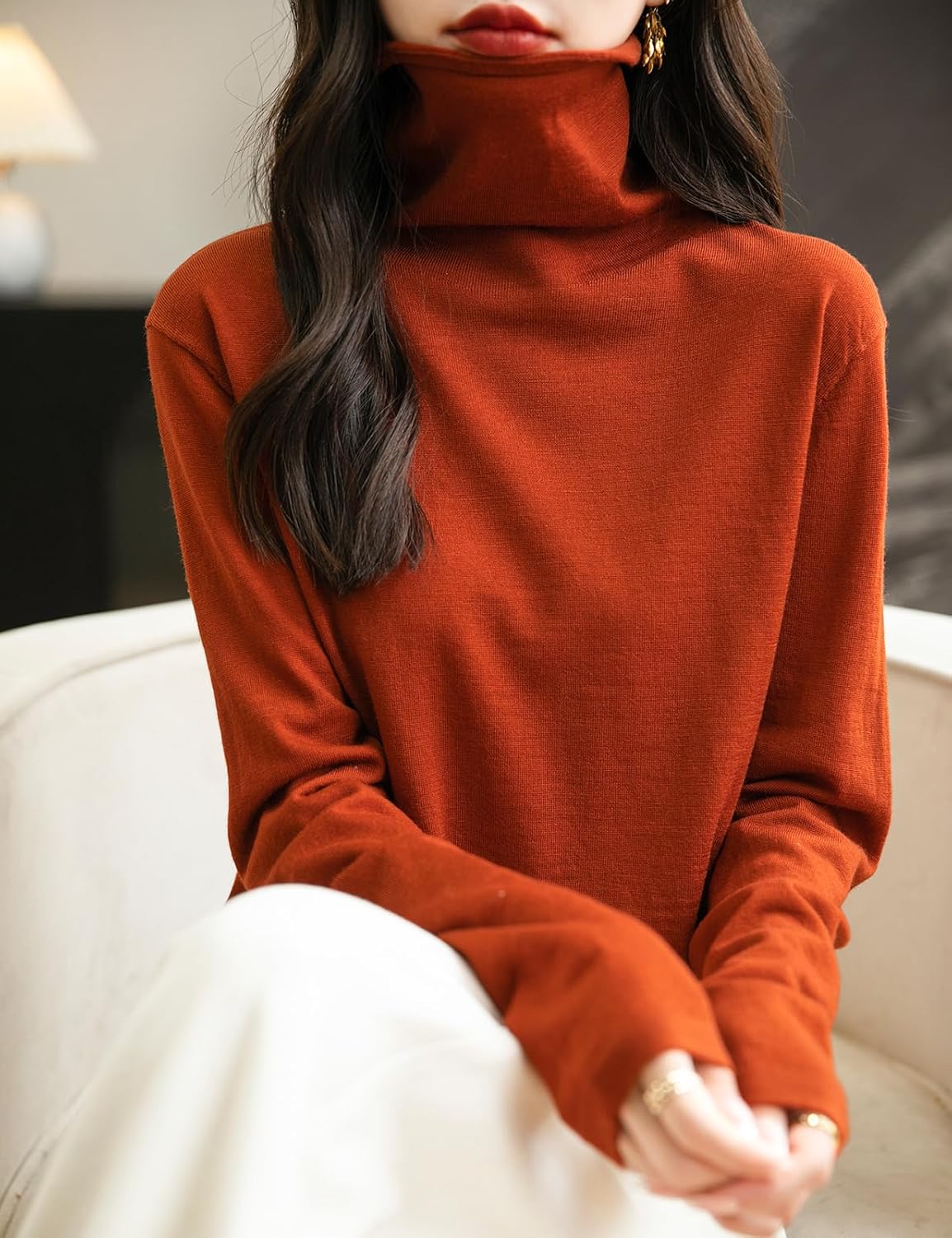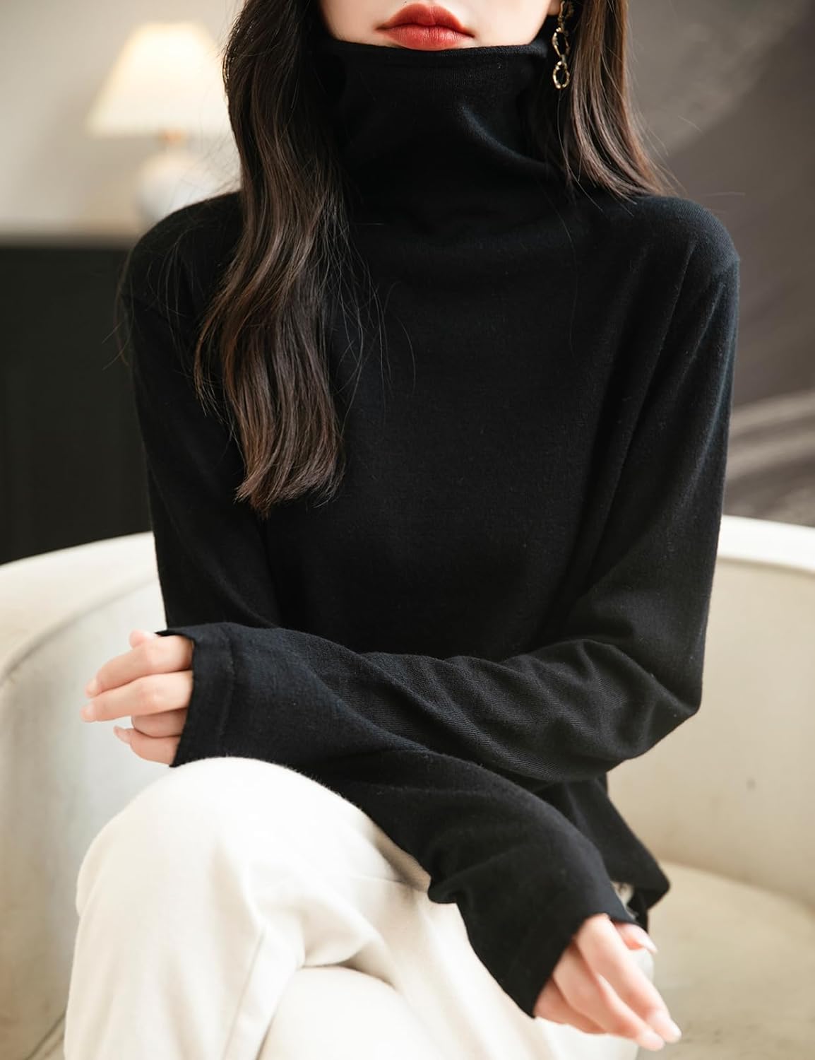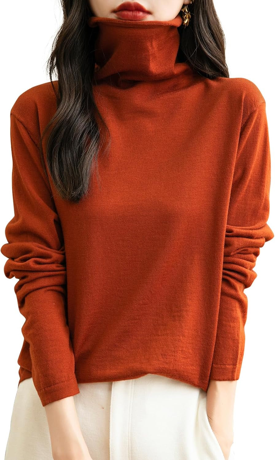 This 100% merino wool sweater uses the latest perfect seamless technology, bulky and annoying stitches at the shoulders, sides and underarms are gone, seams no longer interfere with the natural elasticity of knits, so you can move and stretch more freely.There is no cutting, no seams, soft and comfortable and smooth lines, makes it more comfortable to wear, won't feel tight and rub against the skin when wearing it.