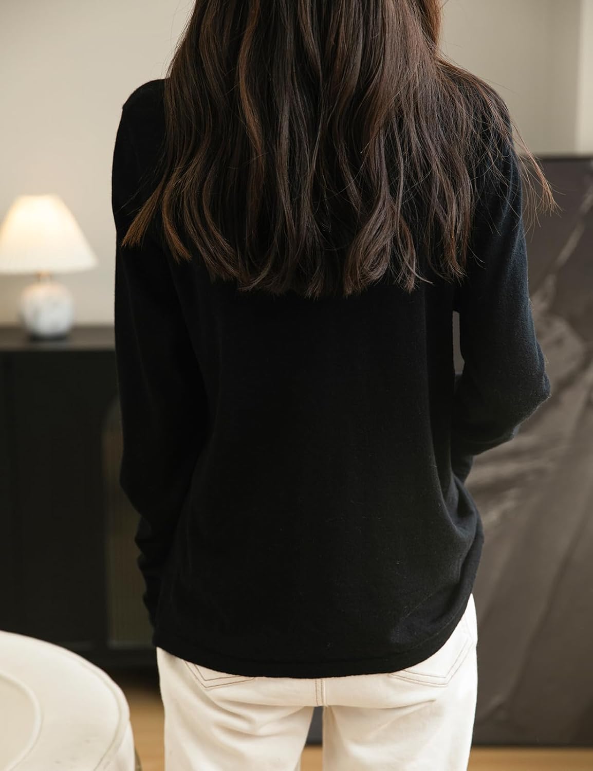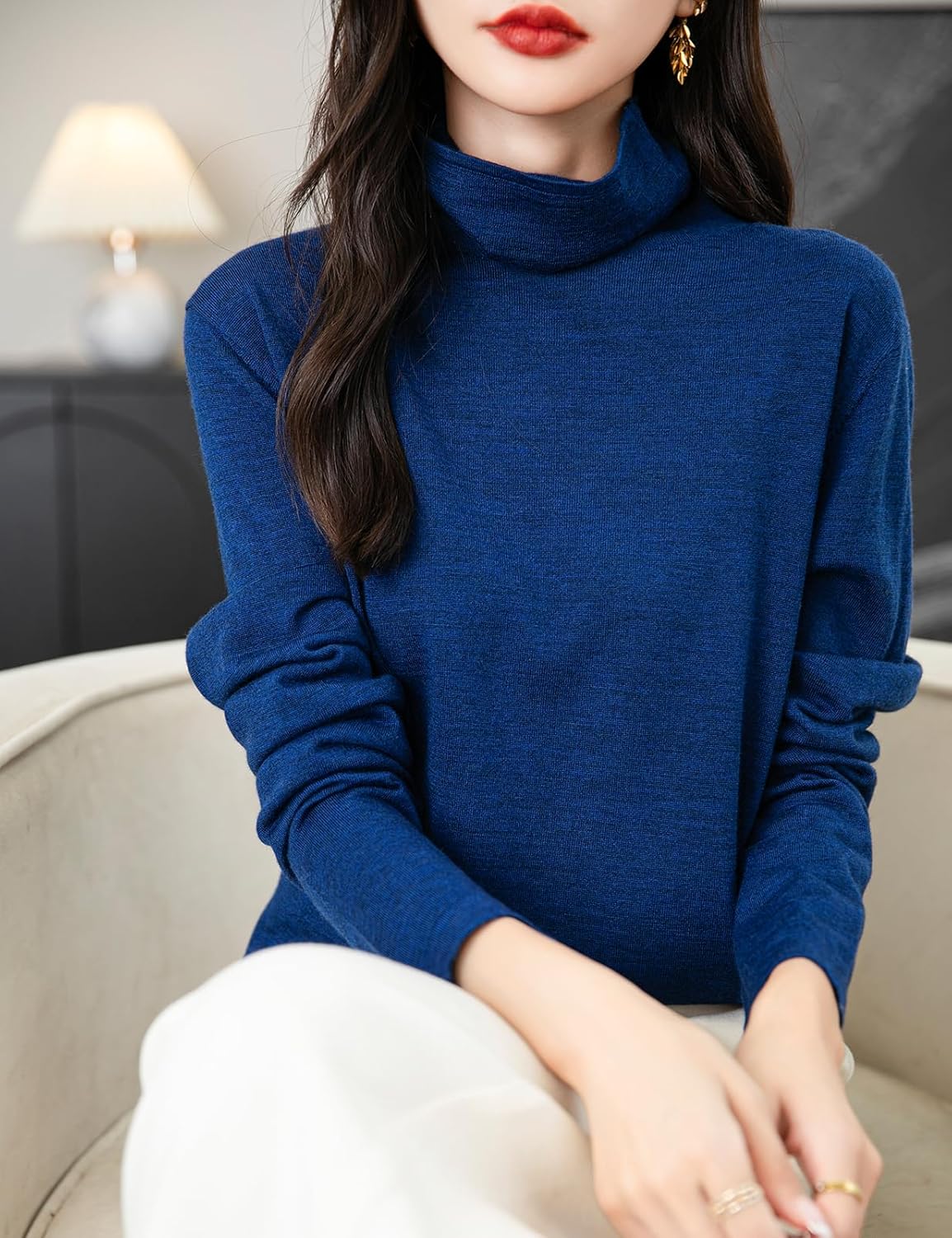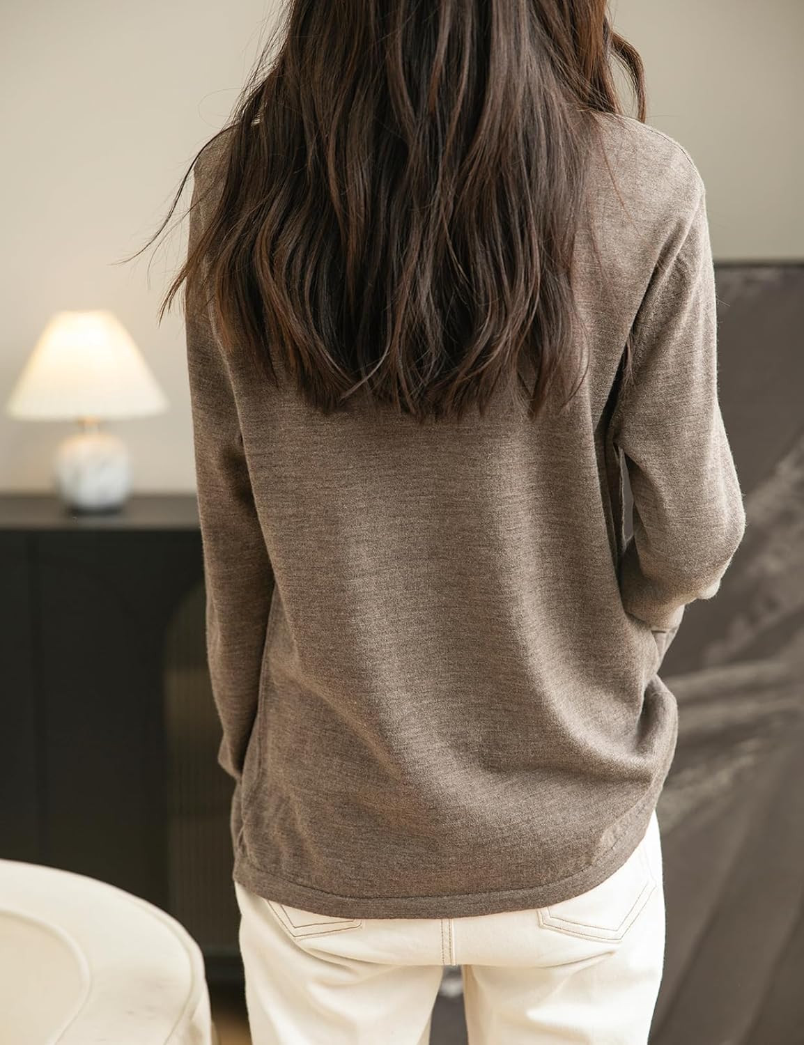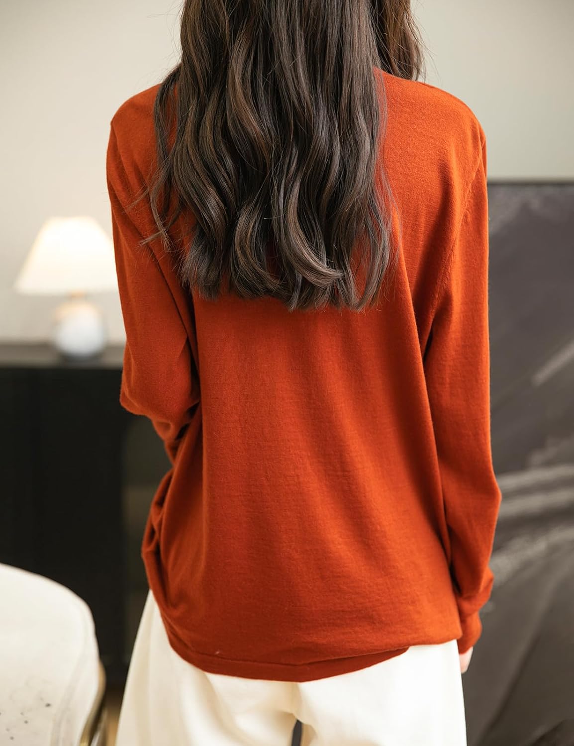 This 100% merino wool sweater uses the latest perfect seamless technology, bulky and annoying stitches at the shoulders, sides and underarms are gone, seams no longer interfere with the natural elasticity of knits, so you can move and stretch more freely.There is no cutting, no seams, soft and comfortable and smooth lines, makes it more comfortable to wear, won't feel tight and rub against the skin when wearing it.