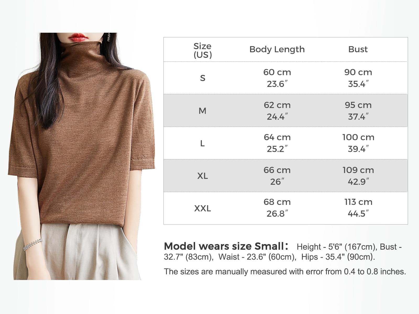 100% Merino Wool Turtleneck Tee Shirt Sweater