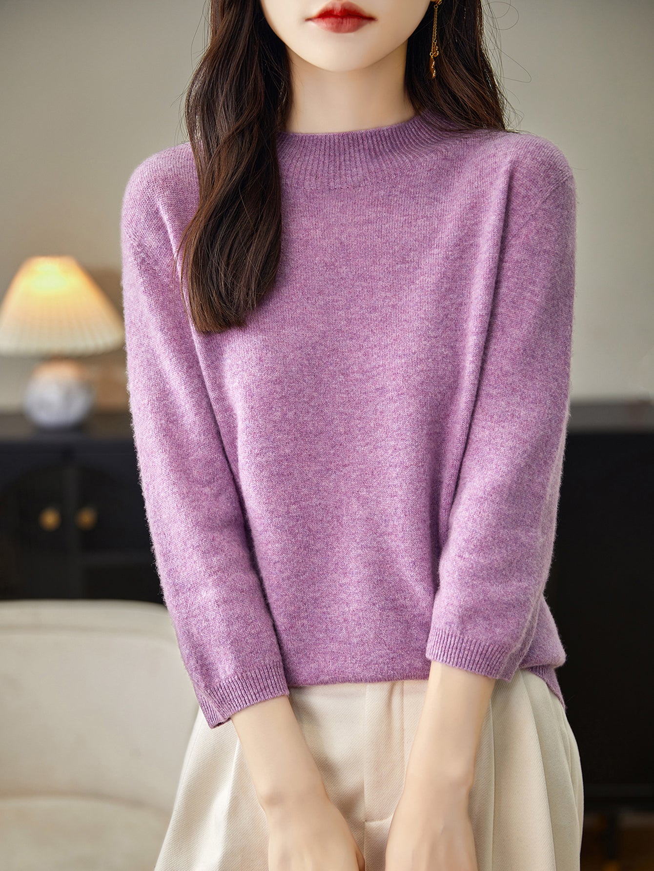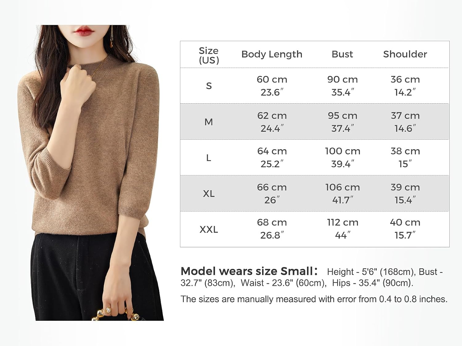 This 100% merino wool sweater uses the latest perfect seamless technology, bulky and annoying stitches at the shoulders, sides and underarms are gone, seams no longer interfere with the natural elasticity of knits, so you can move and stretch more freely.There is no cutting, no seams, soft and comfortable and smooth lines, makes it more comfortable to wear, won't feel tight and rub against the skin when wearing it.