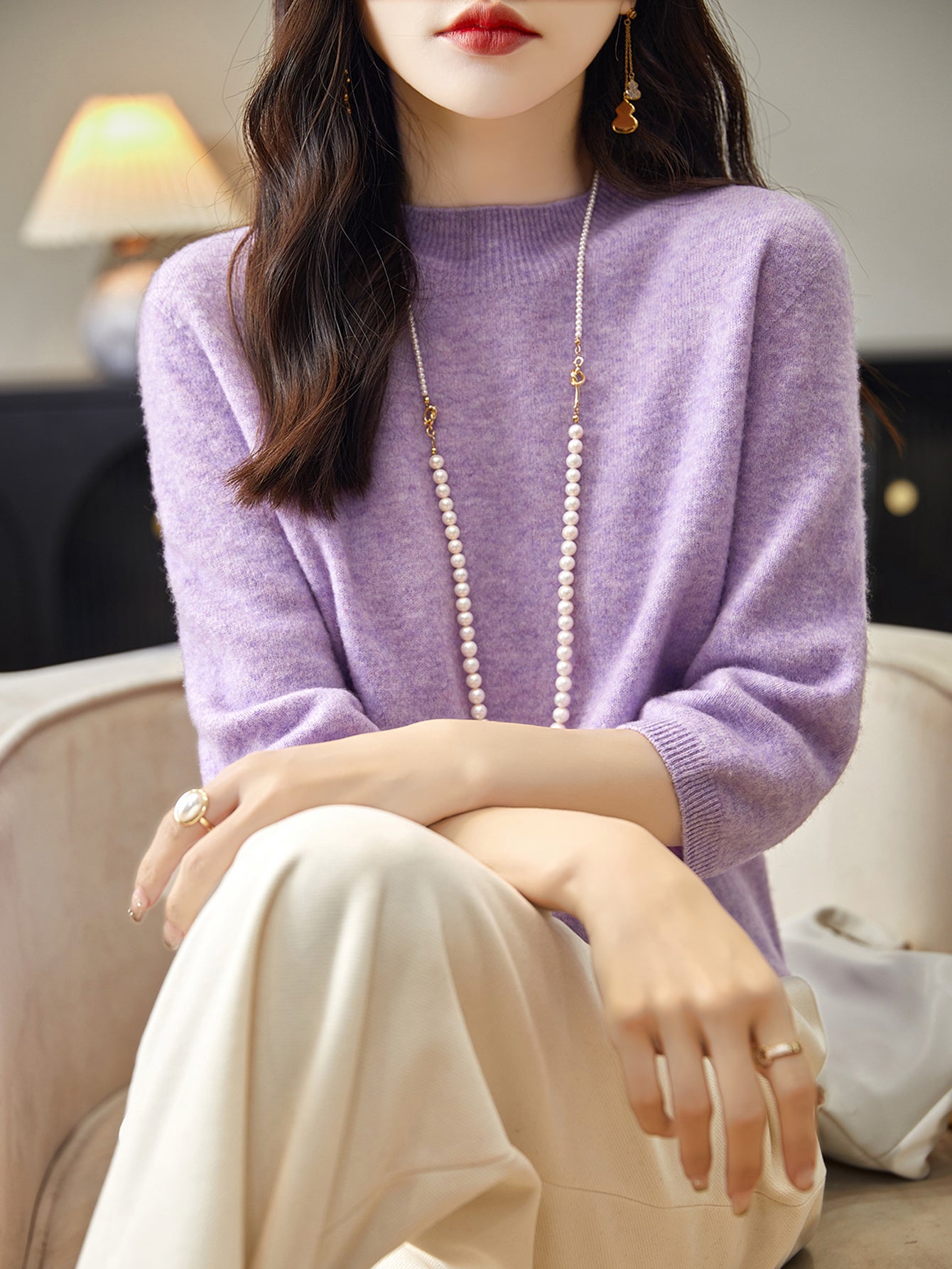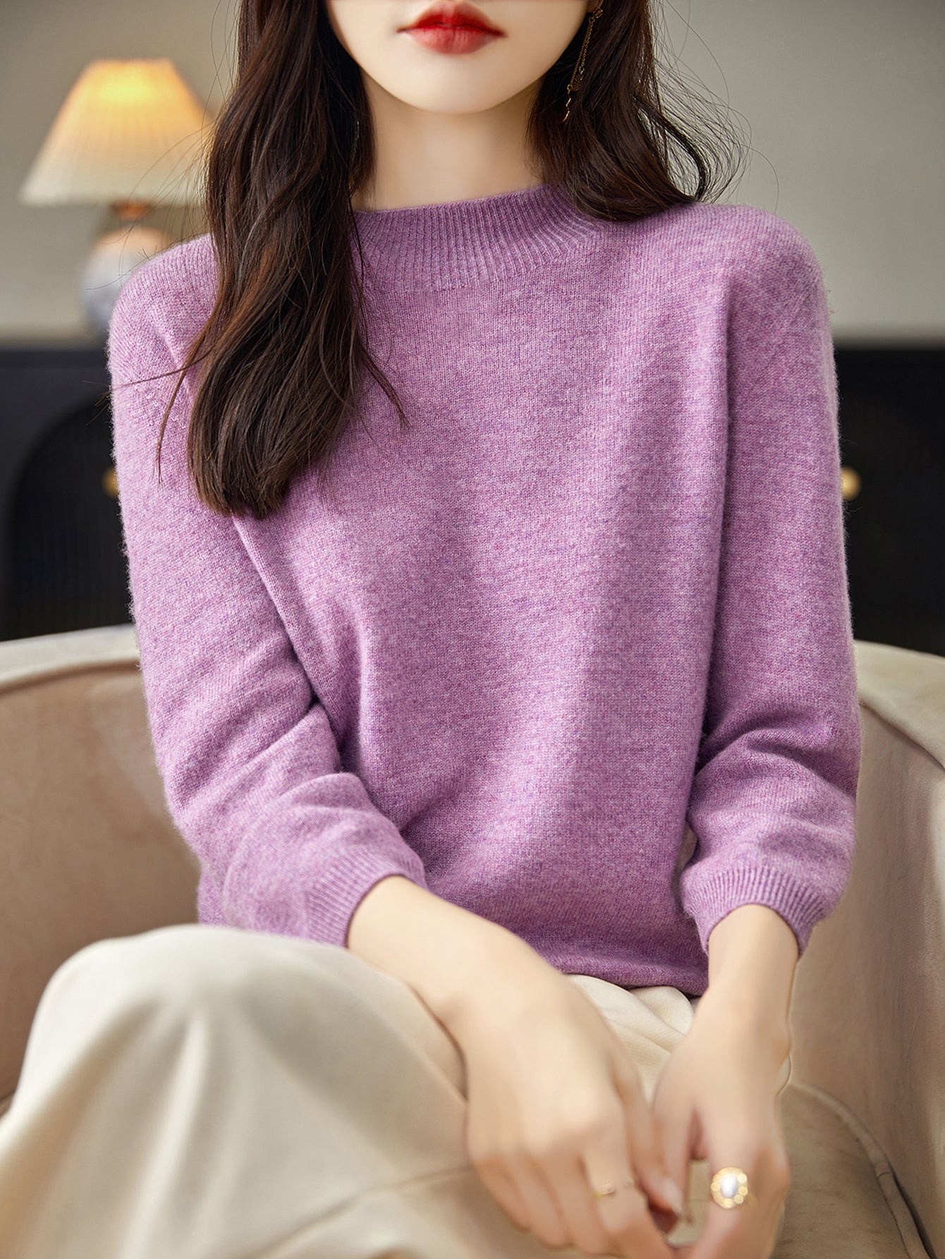 Made of 26Nm/2 pure Merino wool fine yarn, this 100% merino wool sweater has a wool fineness of 17.5-17.9μm, with beautifully soft and fluffy texture, 2-Ply densely-knitted yarn of Long Staple finest fibers to deliver Best Anti-Pilling Performance.