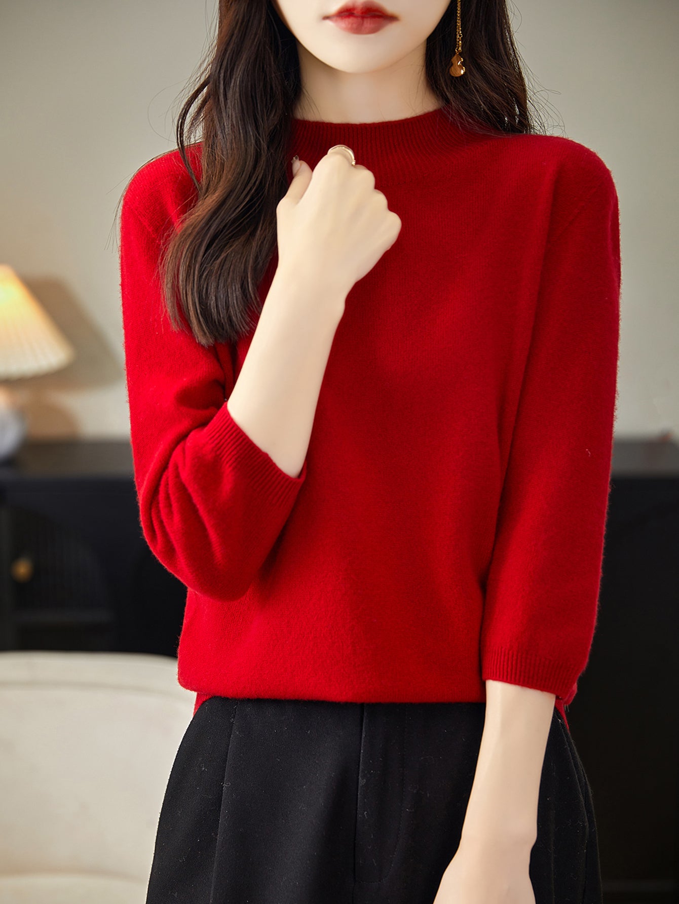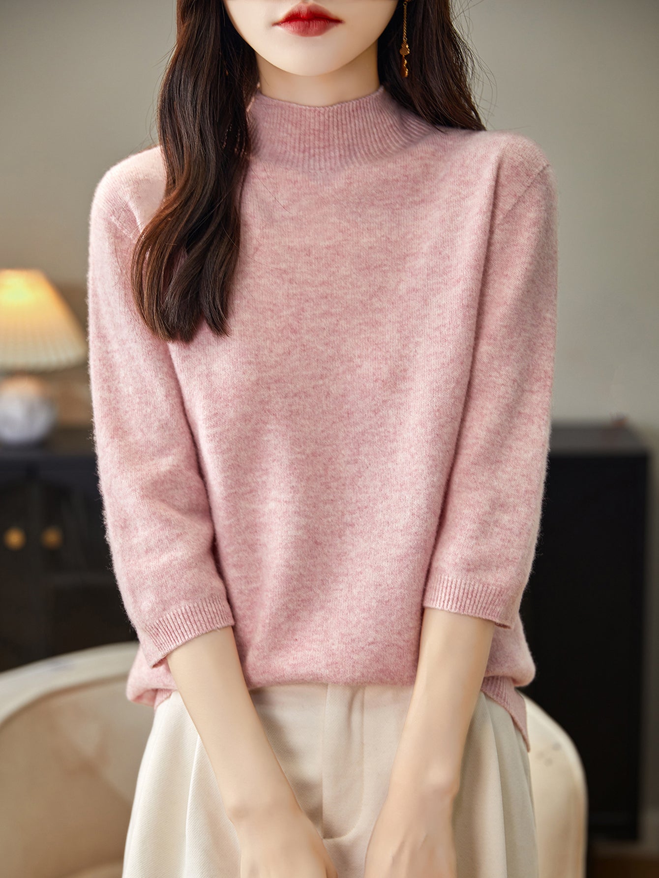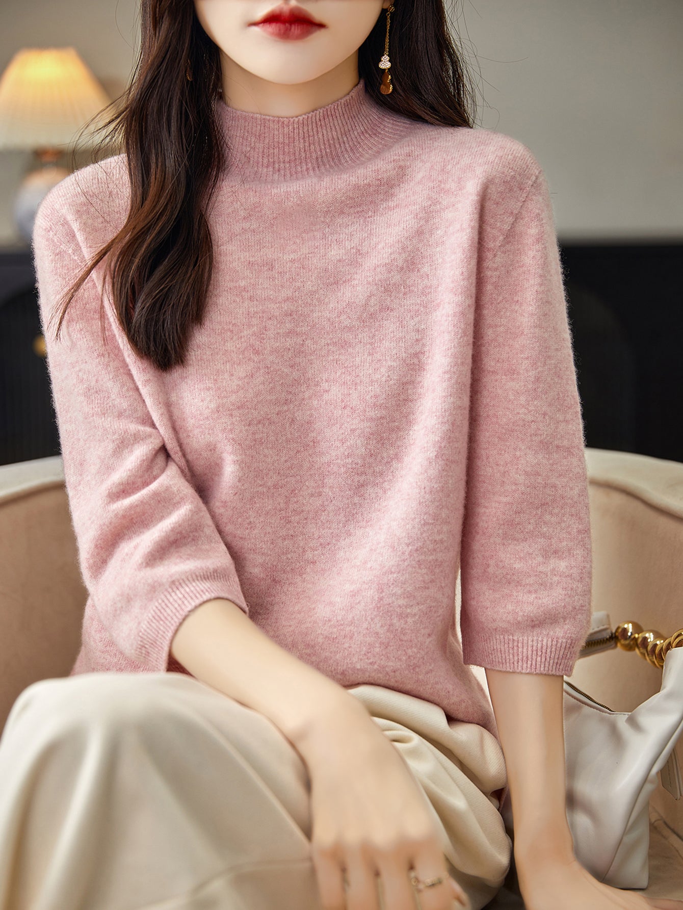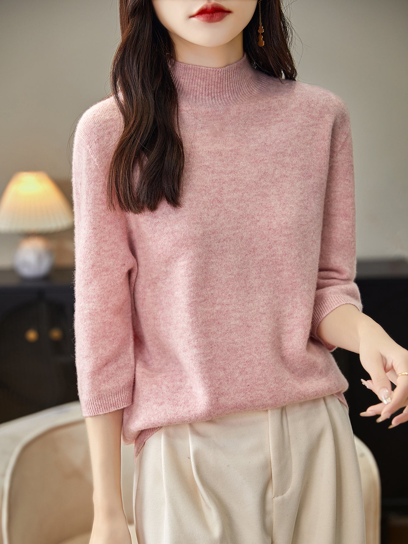 100% Merino Wool Mockneck Half Sleeve Sweater