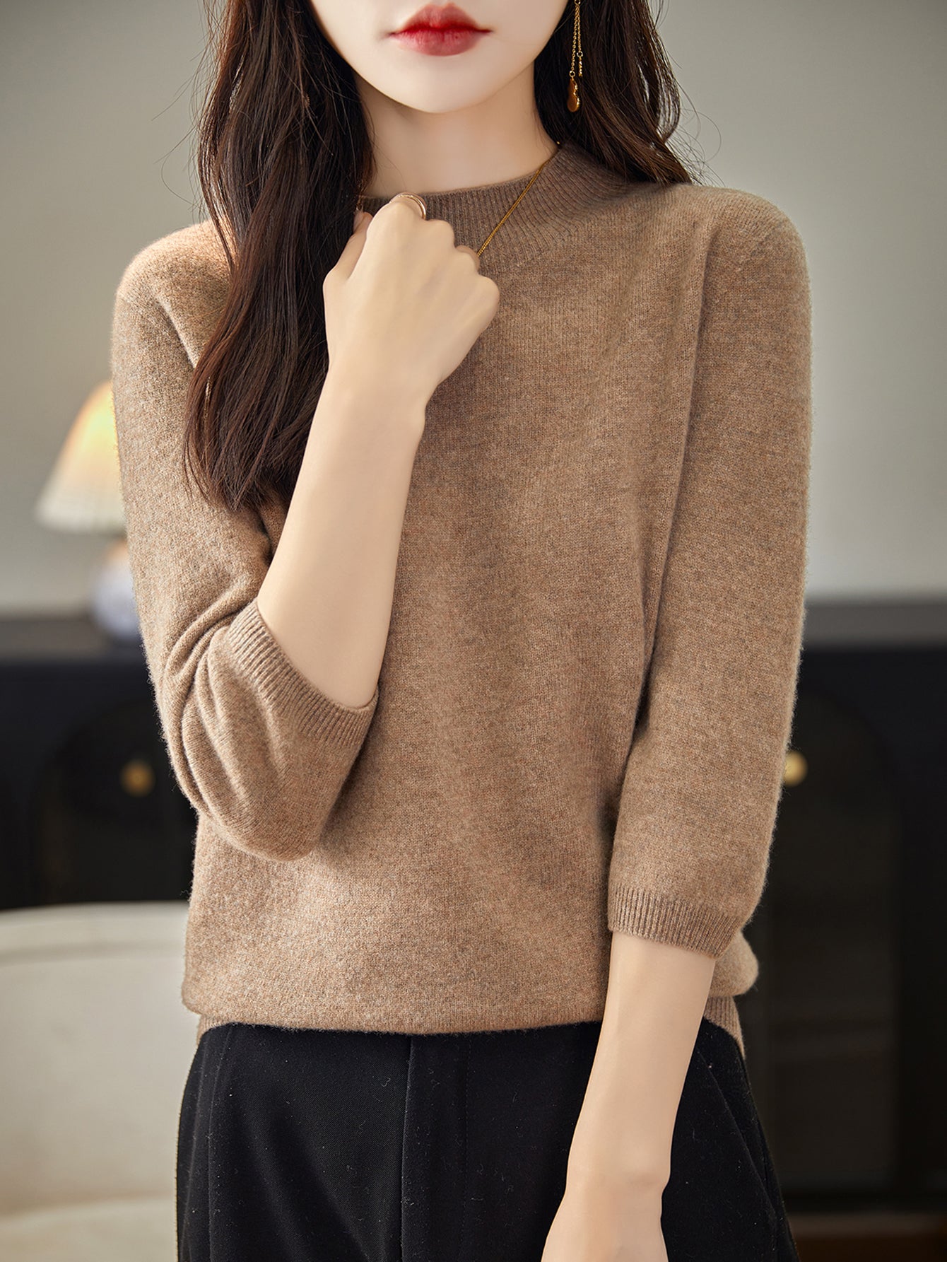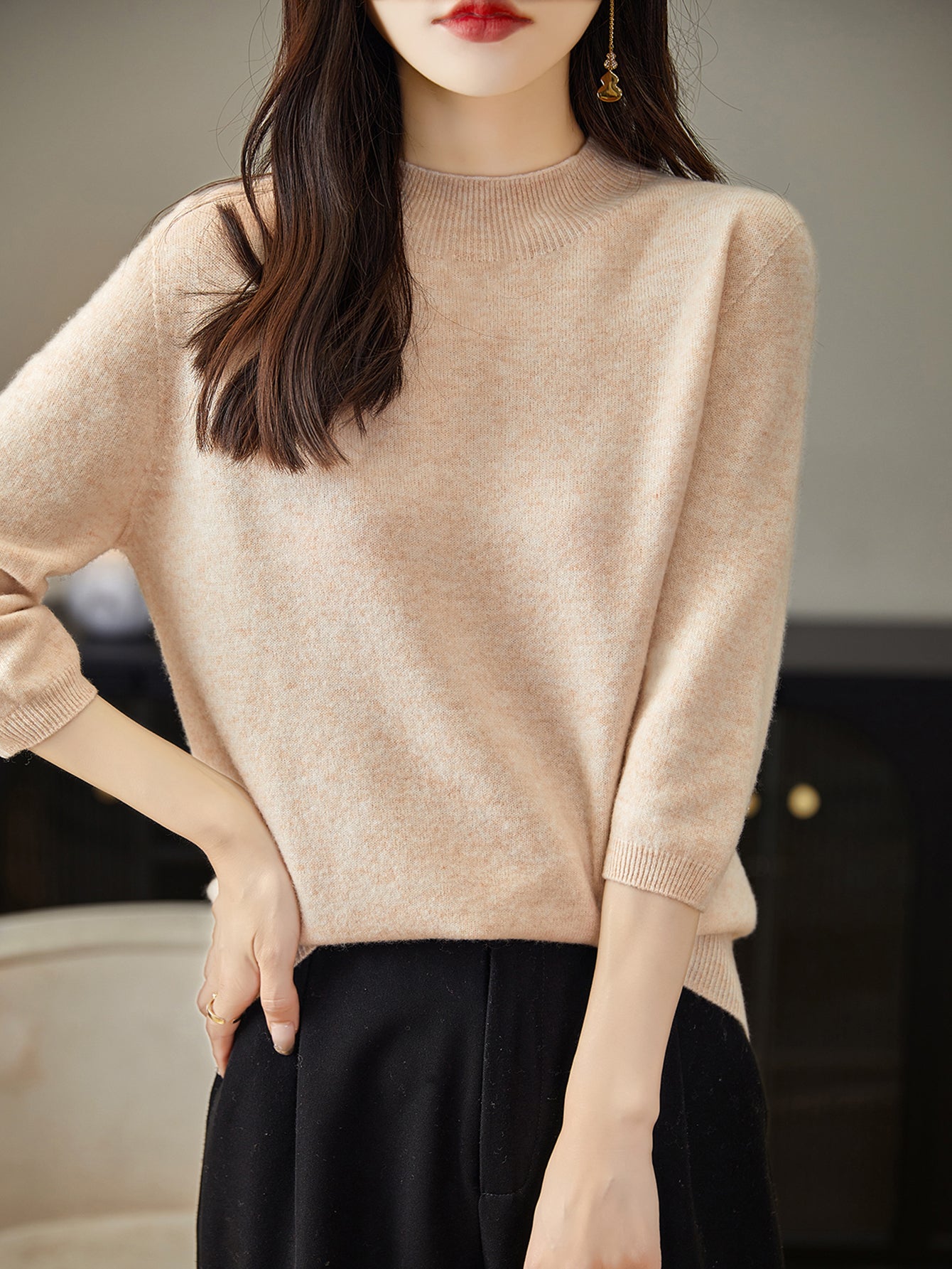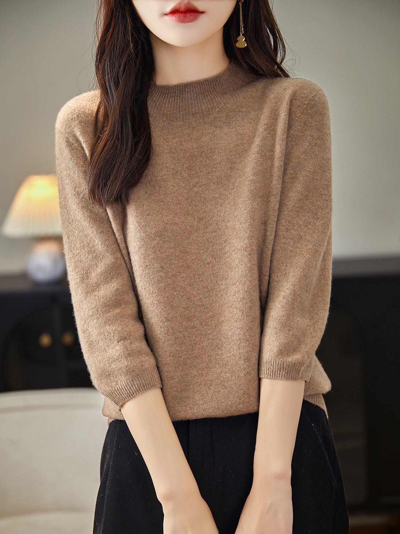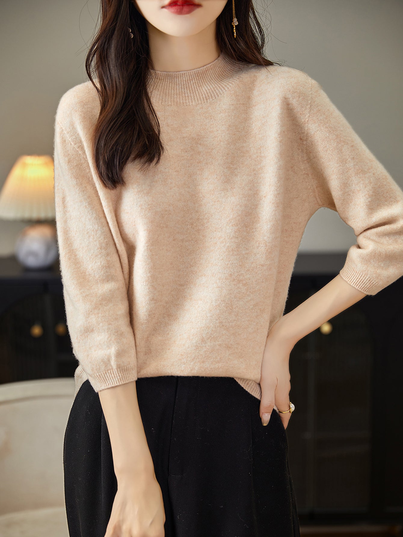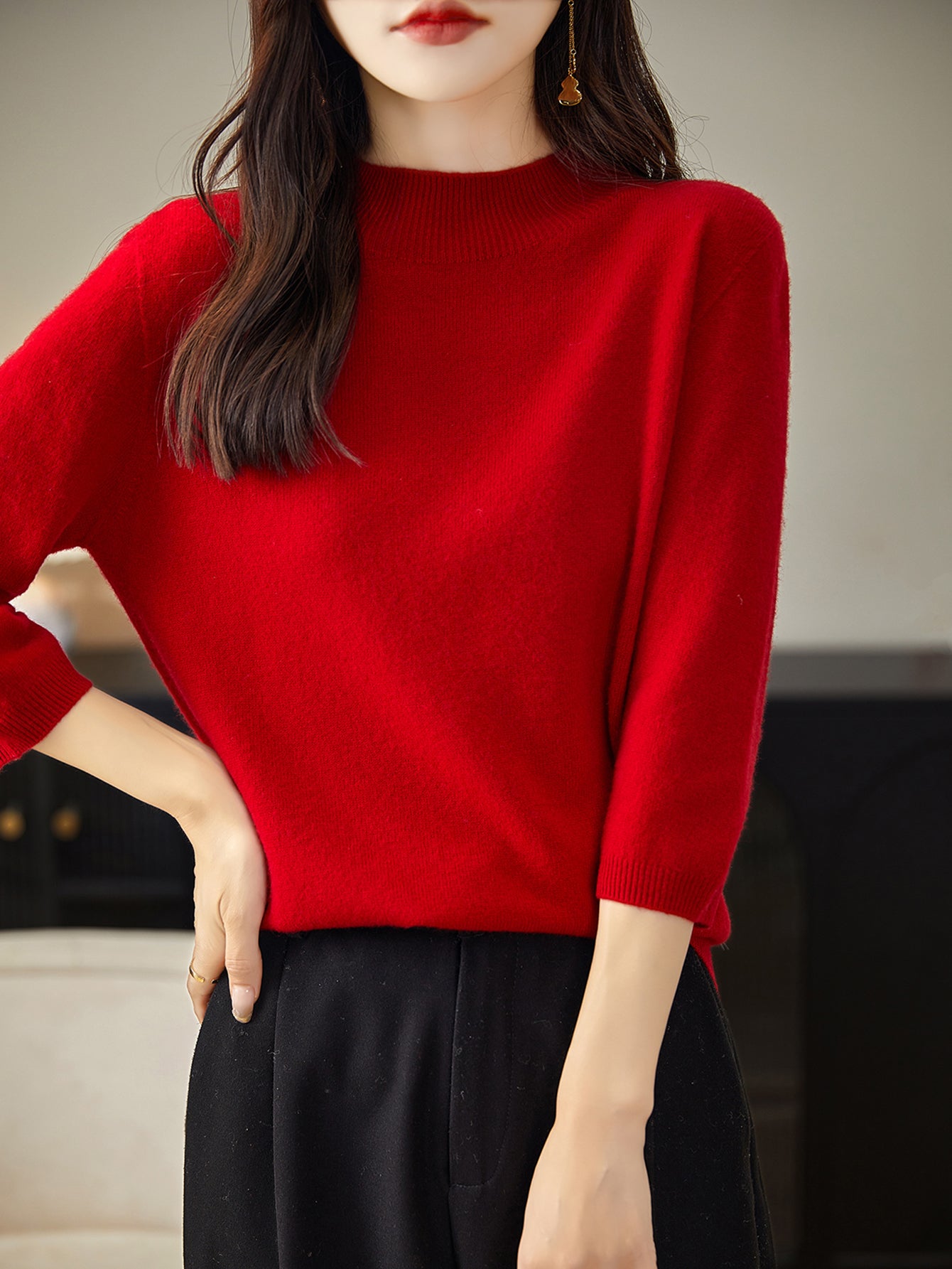 100% Merino Wool Mockneck Half Sleeve Sweater