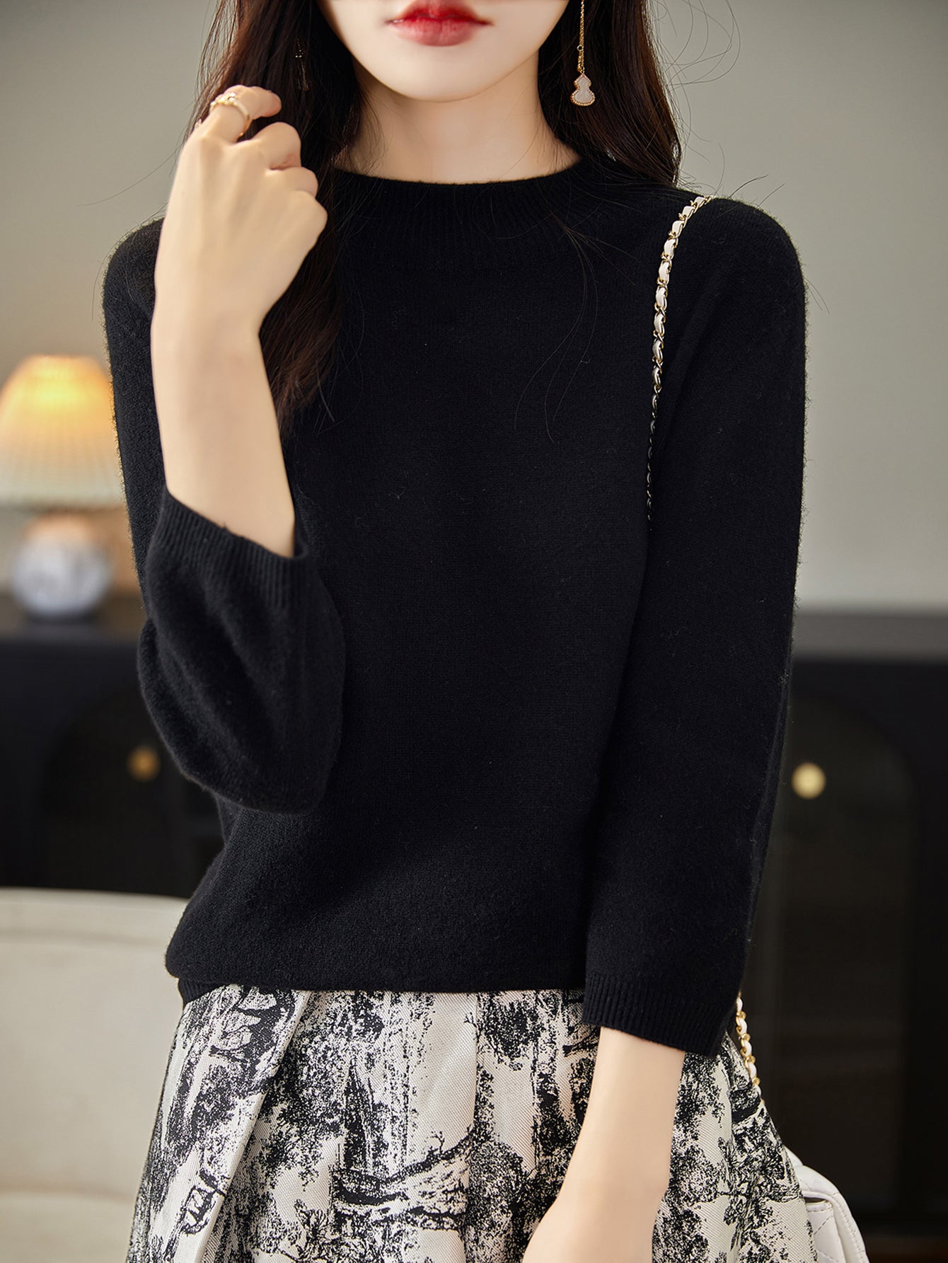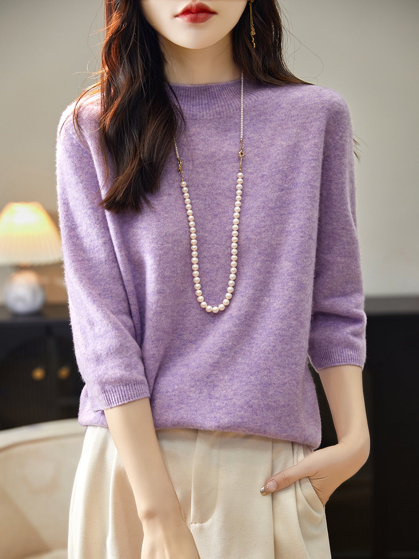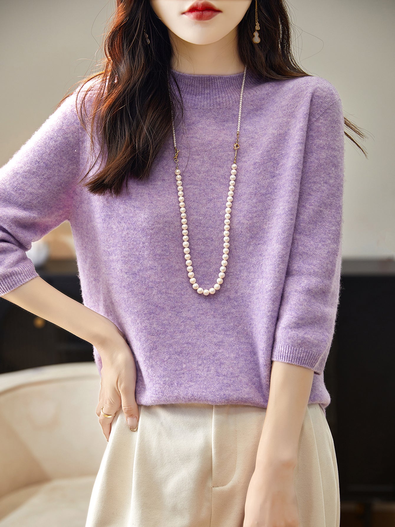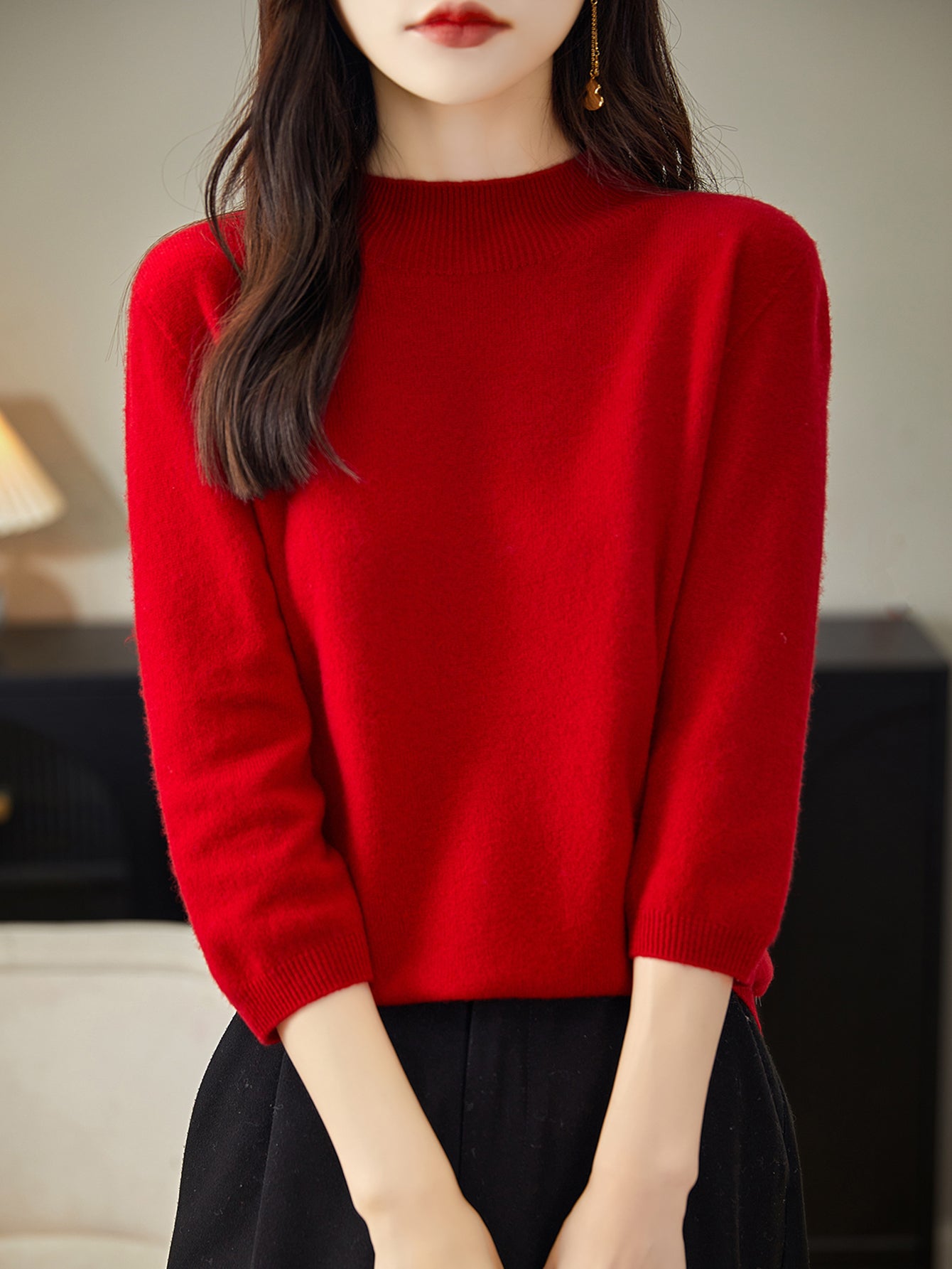 100% Merino Wool Mockneck Half Sleeve Sweater