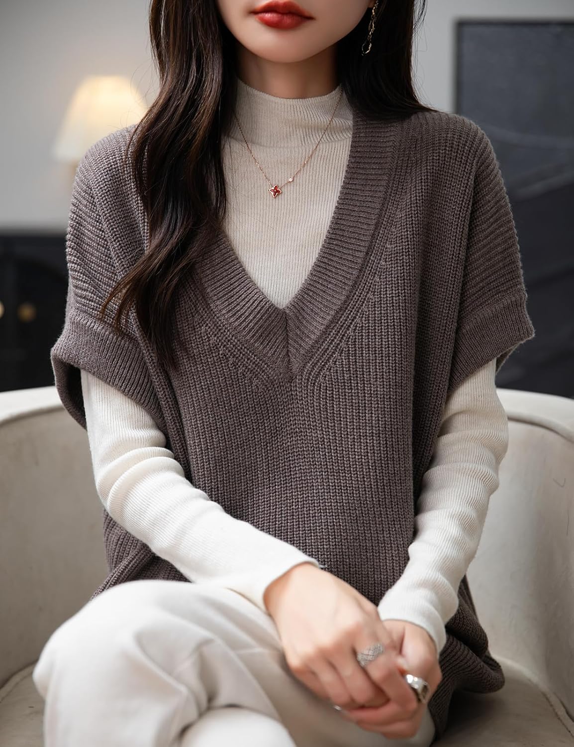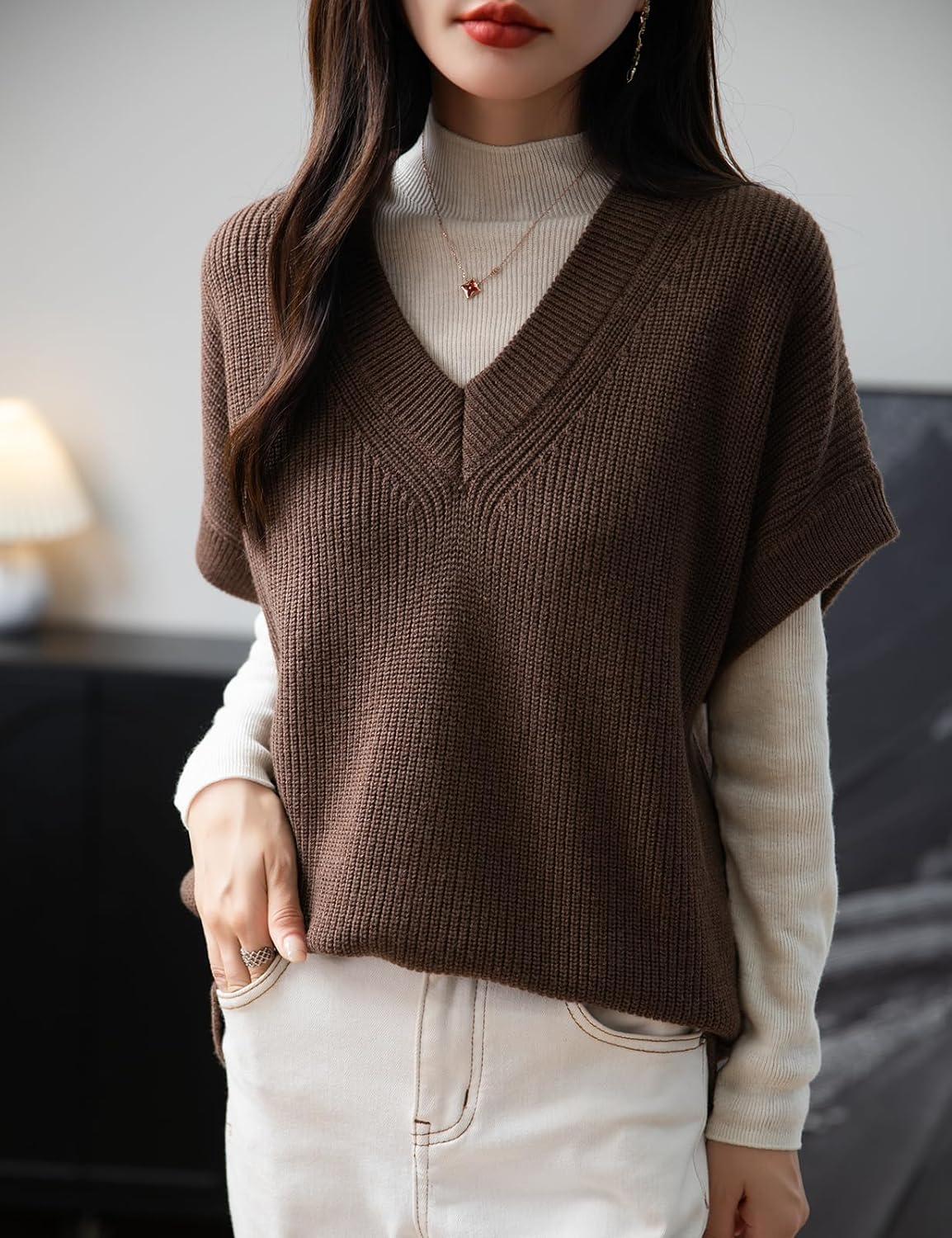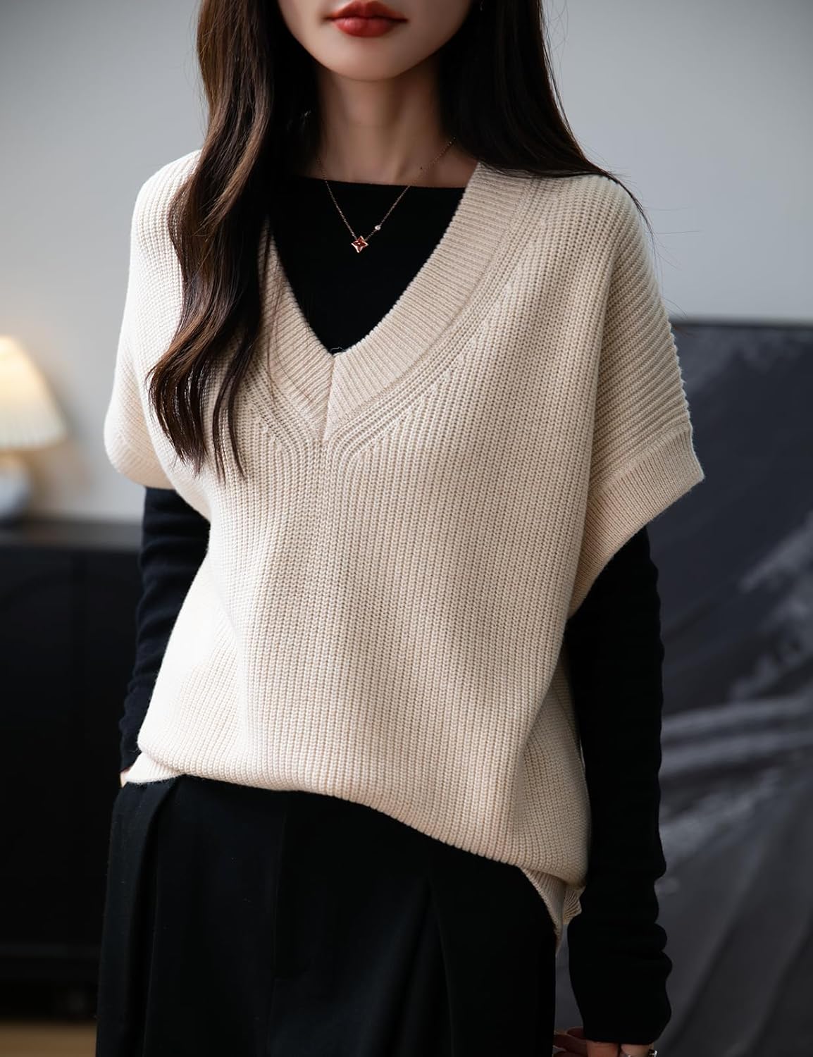Merino Wool Casual V-Neck Knit Sweater Vest