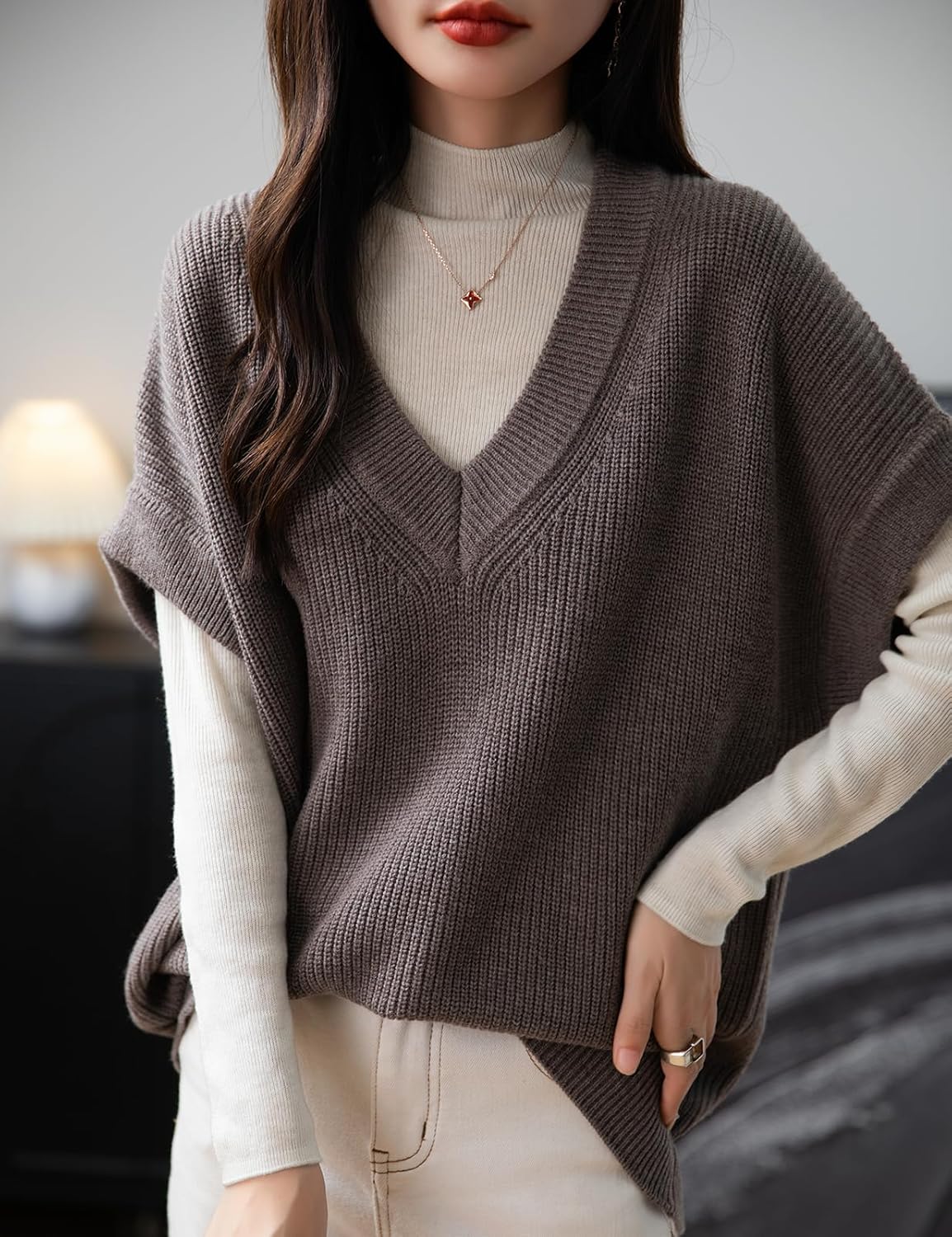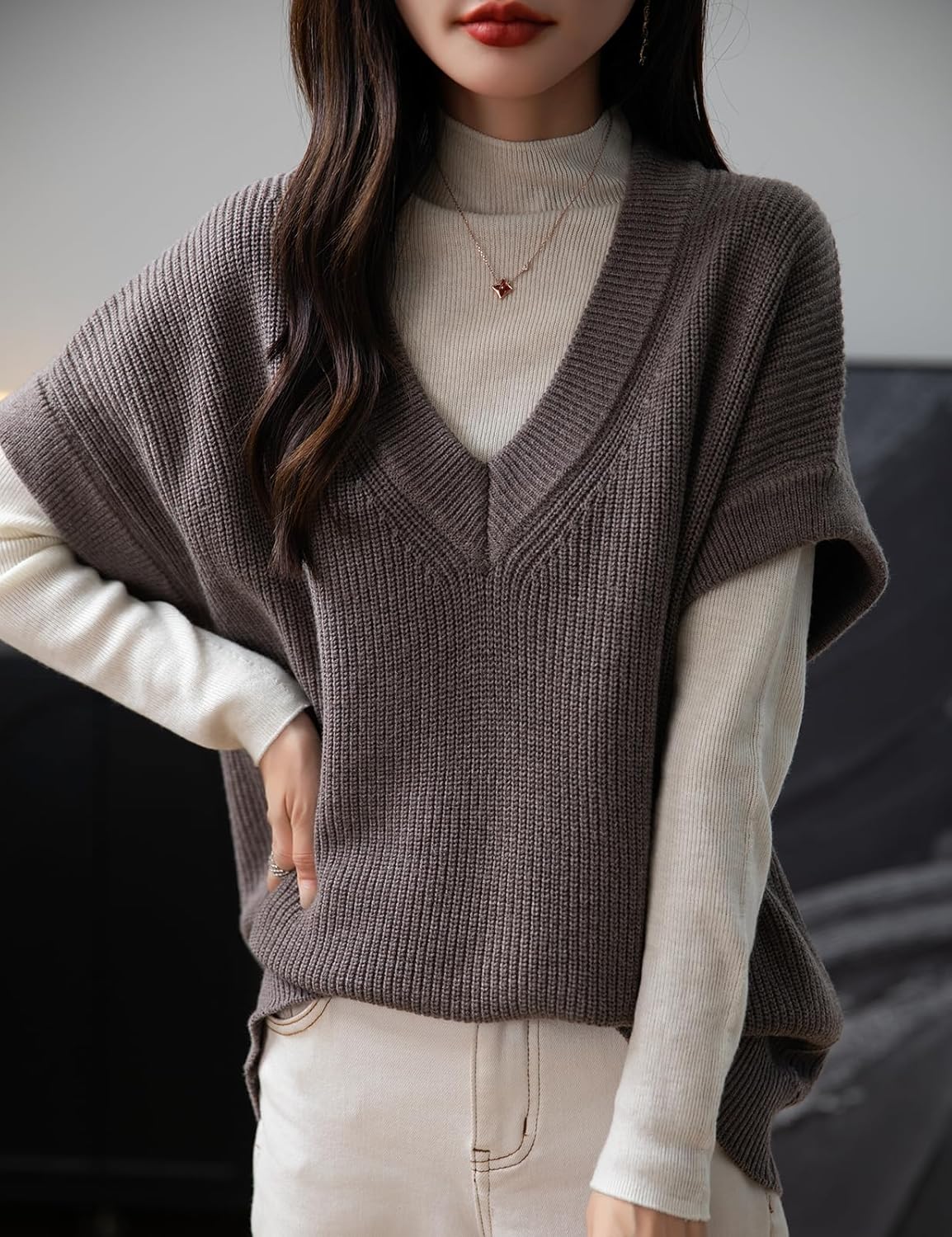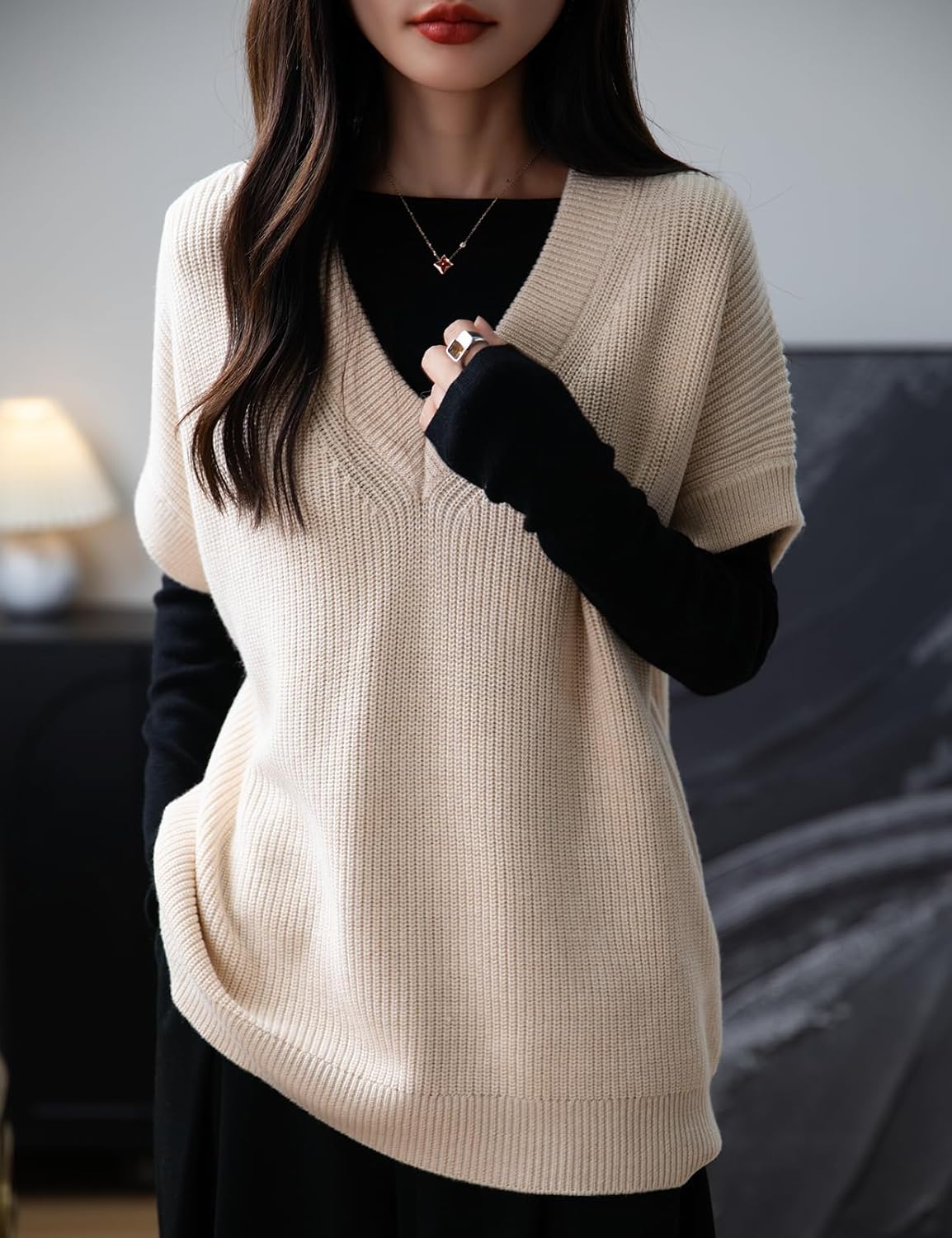 Merino Wool Casual V-Neck Knit Sweater Vest
