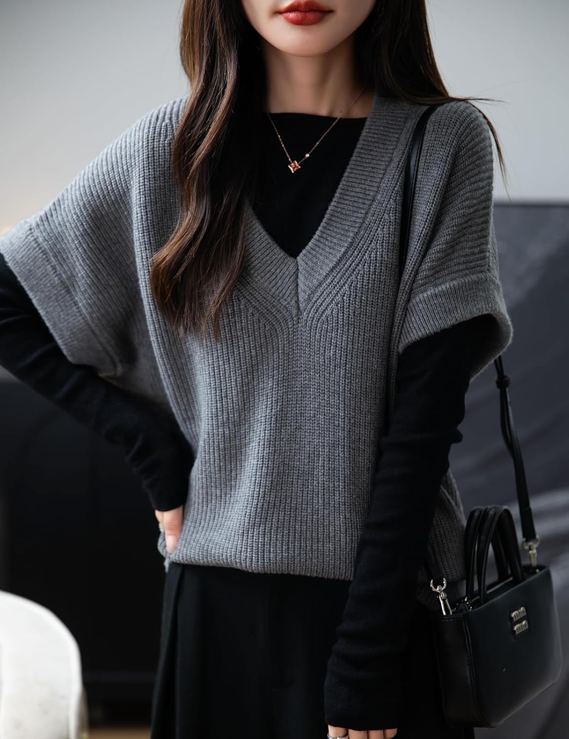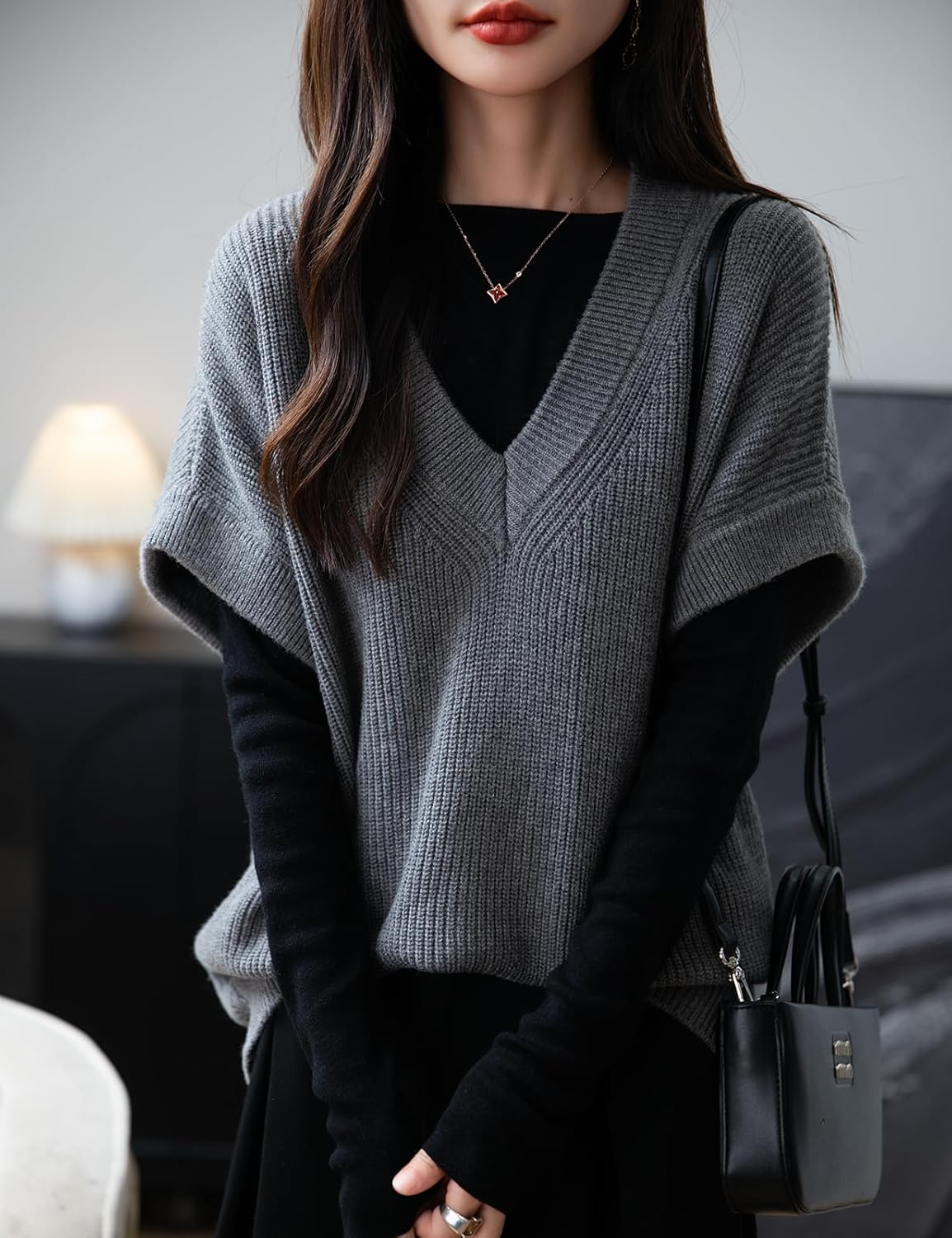 This V-neck vest is beautiful, with nice detailing on the neckline and sleeves. The material looks and feels high quality, and the color is gorgeous. It’s warm and comfortable—a great wardrobe piece. It looks a little different from the model’s photo, as it isn’t quite as long, but it’s still very pretty. The size is accurate; I ordered a small and normally wear a size 4.