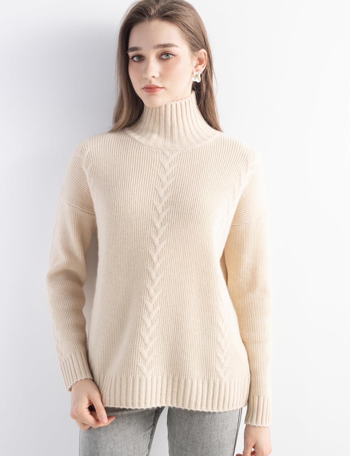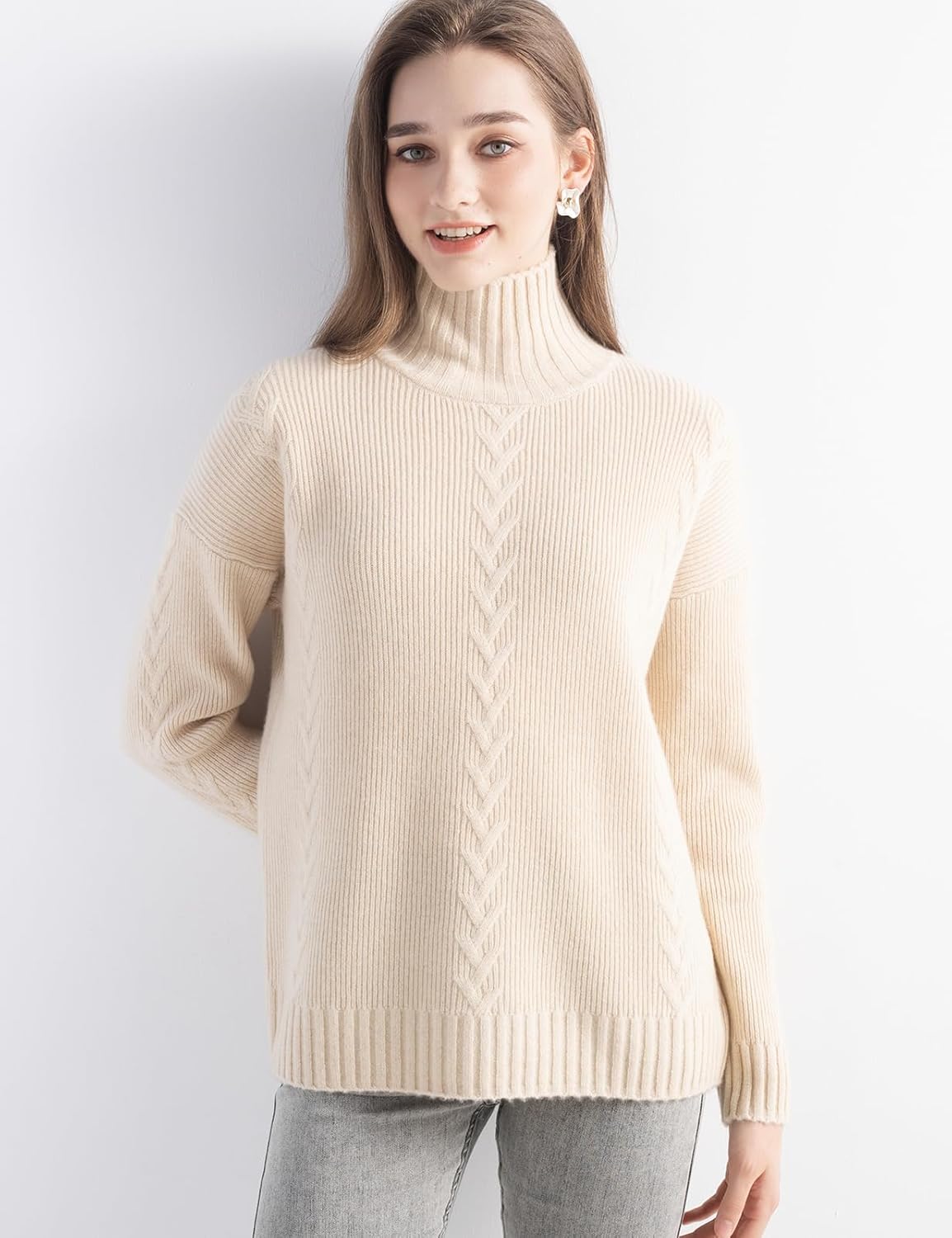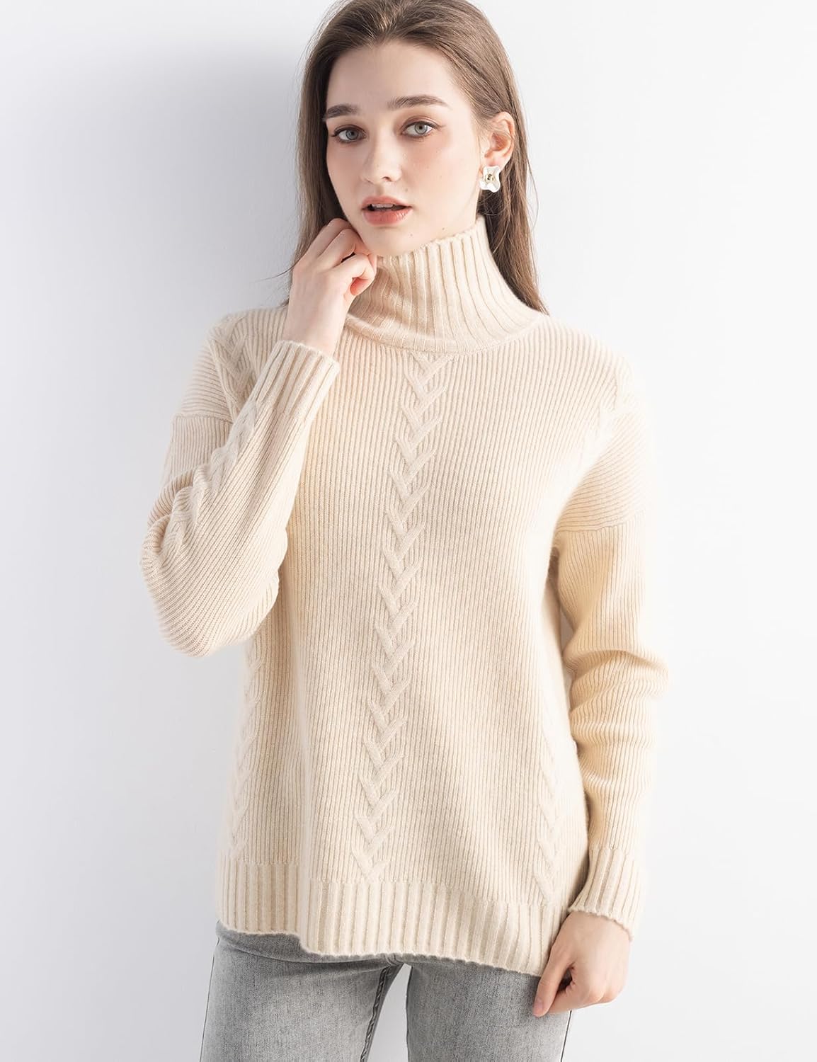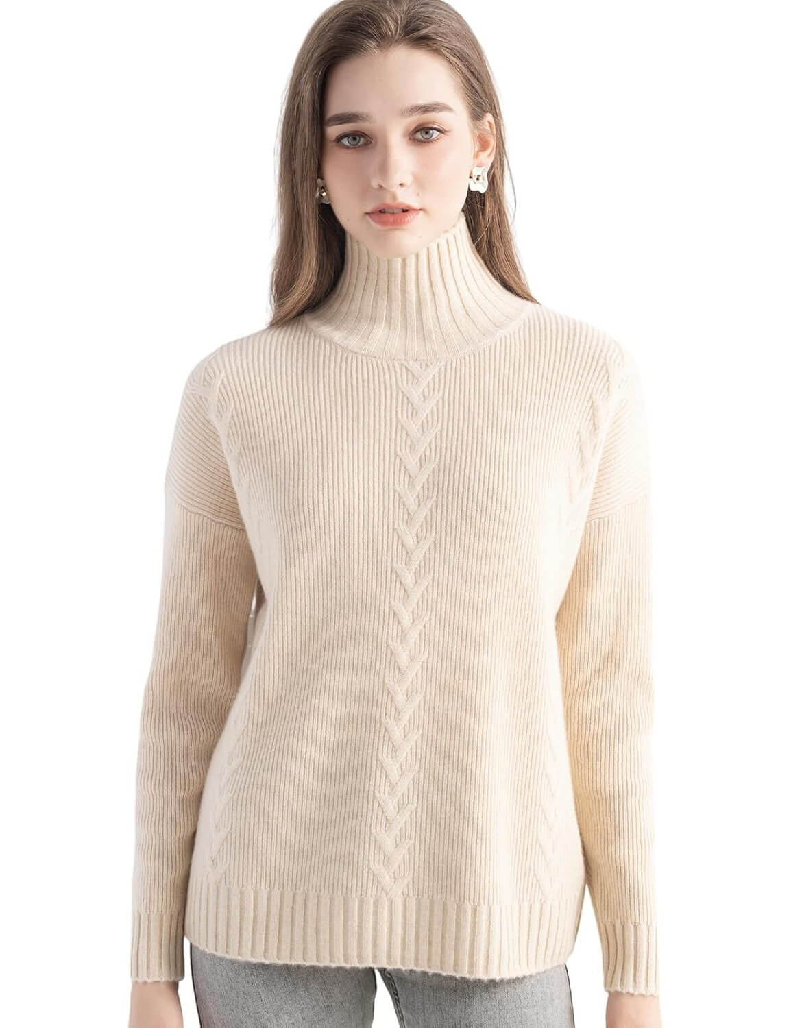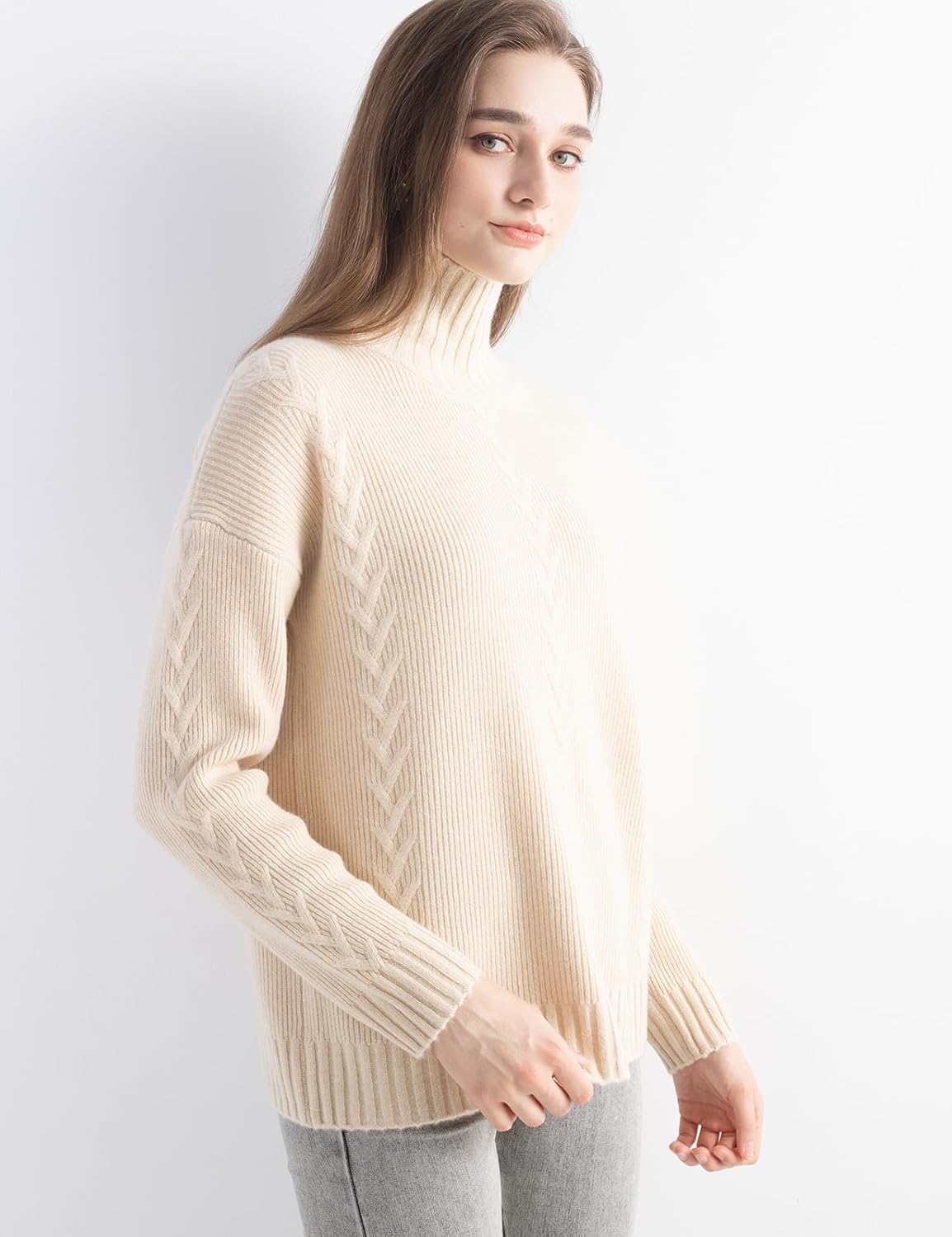 100% Cashmere Cable Knit Mock Neck Sweater