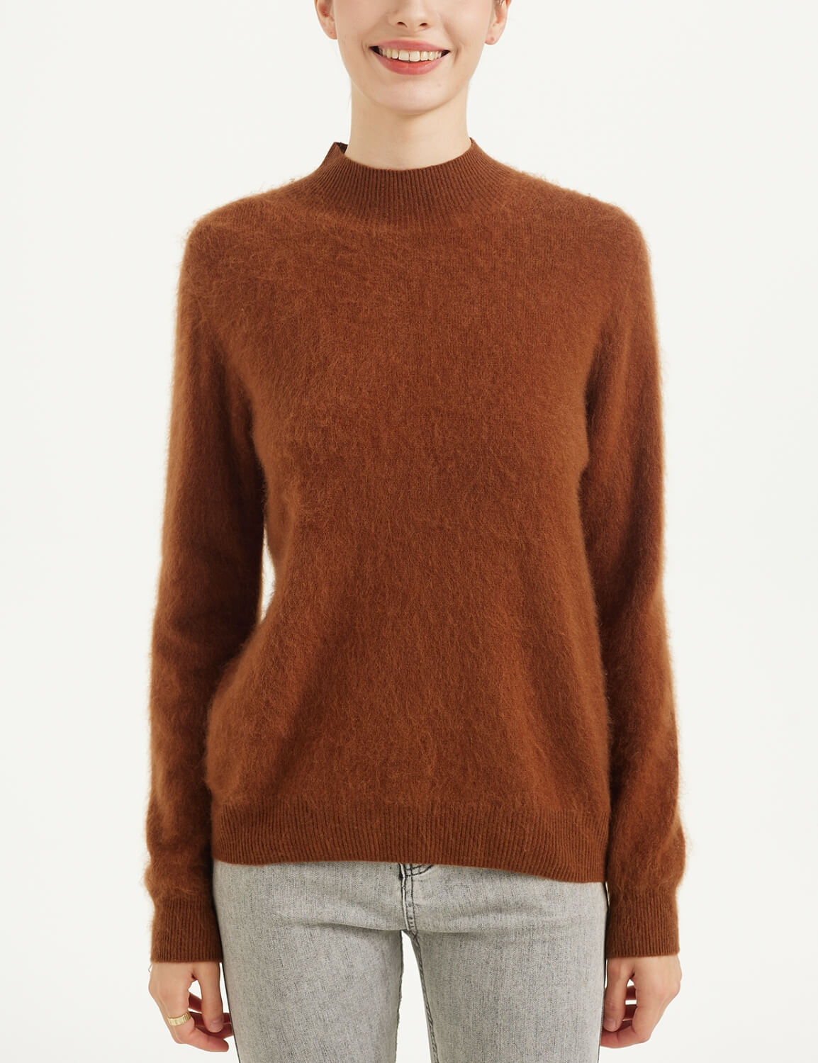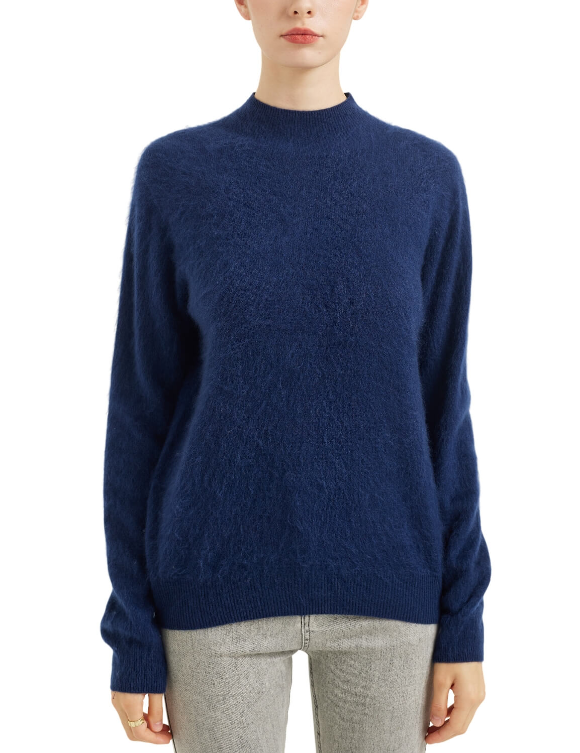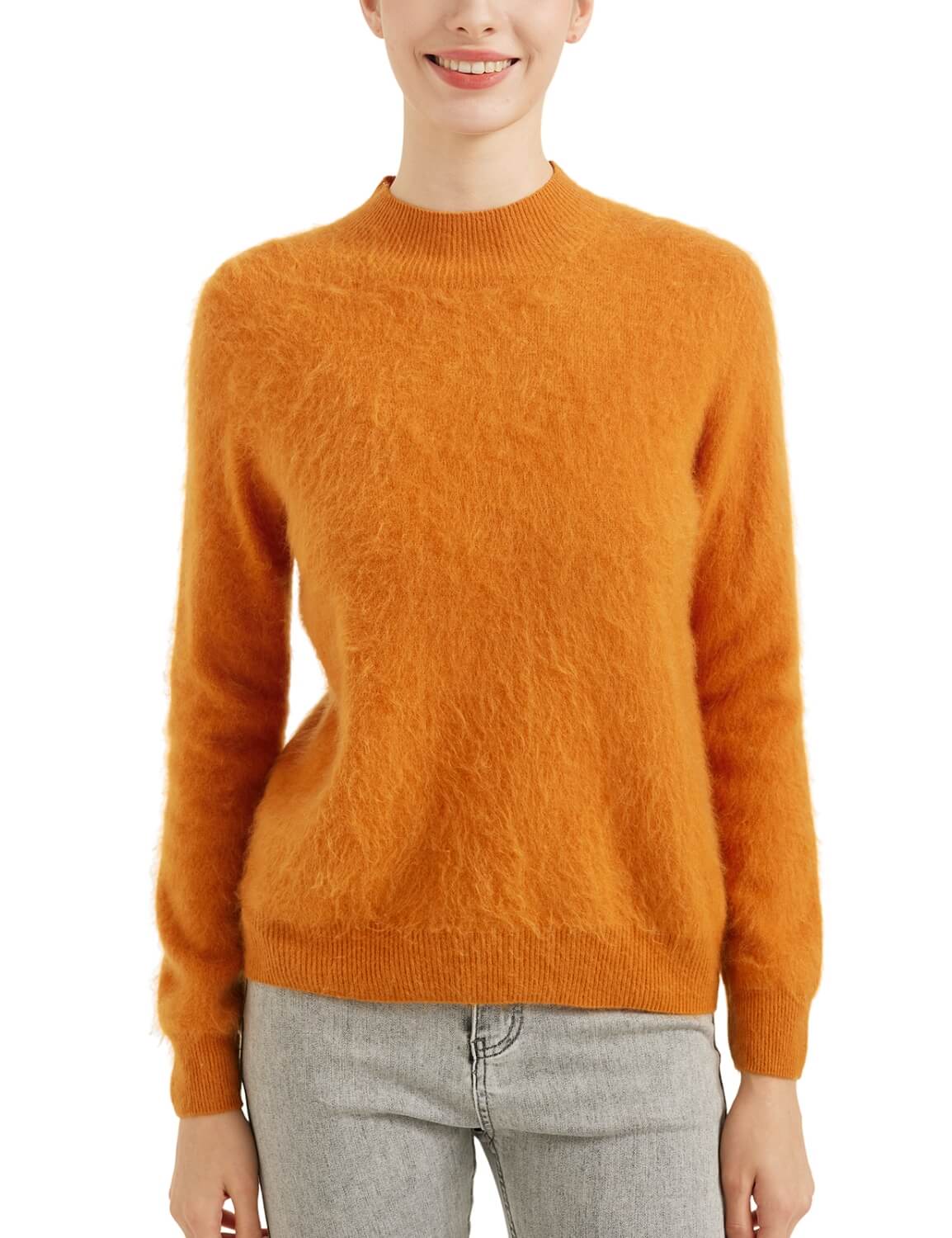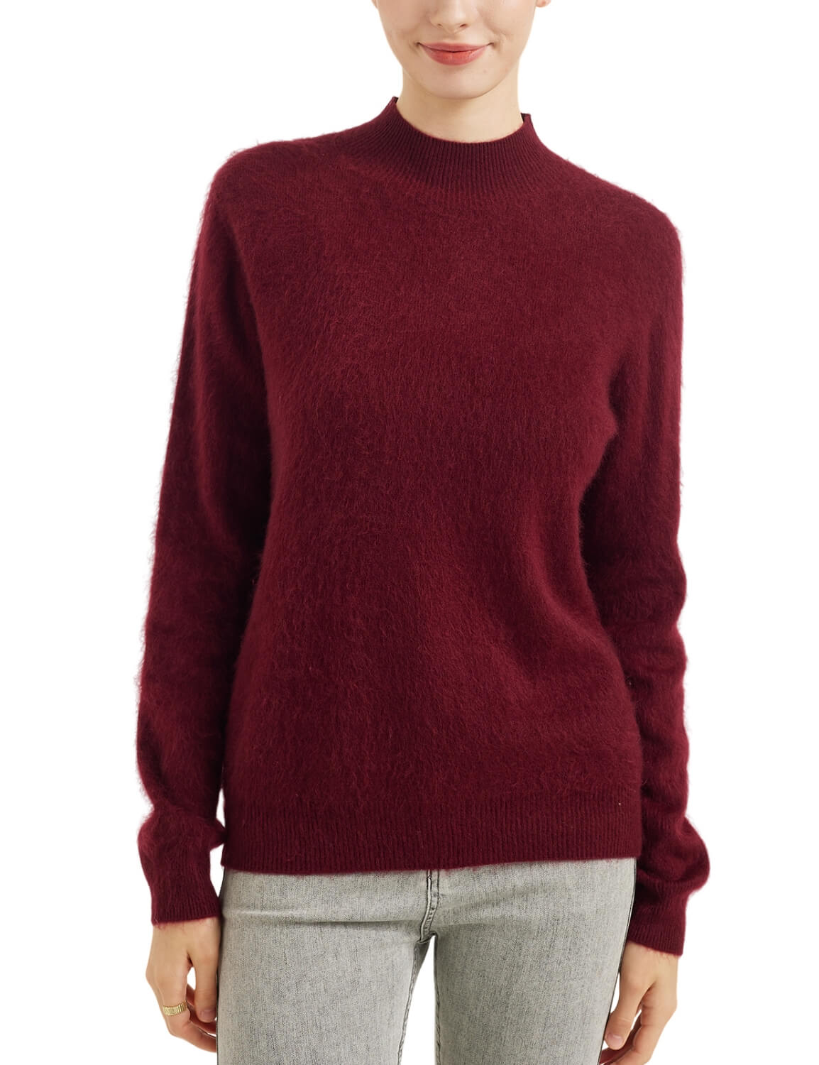 Chanyarn Women's 100% Merino Wool Luxury Soft Fall Winter Warm Long Sleeve Mock Neck Brushed Fuzzy Pullover Sweater