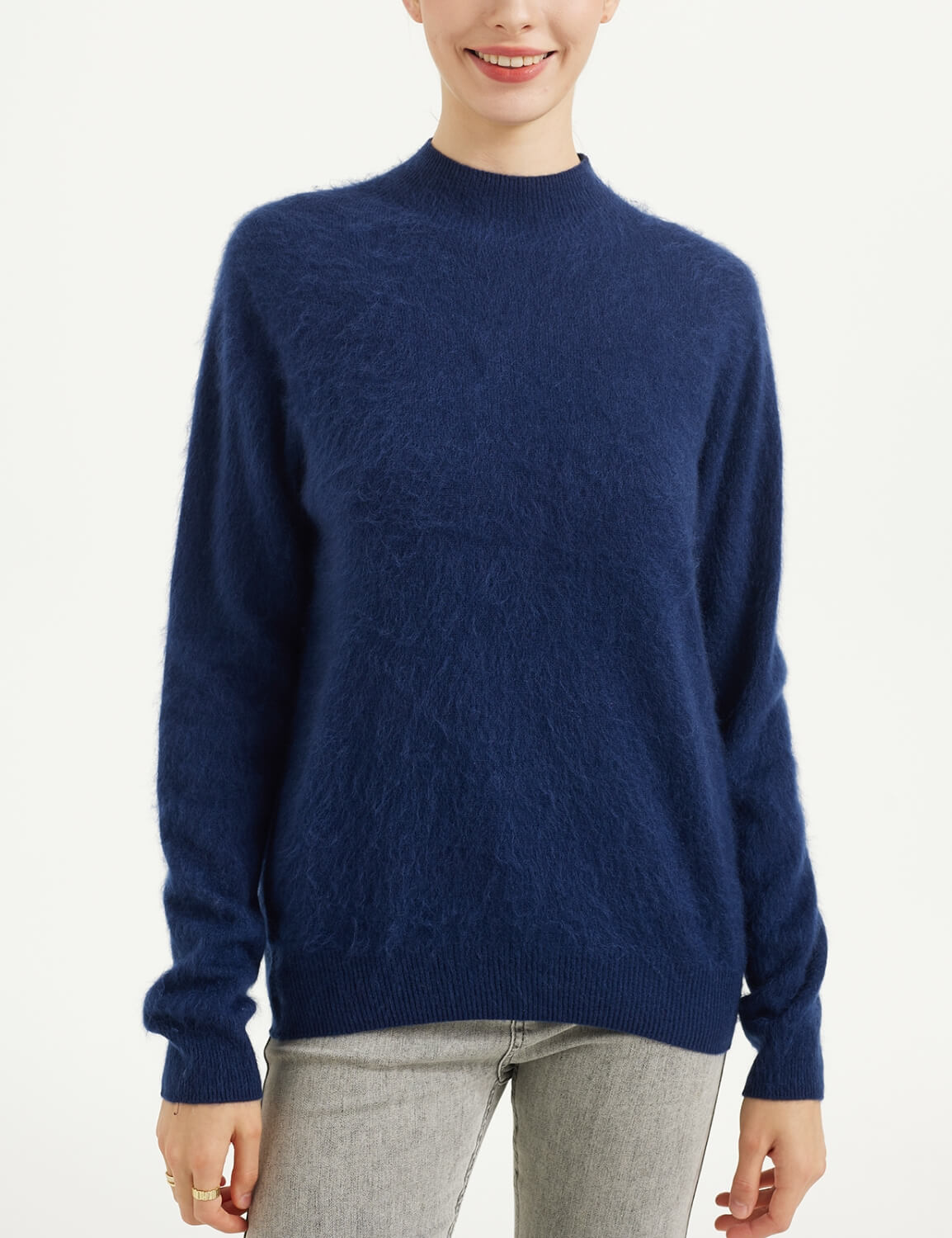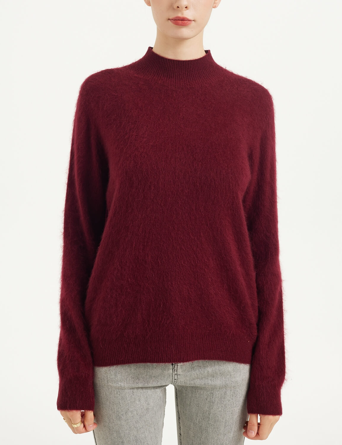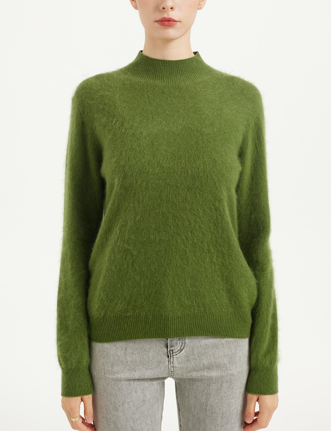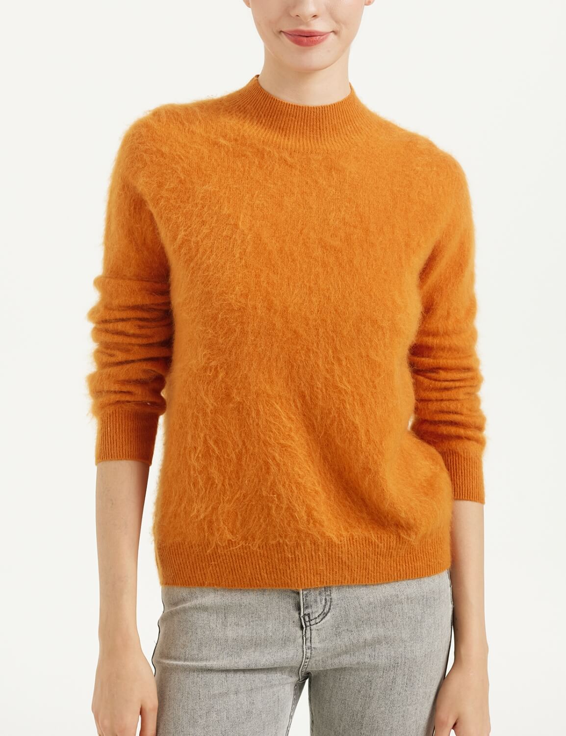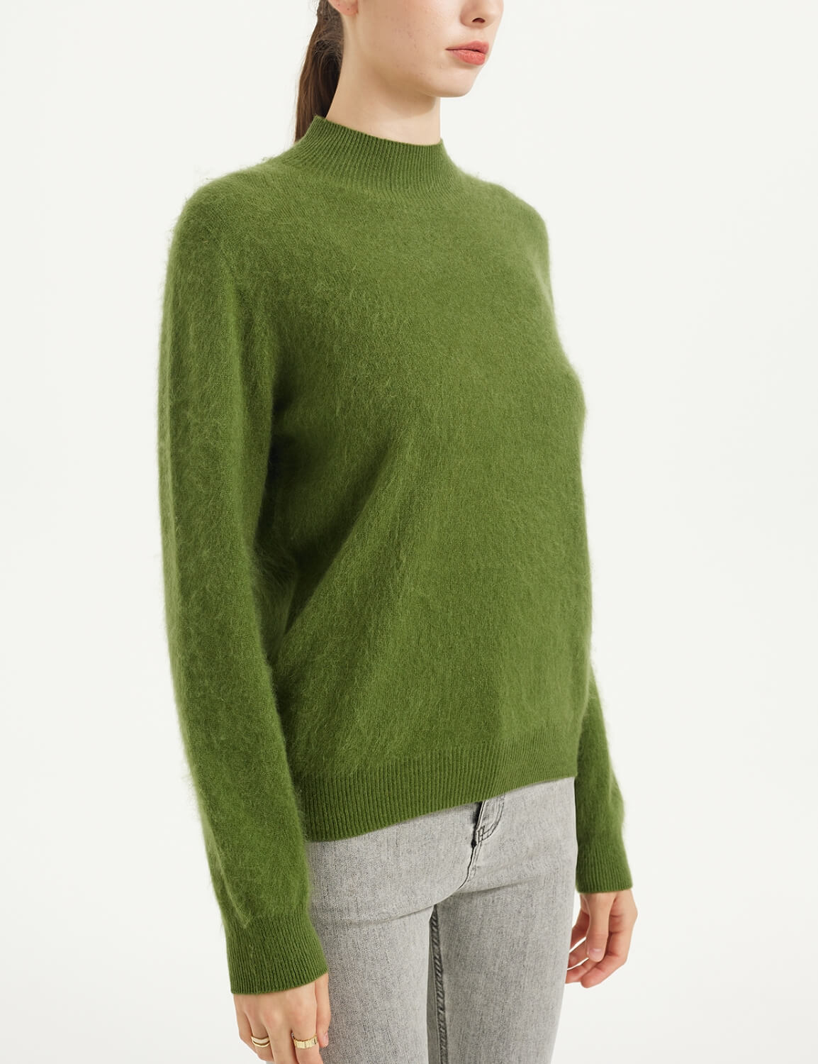 Chanyarn Women's 100% Merino Wool Luxury Soft Fall Winter Warm Long Sleeve Mock Neck Brushed Fuzzy Pullover Sweater