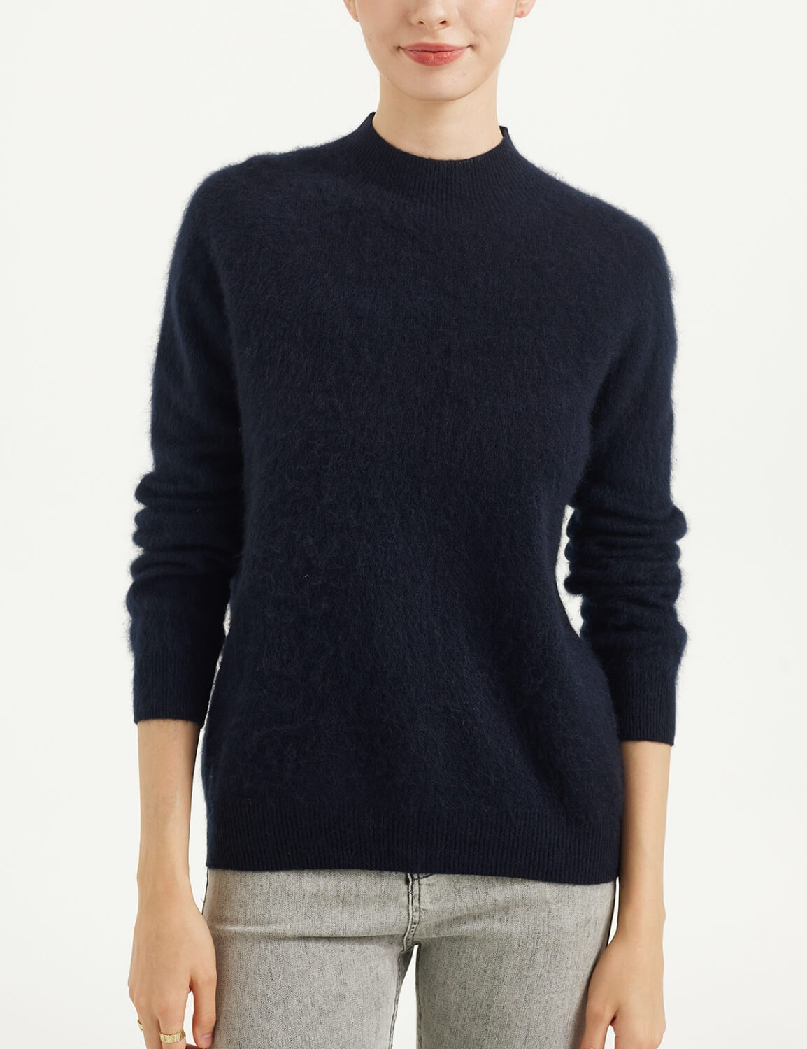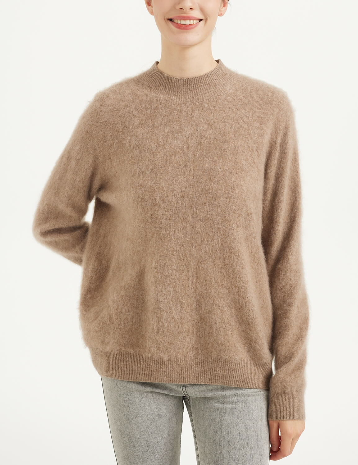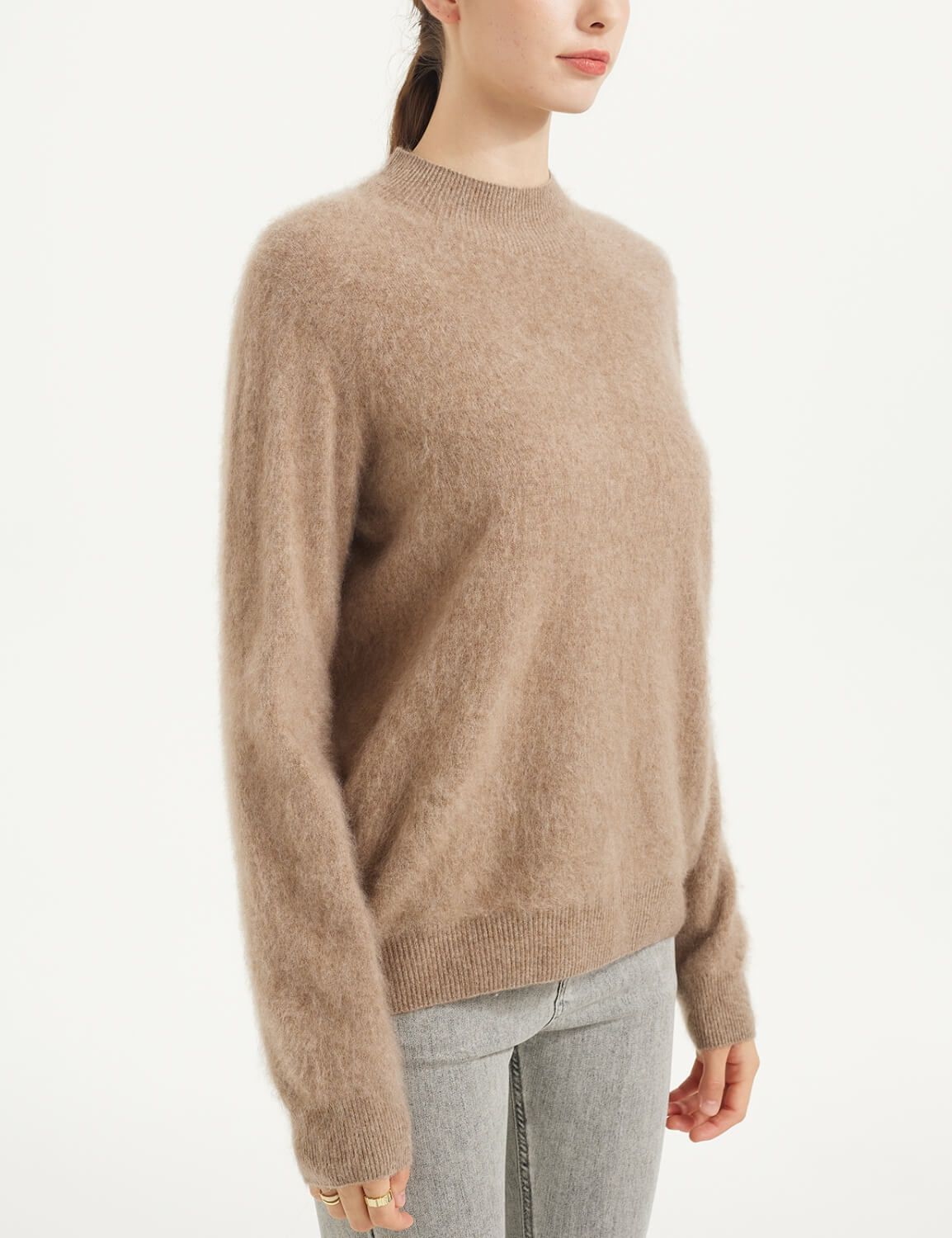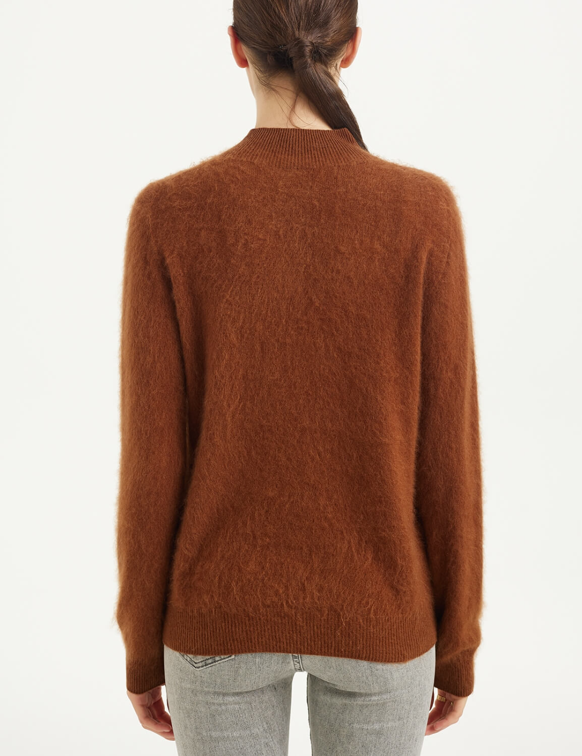 Chanyarn Women's 100% Merino Wool Luxury Soft Fall Winter Warm Long Sleeve Mock Neck Brushed Fuzzy Pullover Sweater