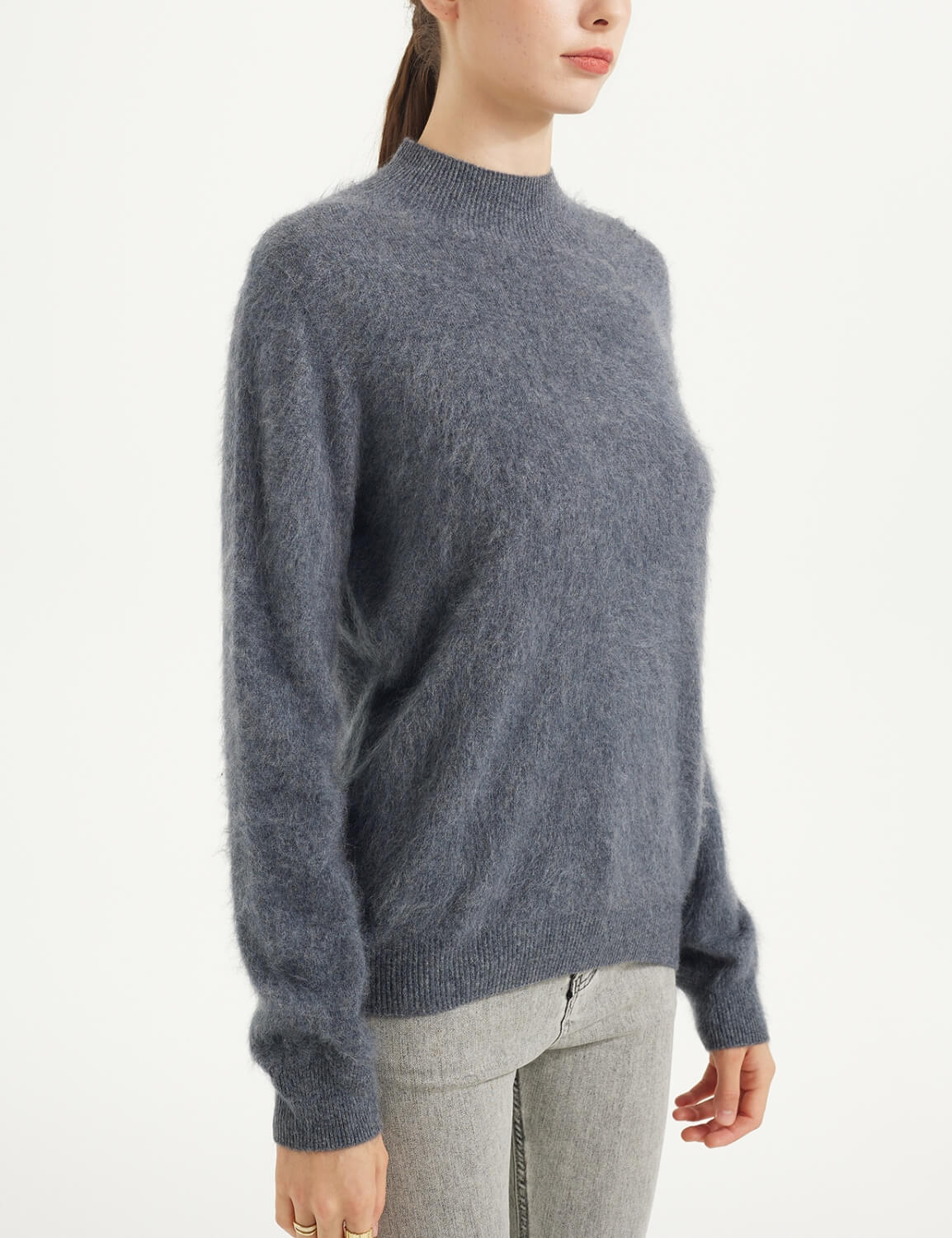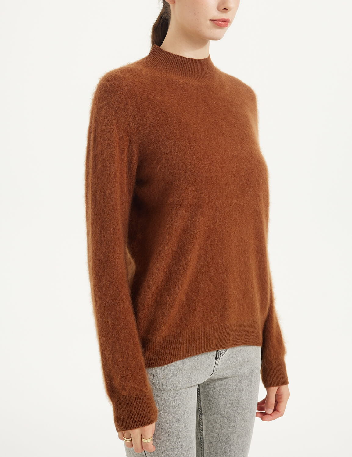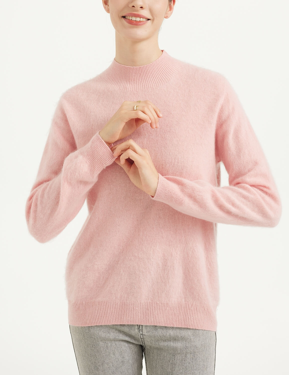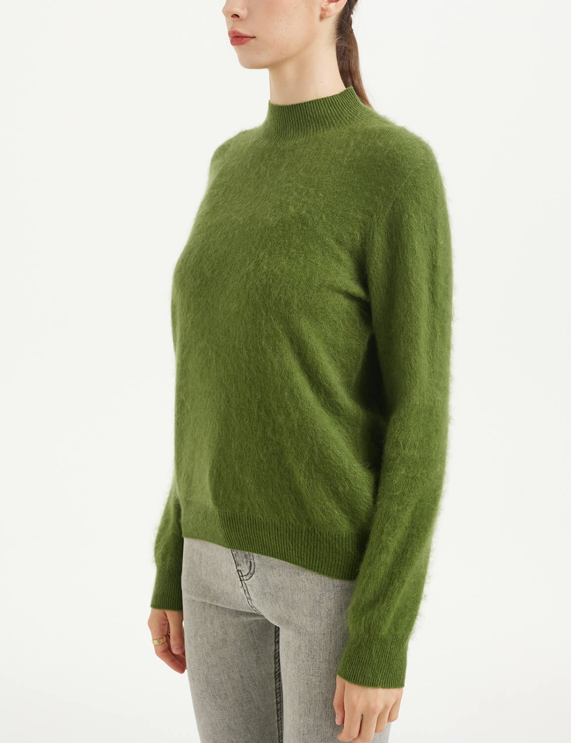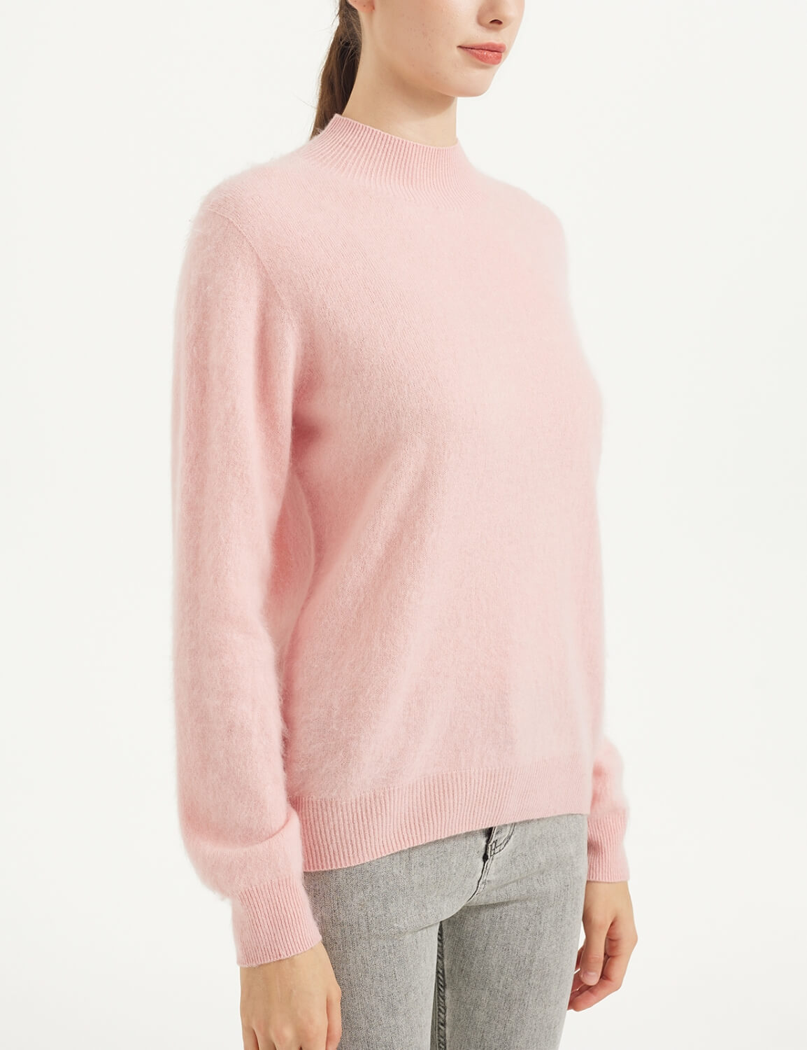Chanyarn Women's 100% Merino Wool Luxury Soft Fall Winter Warm Long Sleeve Mock Neck Brushed Fuzzy Pullover Sweater