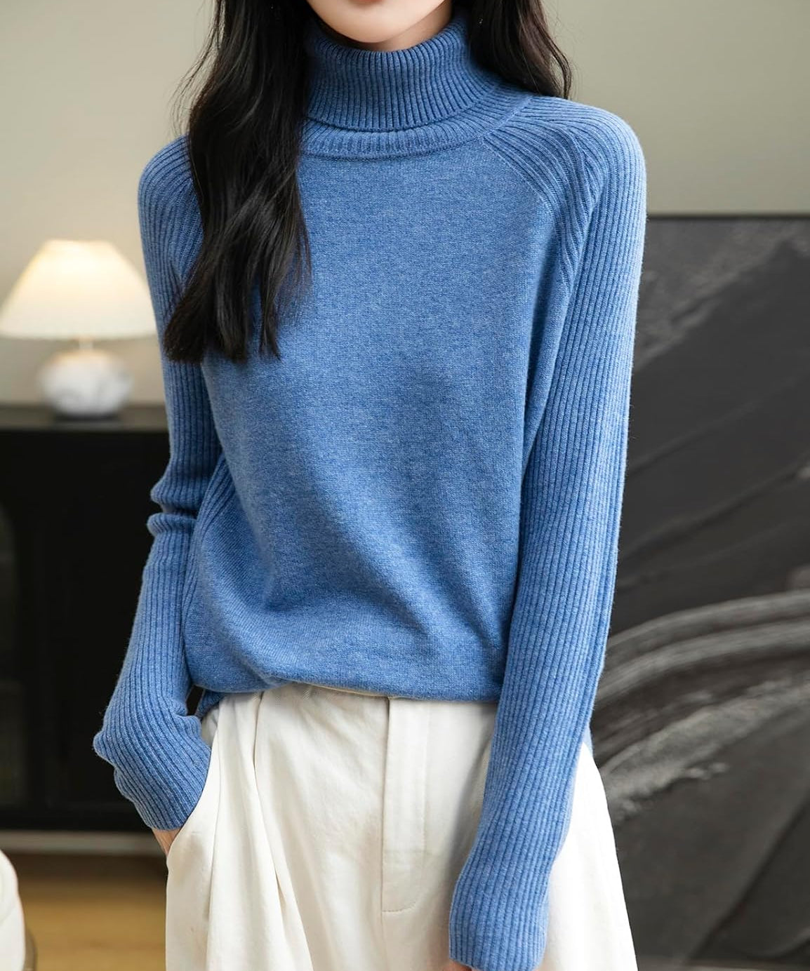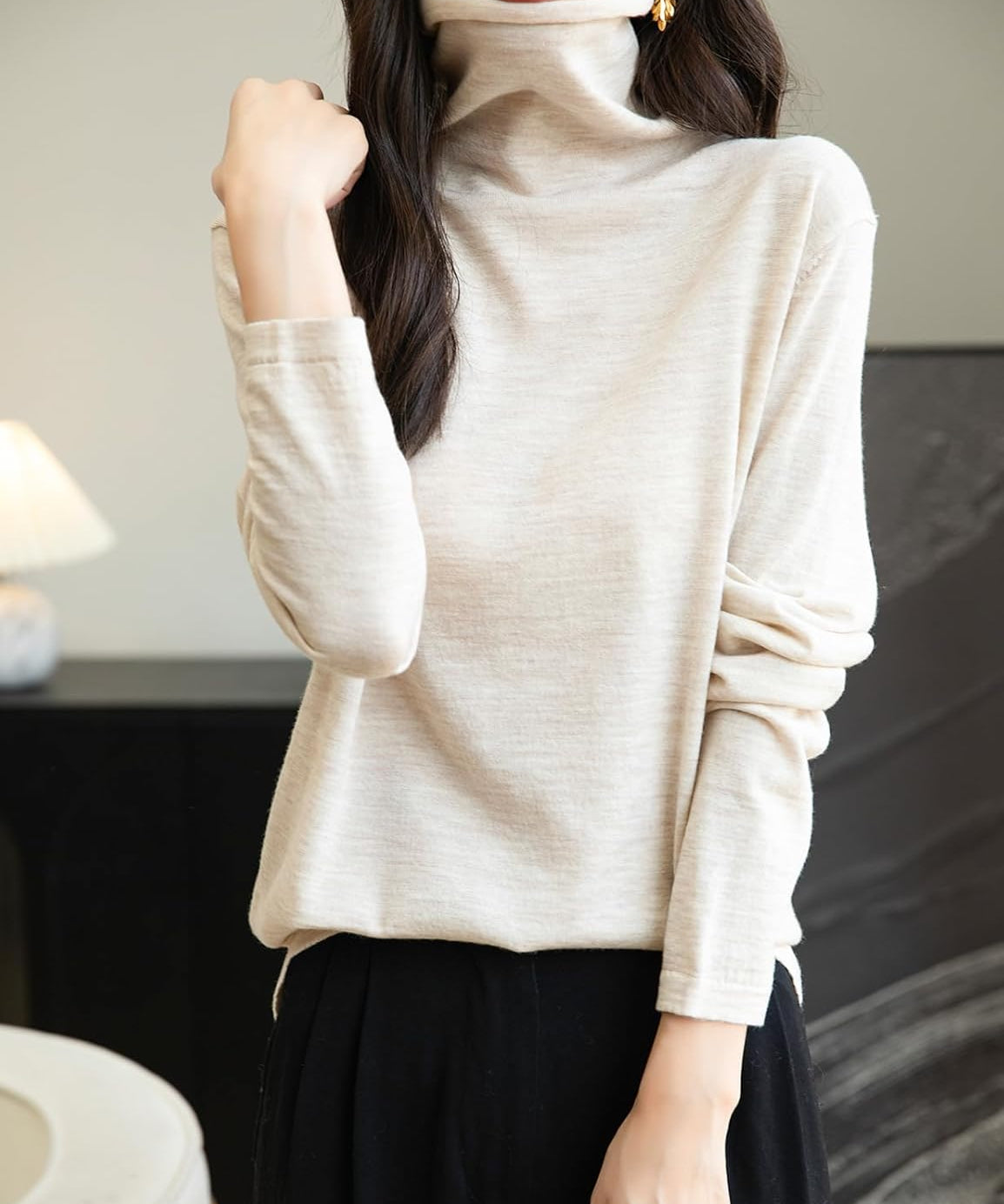 This 100% merino wool sweater uses the latest perfect seamless technology, bulky and annoying stitches at the shoulders, sides and underarms are gone, seams no longer interfere with the natural elasticity of knits, so you can move and stretch more freely.There is no cutting, no seams, soft and comfortable and smooth lines, makes it more comfortable to wear, won't feel tight and rub against the skin when wearing it.