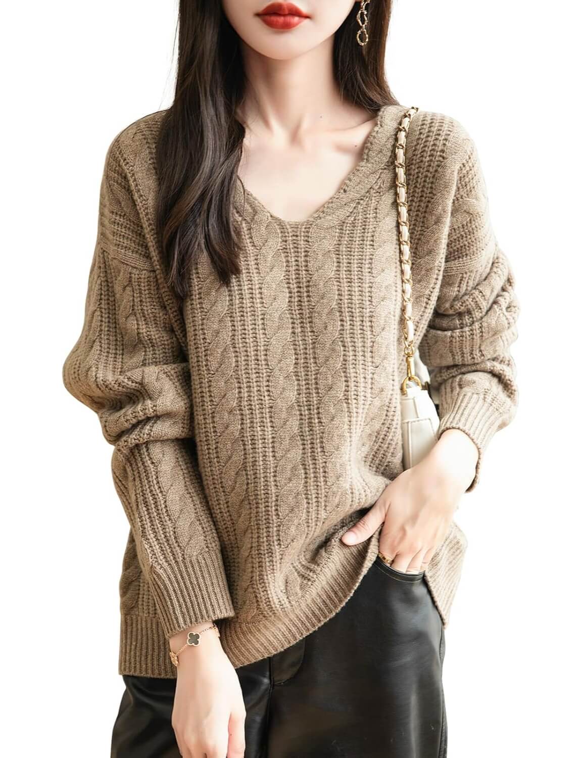 100% Merino Wool V-Neck Oversized Knit Sweater