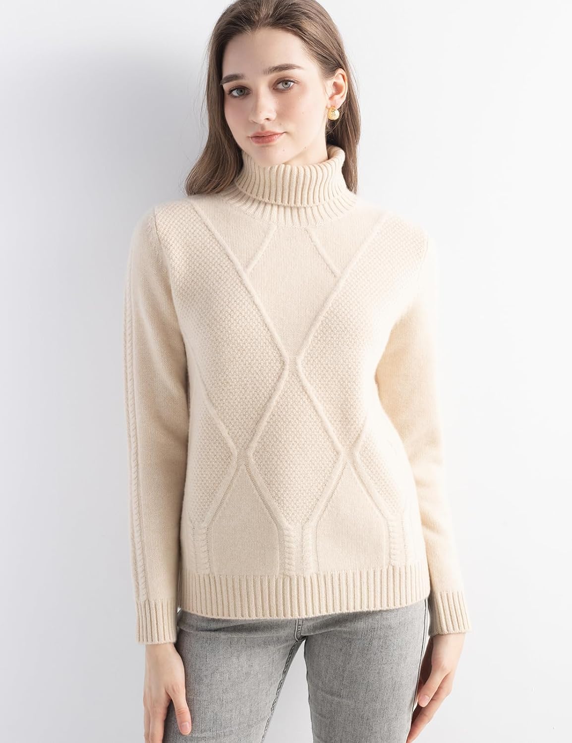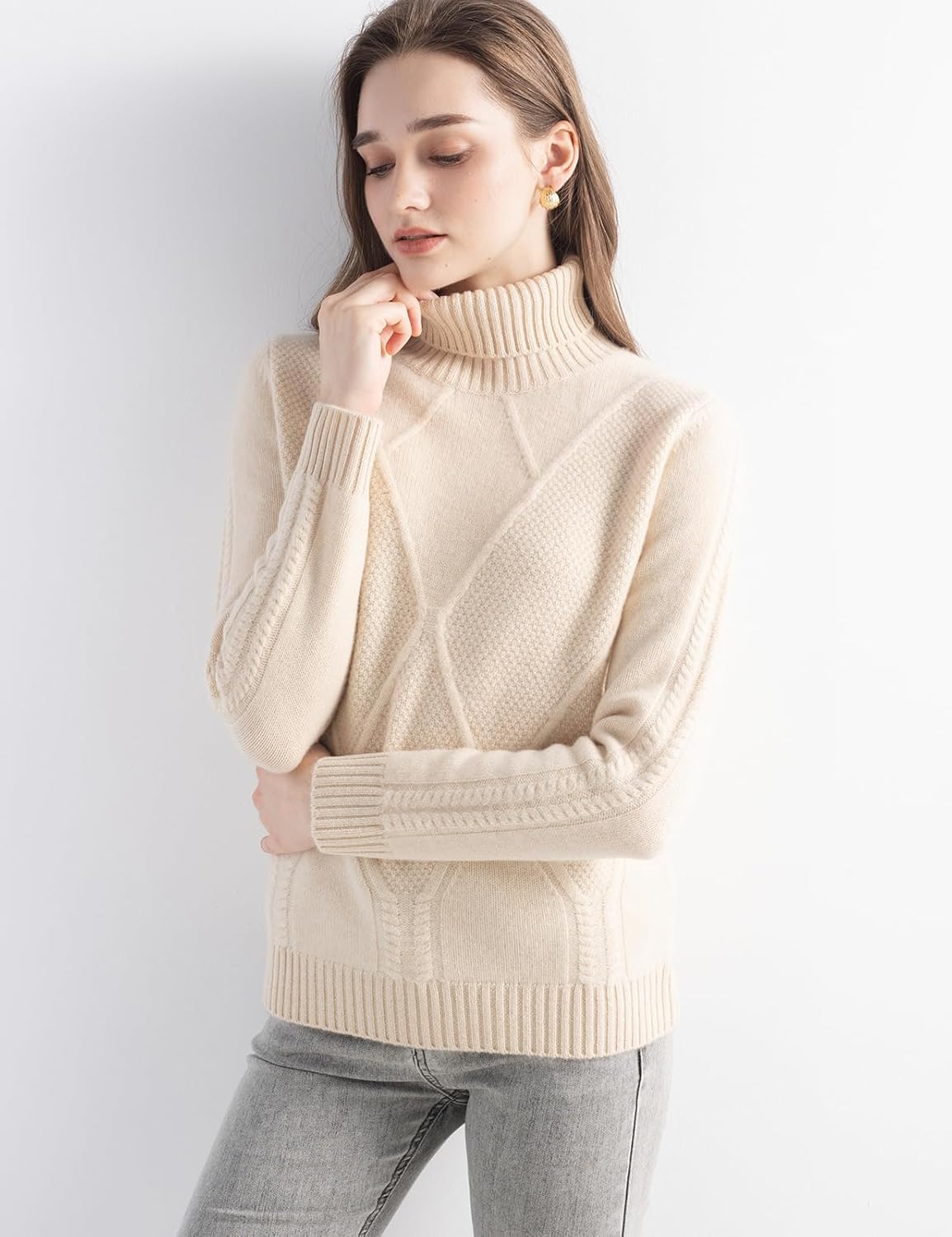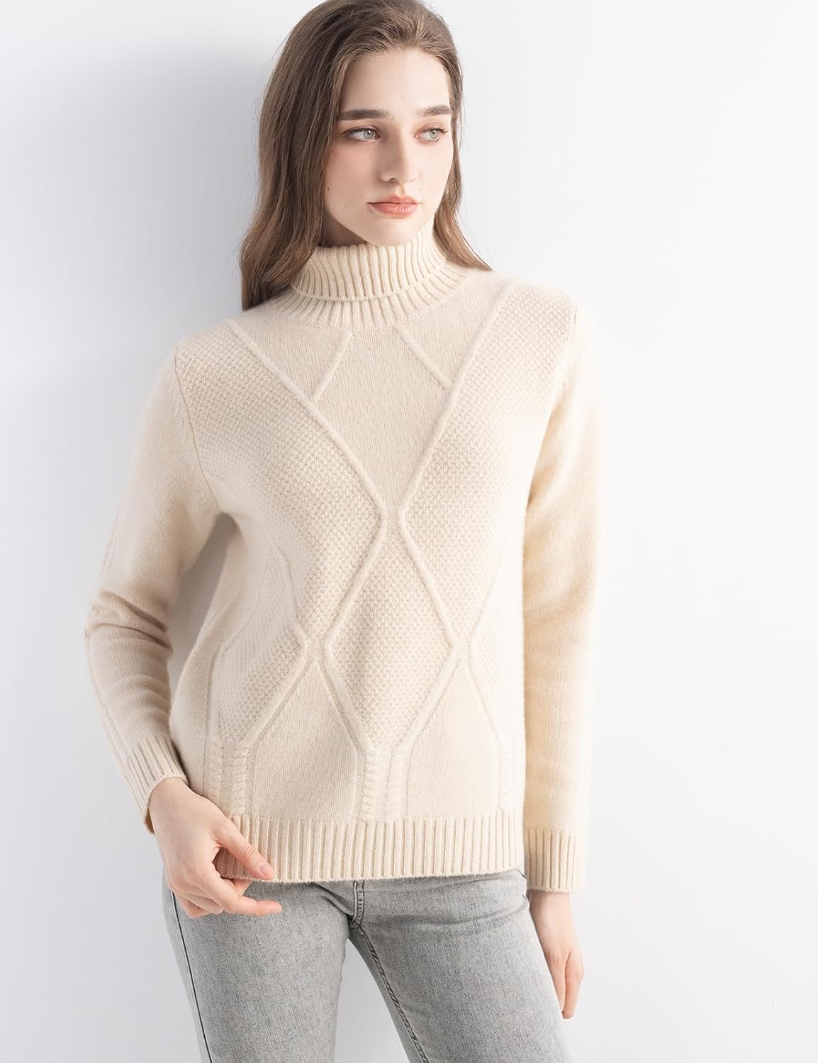Mongolian Cashmere Women’s Cable Knit Turtleneck