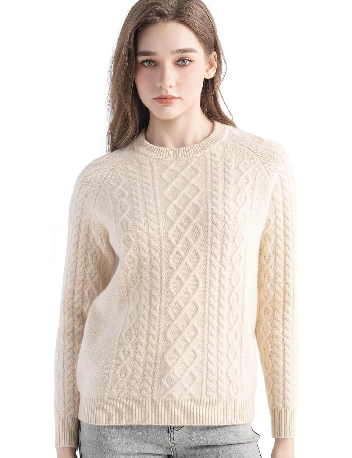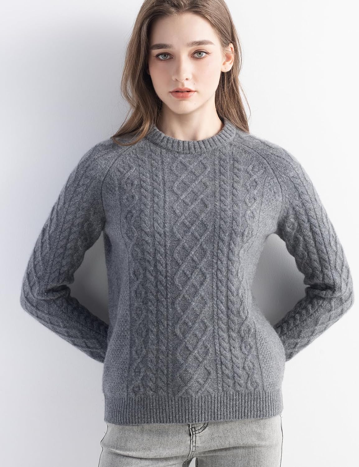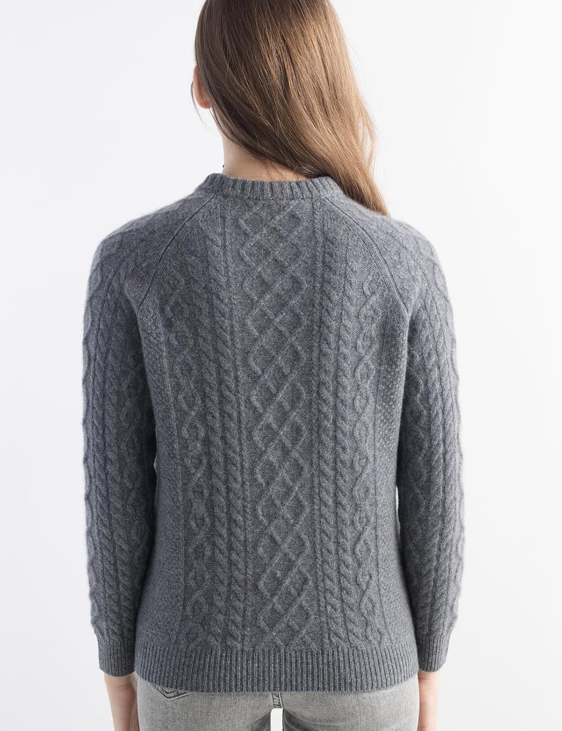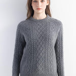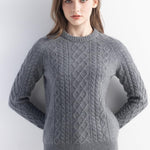 Elevate your autumn and winter wardrobe with this 100% cashmere crewneck sweater. Crafted from luxuriously soft Inner Mongolia cashmere, it features a timeless cable-knit with square pattern detailing. Lightweight yet warm, with a classic fit and long sleeves, it combines effortless style with cozy comfort.