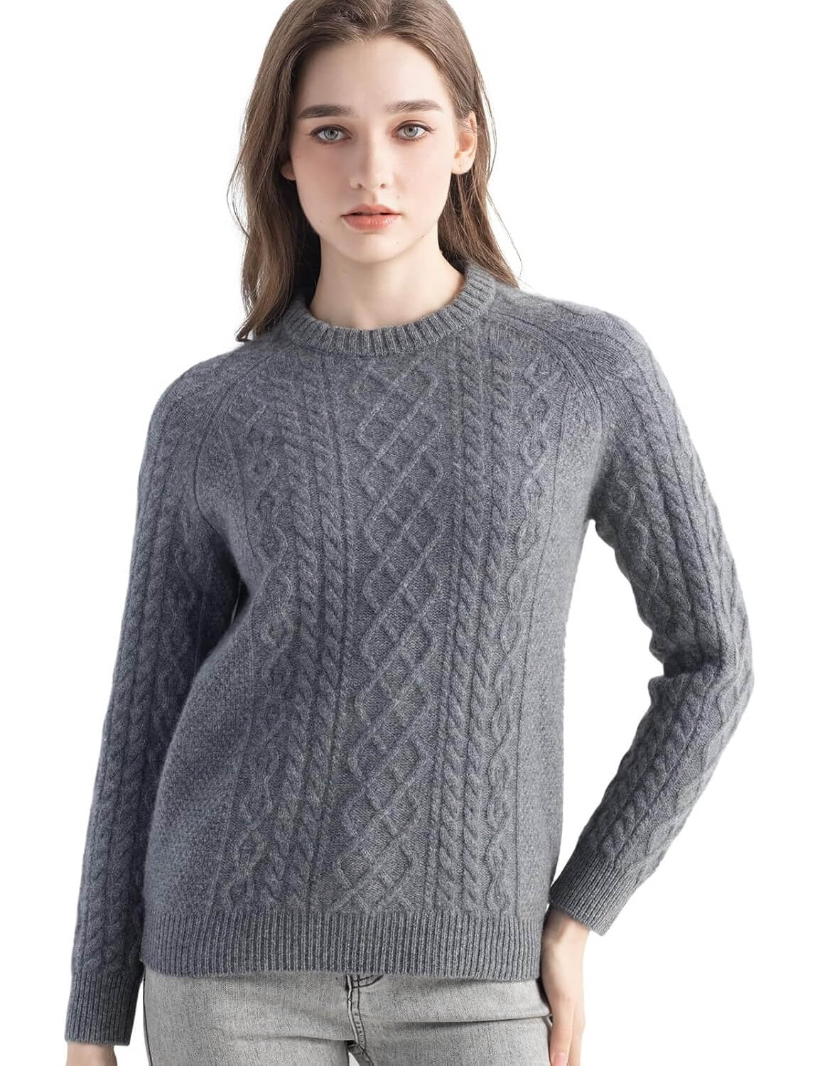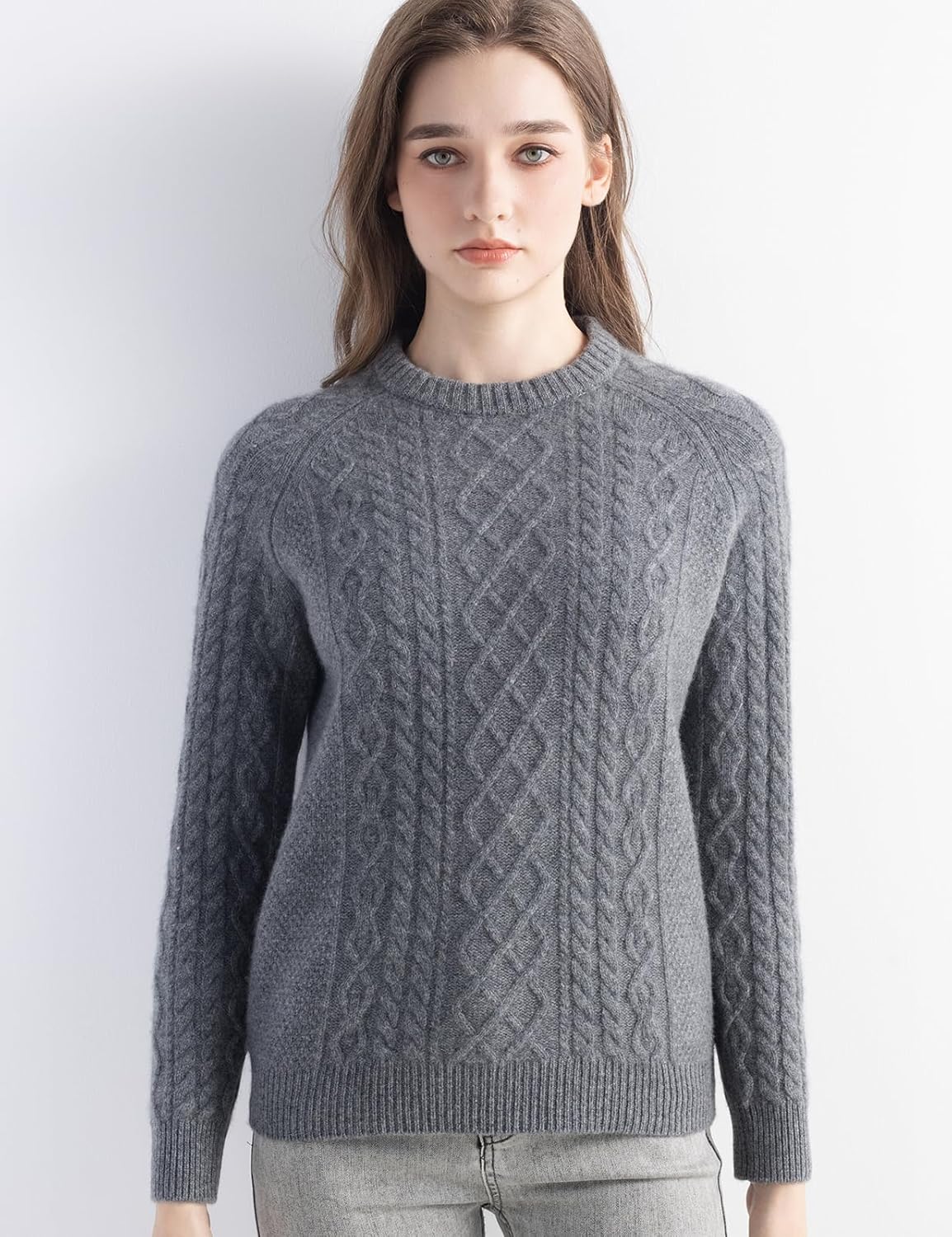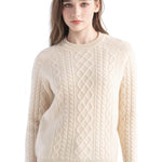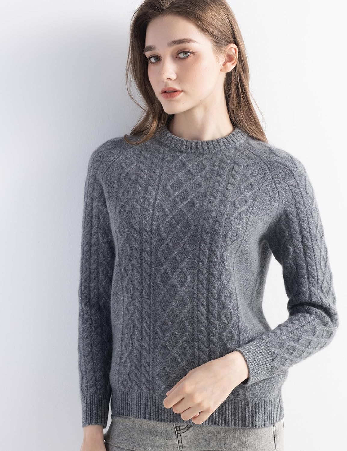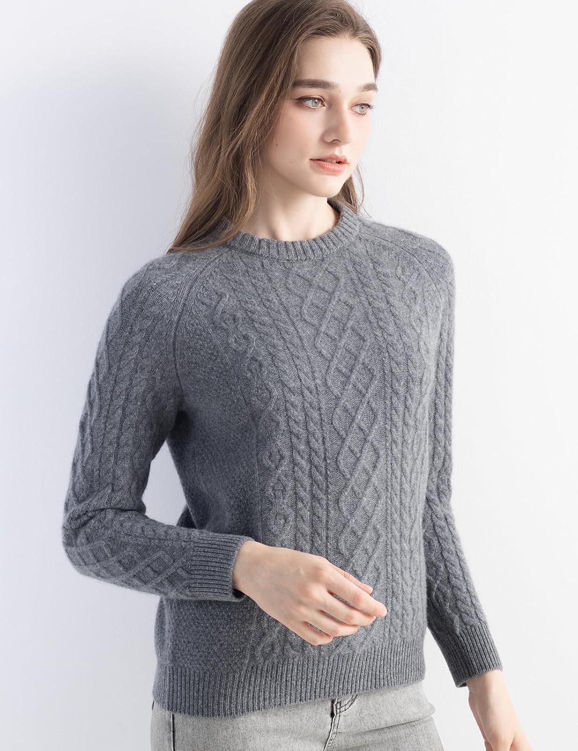 Elevate your autumn and winter wardrobe with this 100% cashmere crewneck sweater. Crafted from luxuriously soft Inner Mongolia cashmere, it features a timeless cable-knit with square pattern detailing. Lightweight yet warm, with a classic fit and long sleeves, it combines effortless style with cozy comfort.