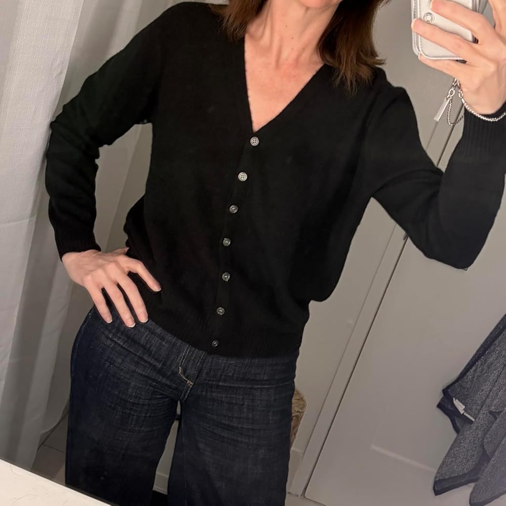 The Chanyarn Women’s 100% Pure Cashmere Cardigan is absolutely stunning! The moment I put it on, I could feel the difference — it’s incredibly soft, warm, and lightweight, with that classic cashmere elegance. The V-neck design is timeless and flattering, making it easy to dress up or down.The knit quality is exceptional, with a smooth, even texture that feels so luxurious against the skin. It drapes beautifully and adds just the right amount of warmth for chilly fall and winter days without feeling bulky.This cardigan has quickly become my go-to piece for the season — cozy, classy, and effortlessly stylish. If you’re looking for a high-quality cashmere sweater that feels like a hug and looks amazing, this is the one!