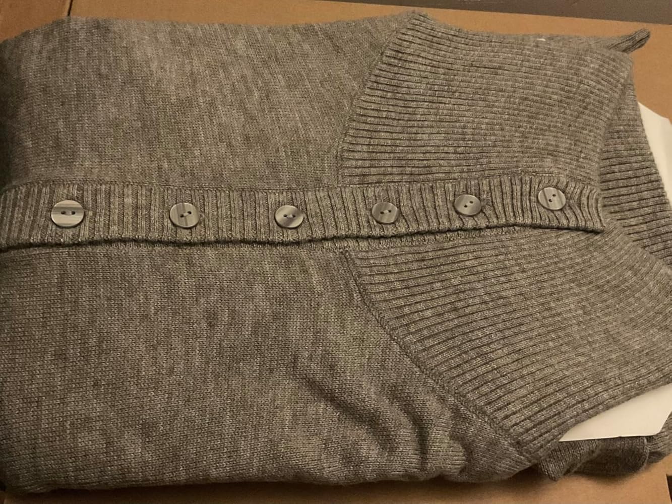 Merino Wool Blend Mock Neck Buttoned Knit Cardigan