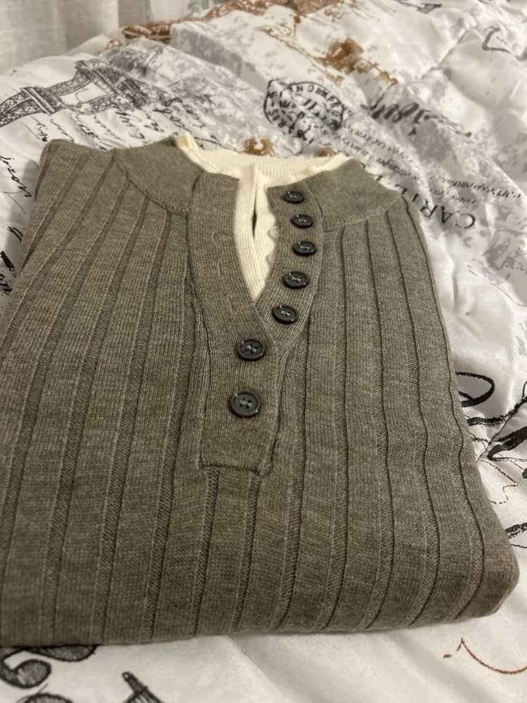 Fake two-piece stand collar long sleeve sweater, 1/4 button design, rib, medium thickness, normal fit, lightweight, soft and warm. This sweater can be a stand-up collar to keep you warm, or a V-neck to modify your face shape and make you look thinner. This knitted ribbed sweater can better show your figure, make you look more elegant, and highlight your temperament. It is a must-have for your autumn and winter wardrobe.