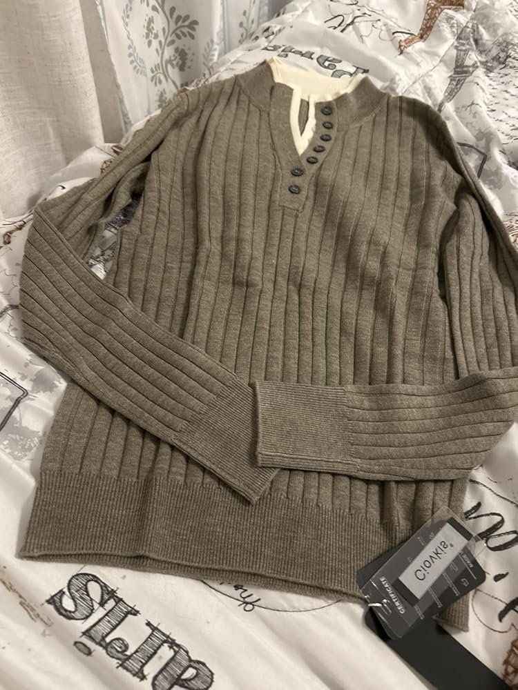 This sweater is made of 5.9% Merino wool, 40.4% anti-pilling nylon, 29.1% anti-pilling acrylic and 24.6% recycled polyester blended fabric. Merino wool brings warmth, nylon and acrylic bring a lasting and smooth touch, ensuring no fuzz or pilling even after frequent wear. Recycled Polyester adds durability while enhancing breathability and moisture-wicking, making you feel comfortable all day long.