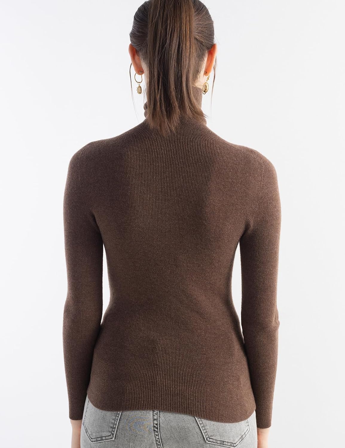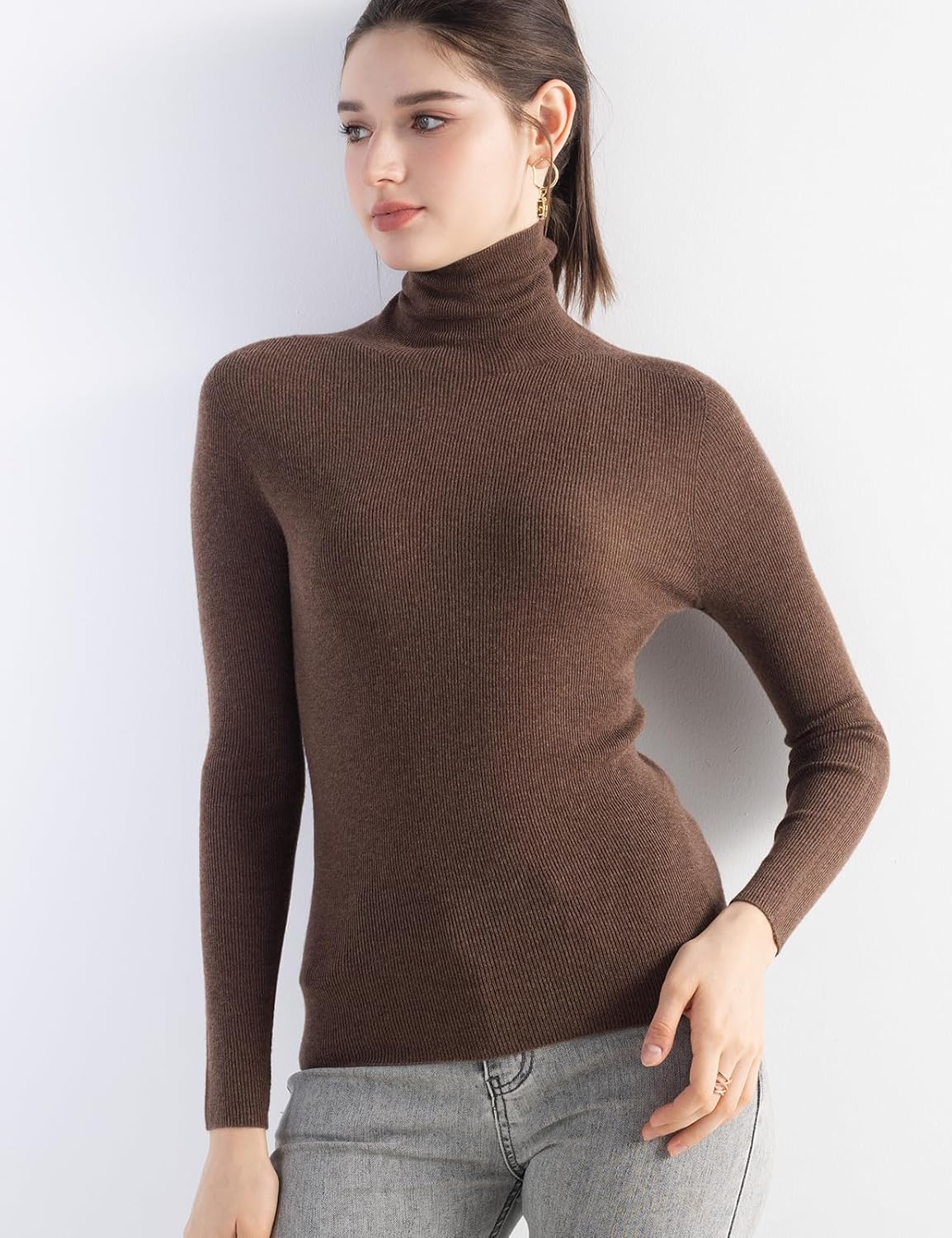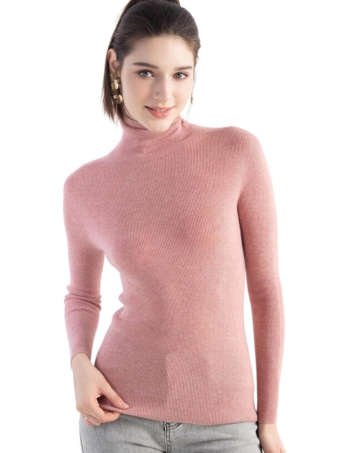 Turtleneck sweater, slim fit, medium thickness. Clasic rib design can better highlight your figure. This sweater adopts advanced seamless knitting technology, no cutting, no seams, soft and comfortable and smooth lines, makes it more comfortable to wear, won't feel tight and rub against the skin when wearing it. It is a must-have in the spring, autumn and winter wardrobe.