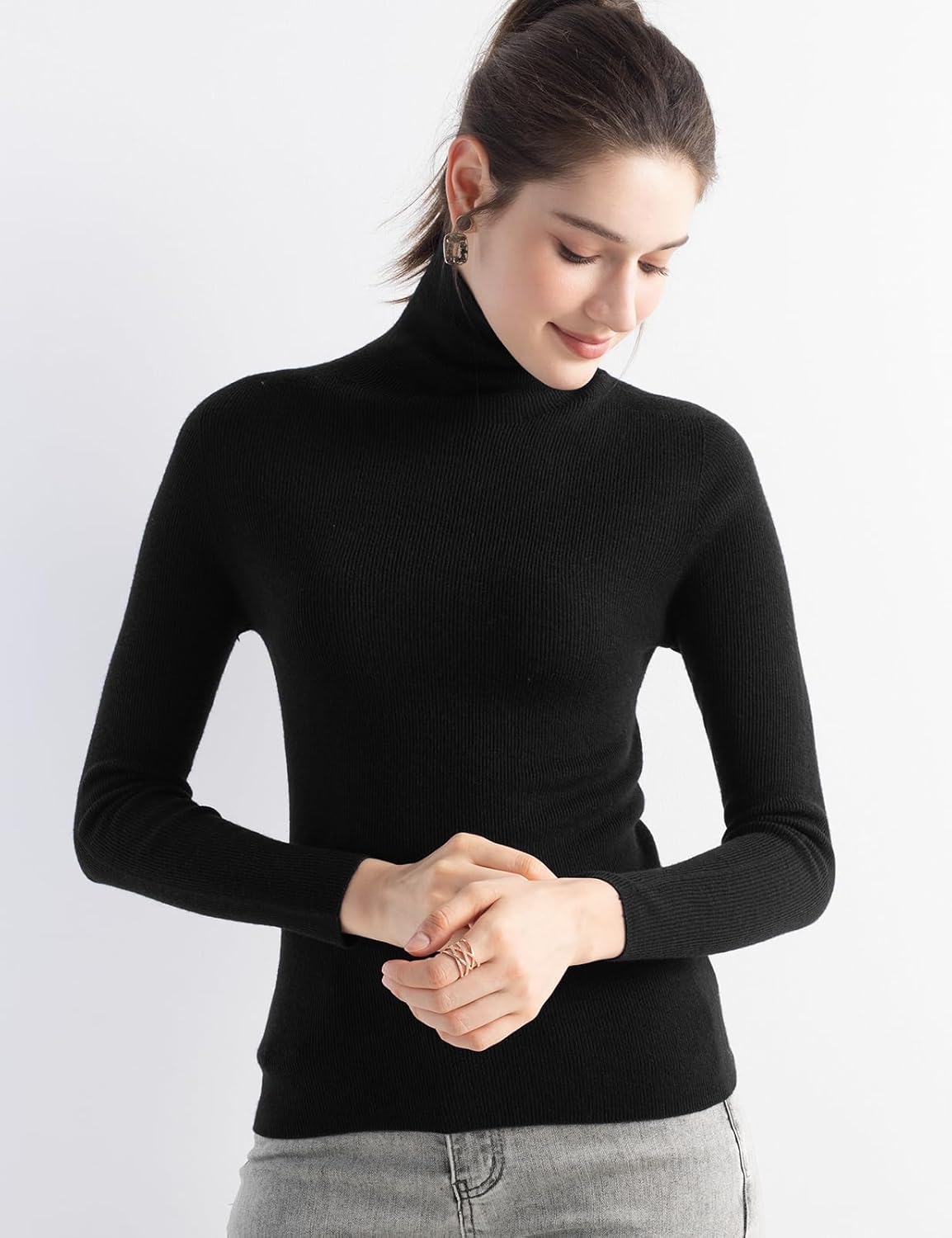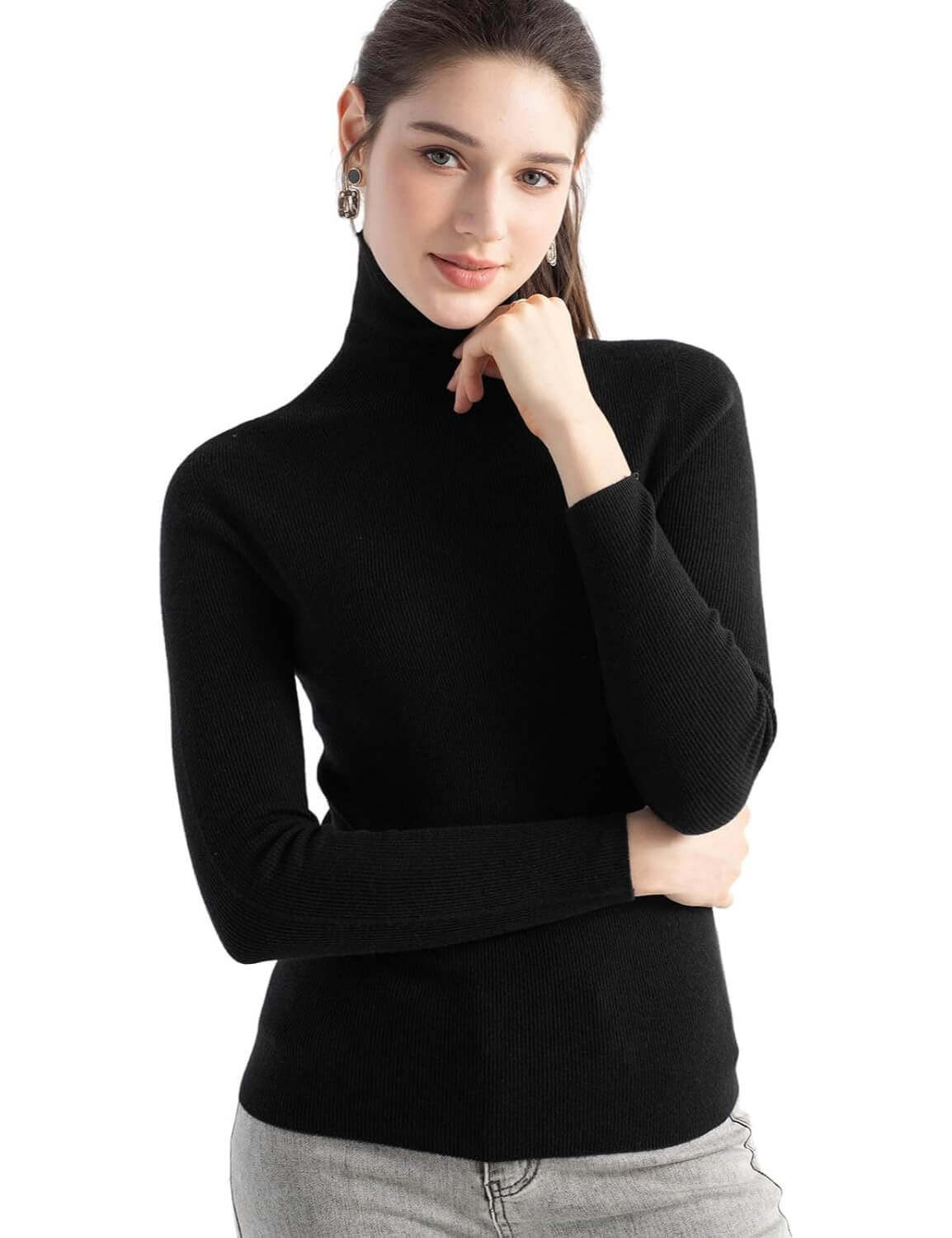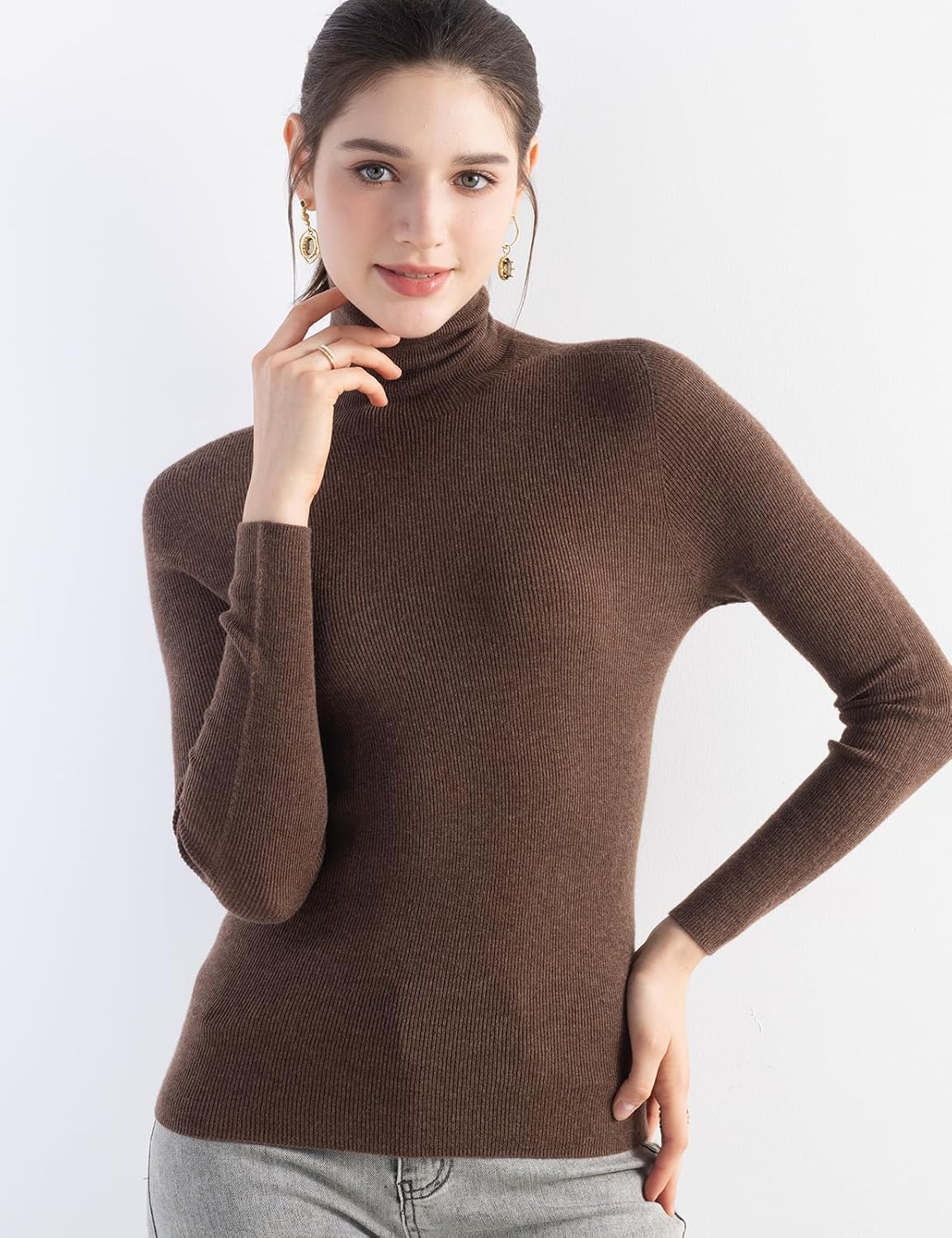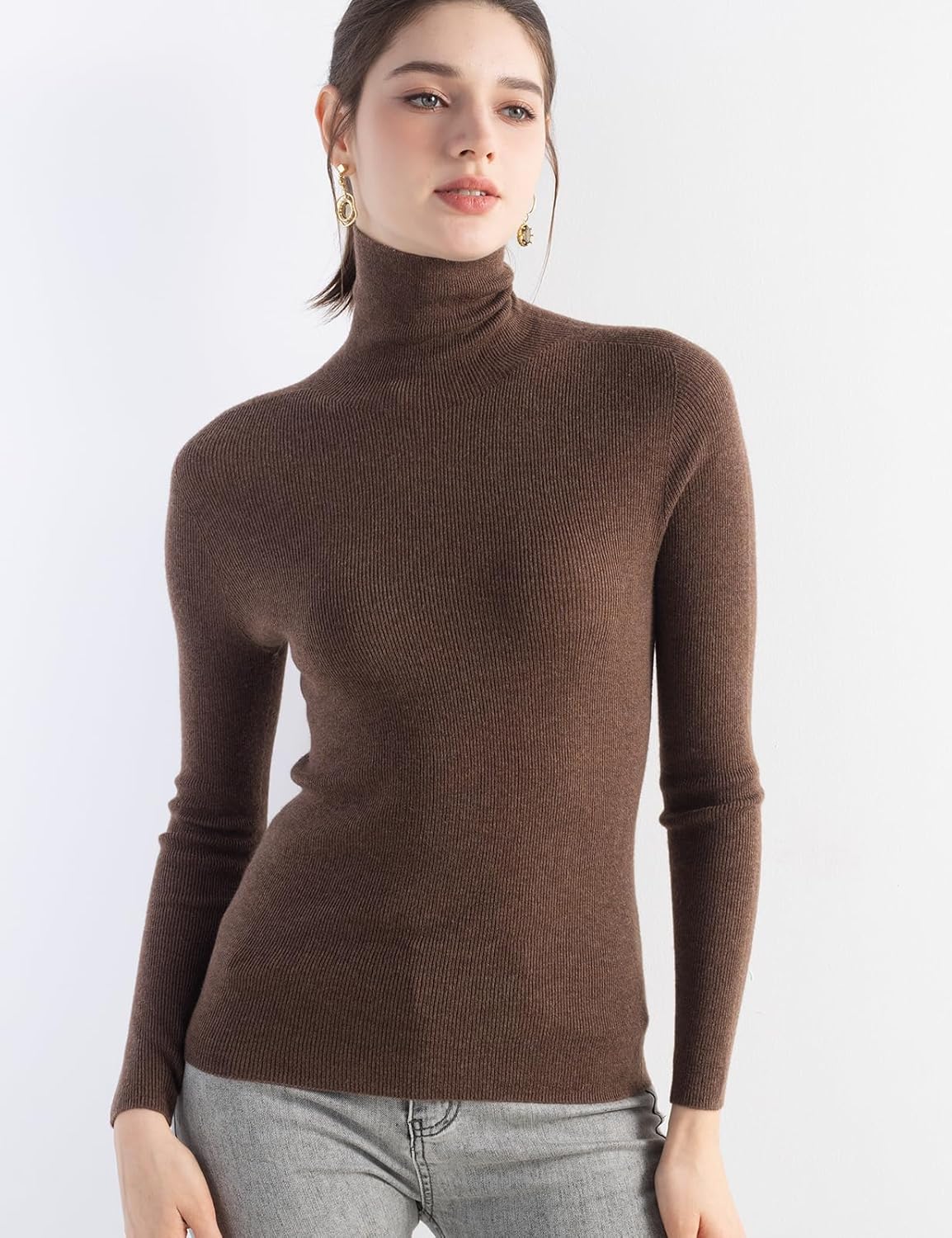 Turtleneck sweater, slim fit, medium thickness. Clasic rib design can better highlight your figure. This sweater adopts advanced seamless knitting technology, no cutting, no seams, soft and comfortable and smooth lines, makes it more comfortable to wear, won't feel tight and rub against the skin when wearing it. It is a must-have in the spring, autumn and winter wardrobe.