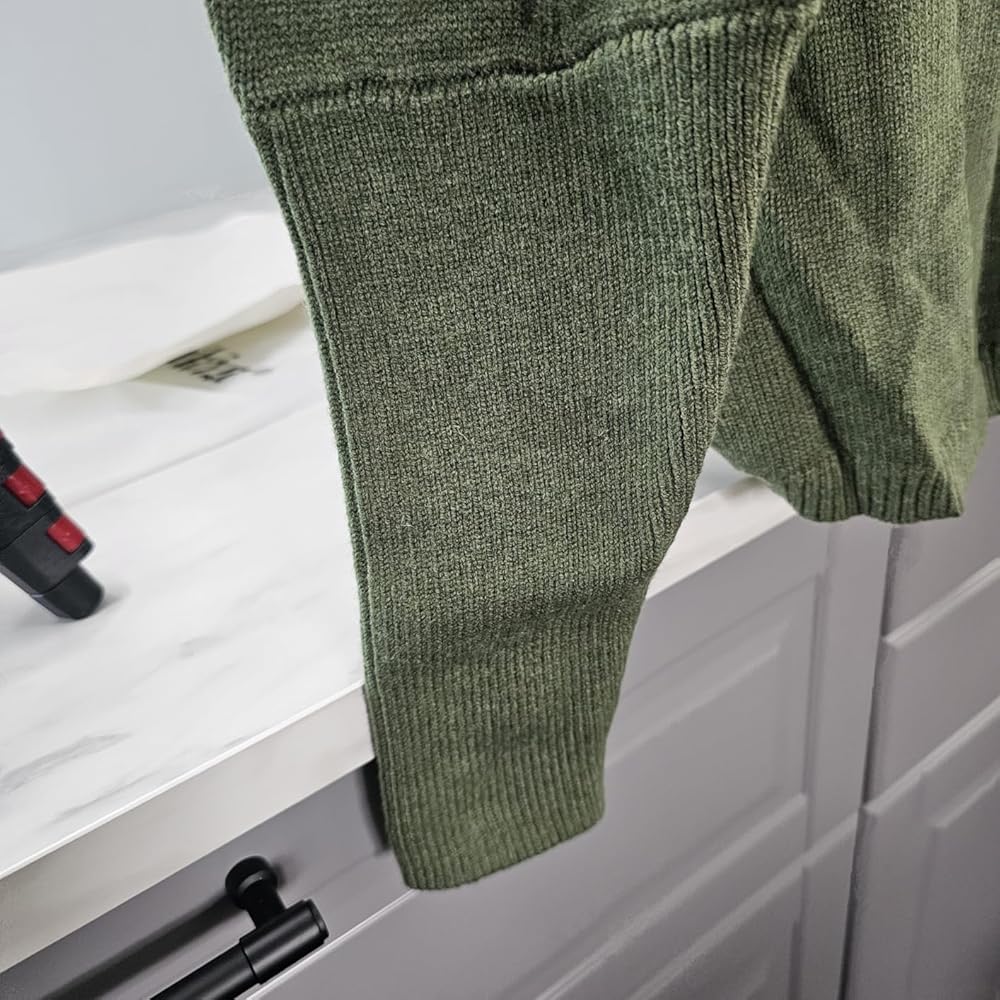 This sweater is made of 5.9% Merino wool, 40.4% anti-pilling nylon, 29.1% anti-pilling acrylic and 24.6% recycled polyester blended fabric. Merino wool brings warmth, nylon and acrylic bring a lasting and smooth touch, ensuring no fuzz or pilling even after frequent wear. Recycled Polyester adds durability while enhancing breathability and moisture-wicking, making you feel comfortable all day long.