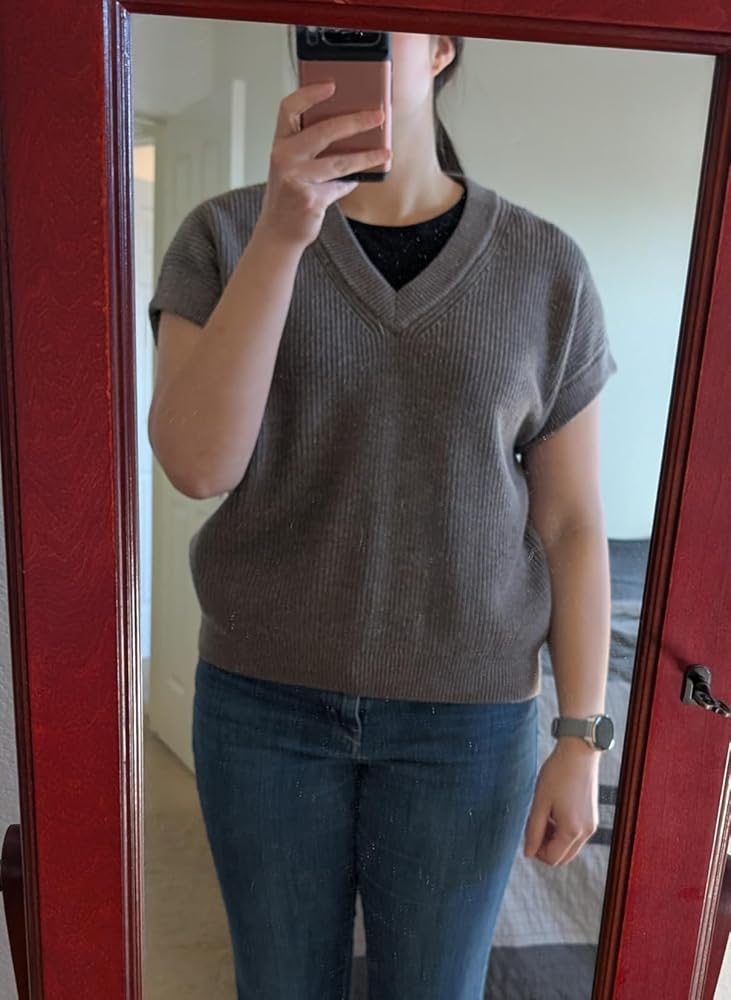 v neck sweater vest, regular fit, medium thickness, sleeveless. This knitted sweater vest will make you look more elegant and highlight your temperament. It is a must-have in the spring, summer, autumn and winter wardrobe.