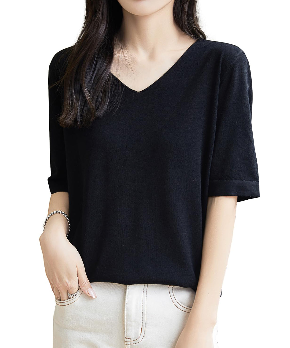 100% Merino Wool V-Neck Short Sleeve Sweater