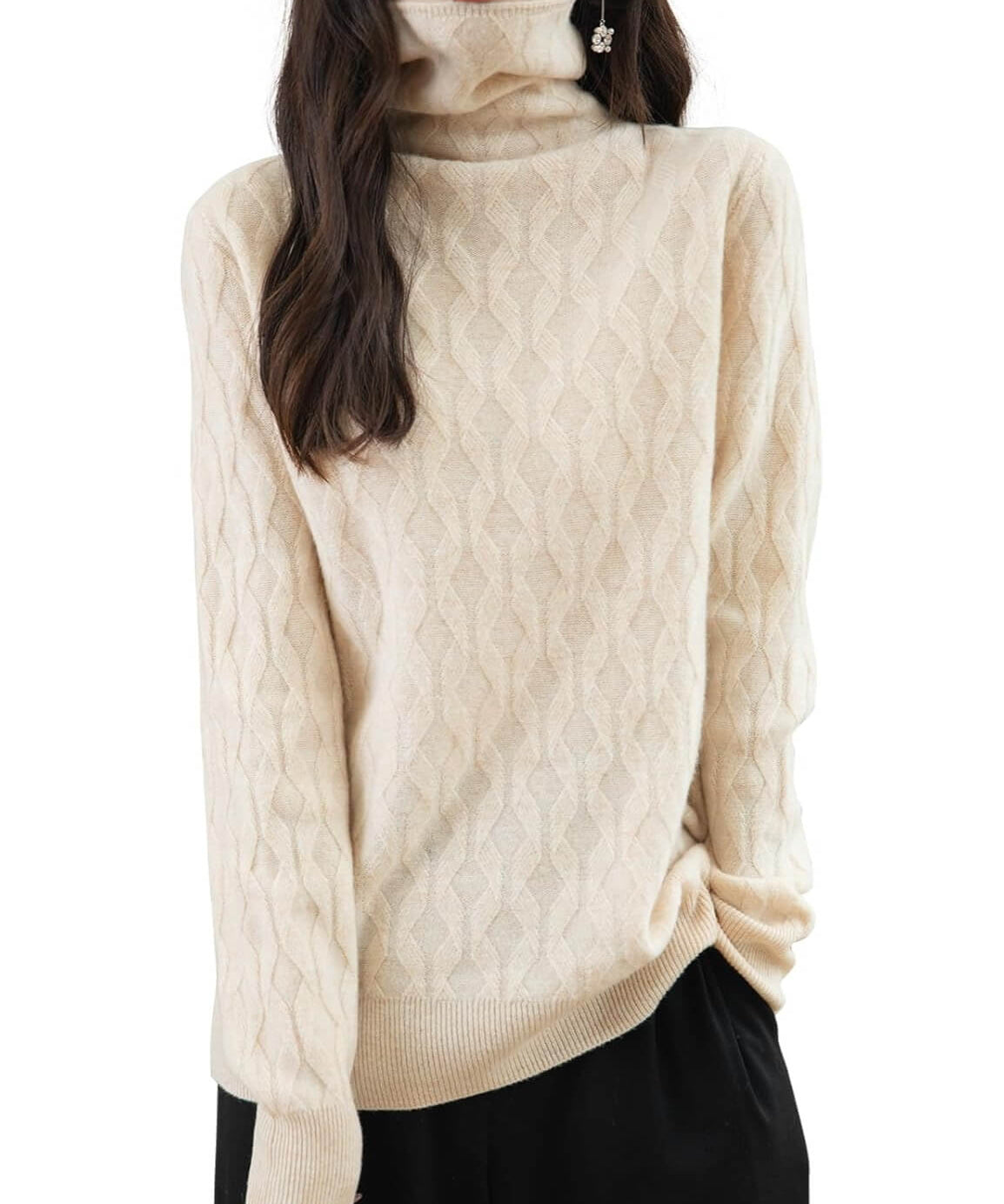Suéter feminino 100% lã merino com gola alta