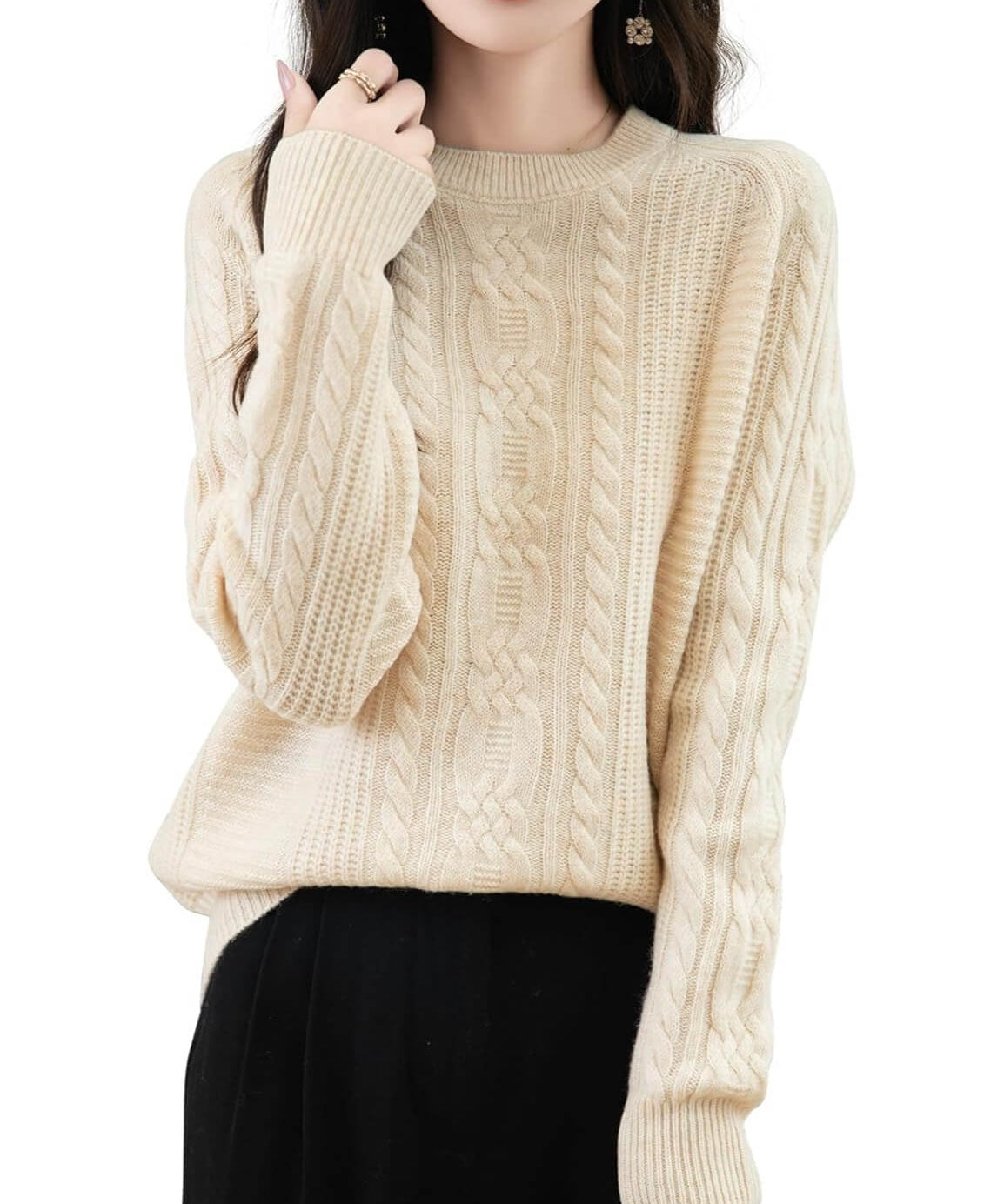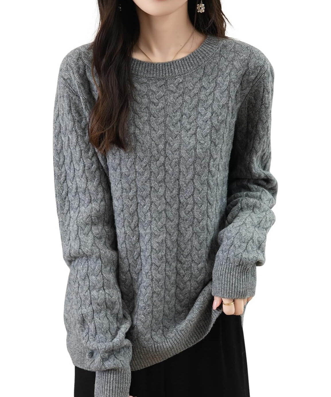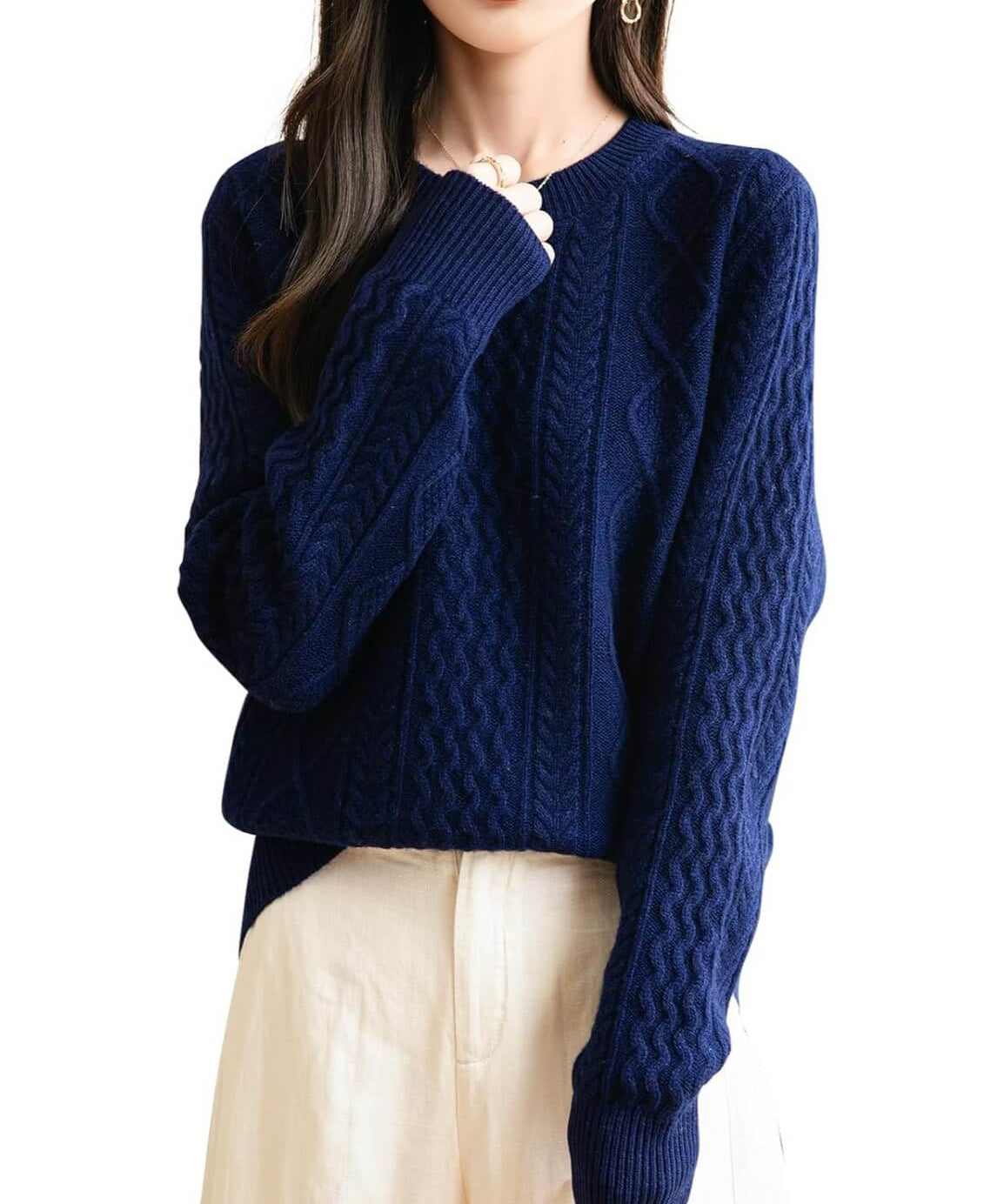 Suéter feminino 100% lã merino sólido com gola redonda