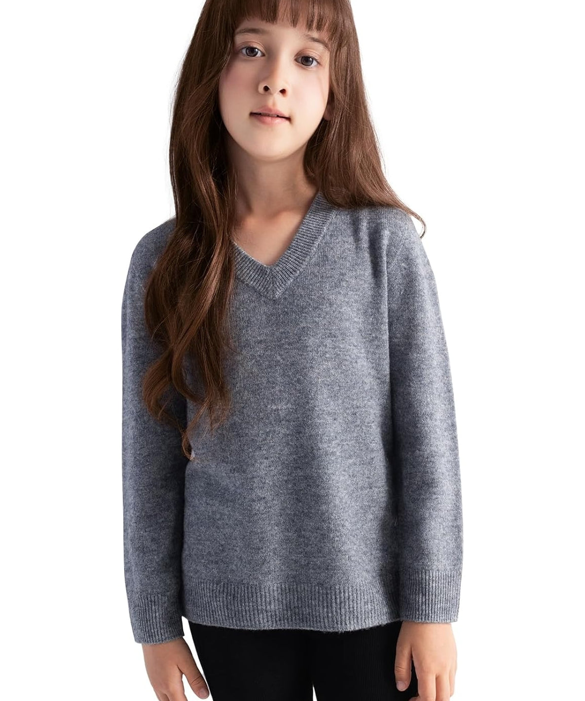 Suéter 100% lã merino sem costura para meninos e meninas com decote em V