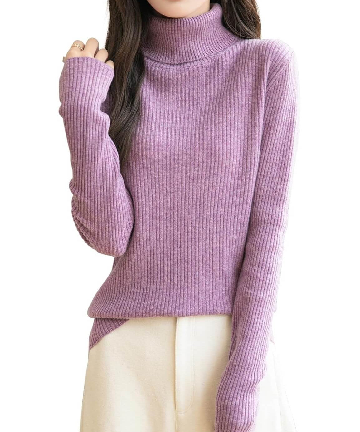 Suéter feminino 100% lã merino sem costura com gola simulada