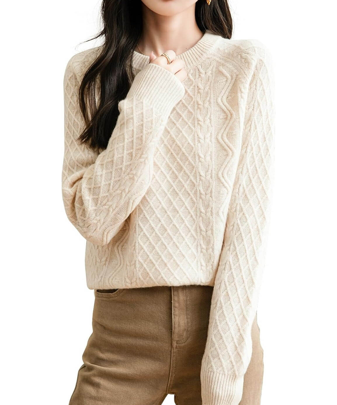 Suéter feminino 100% lã Merino com gola redonda sem costura