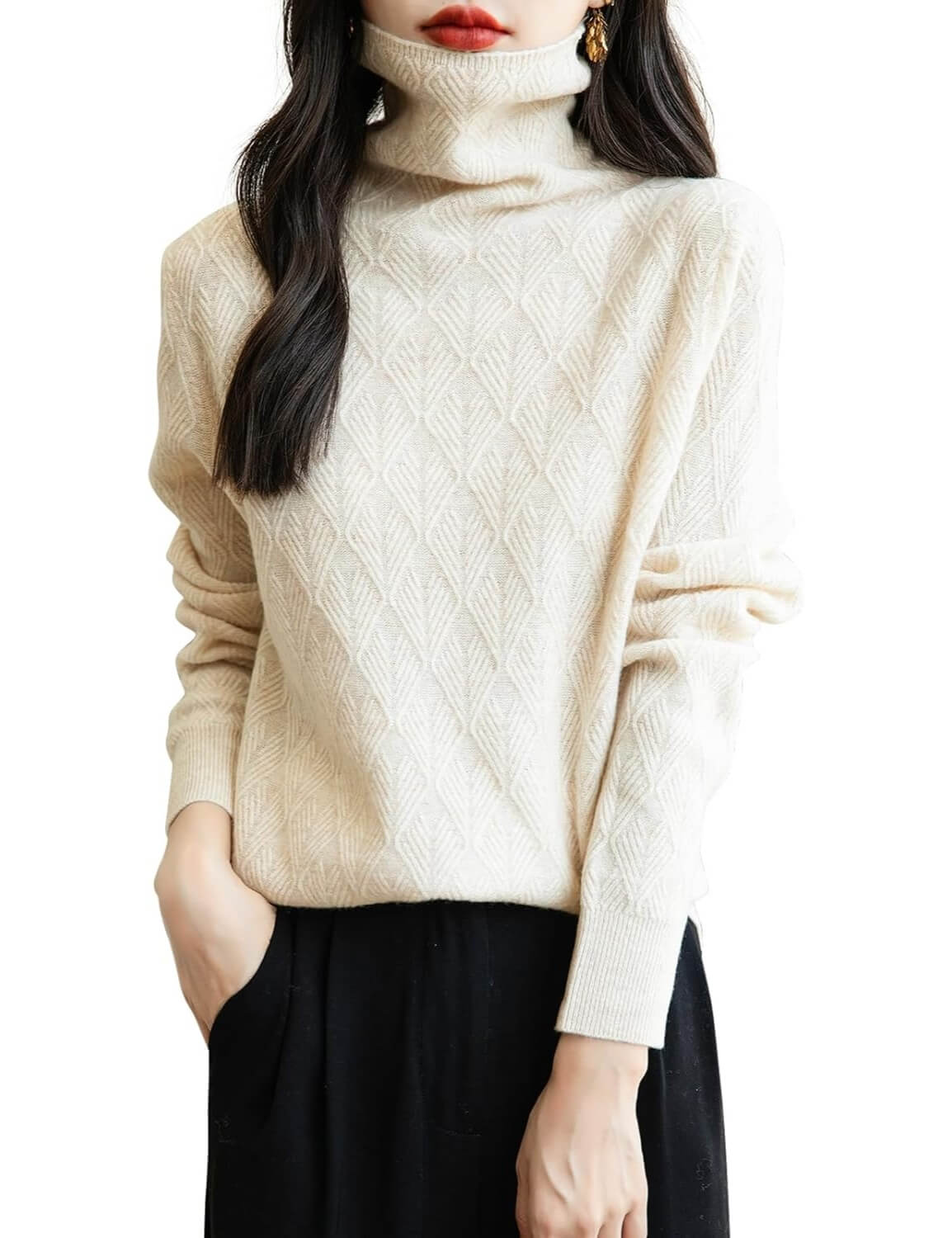 I have four Chanyarn sweaters, and they are all lovely, but this one is my favorite. The pattern is interesting and unique, and the caramel color is absolutely stunning! My regular size, small, fits me beautifully. I am on the taller side with long arms and a long neck and both the turtleneck and sleeve length are perfect. Very elegant, quality and timeless sweater - it felt strange to pay so much for clothing from Amazon, but this is priced appropriately, if anything less than it would be elsewhere for a comparable sweater.