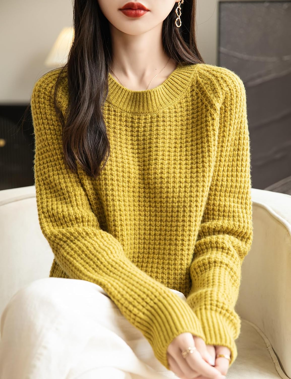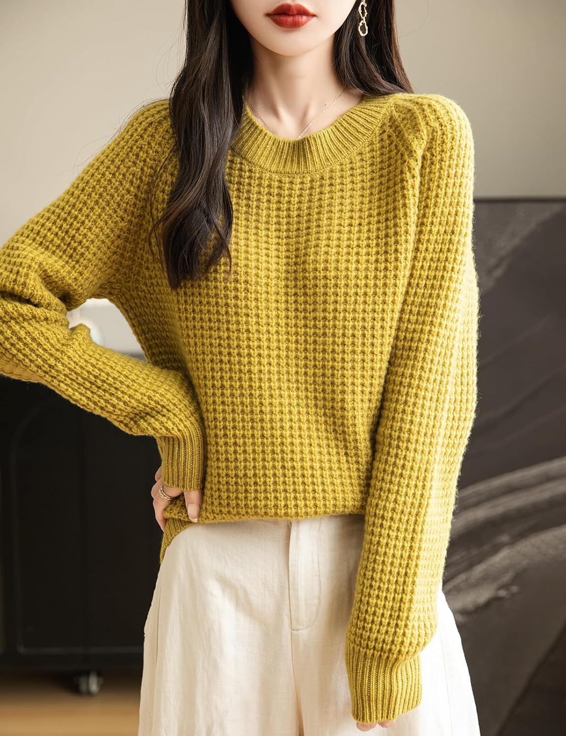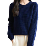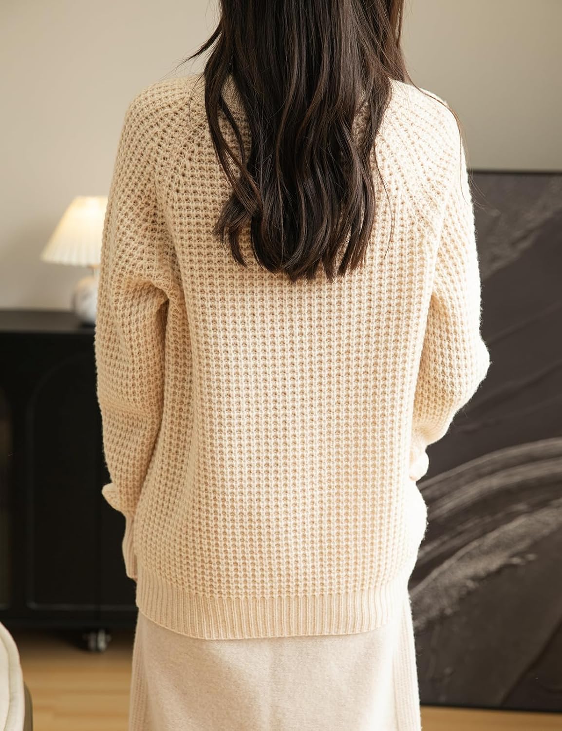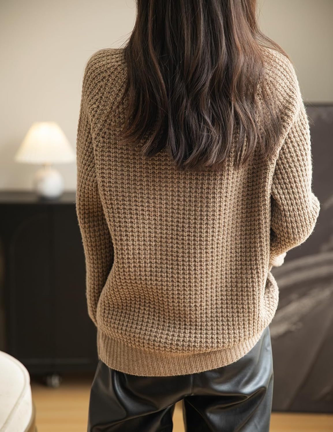 Suéter 100% lã merino waffle tricotado com gola redonda