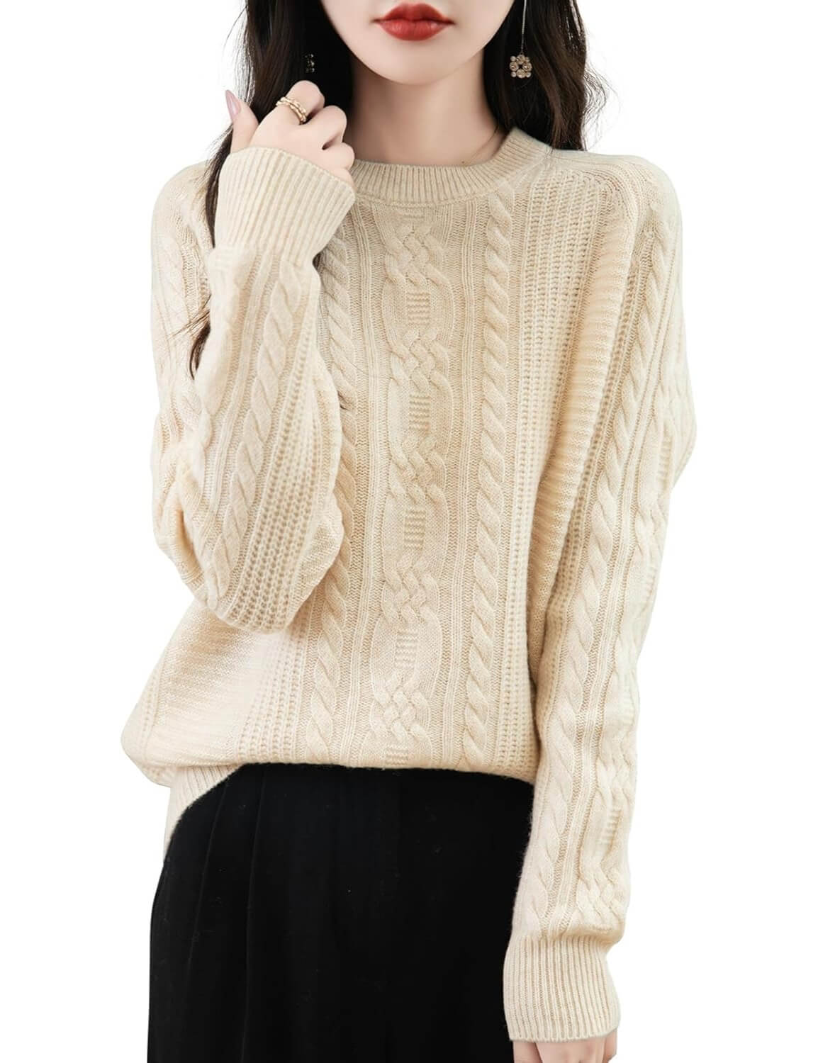 This wool sweater has a nice classic cable knit design on it. The wool is very soft and warm, so I am very happy about that. This needs to be hand or delicate washed, and for sure hang to dry. Wool will shrink as it gets tossed around in the washer and dryer because the wool fibers catch on themselves and become smaller and smaller over time. This sweater also runs VERY small...so I would for sure size up from normal, and 2 sizes up if you don't want it to be form fitting. And remember, that this will only naturally shrink over time, so don't settle for it being too tight to begin with. If you keep those things in mind, then you will be very happy this winter with this soft, warm, wool sweater.