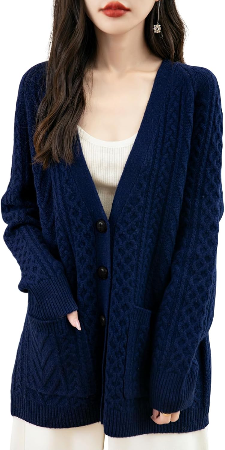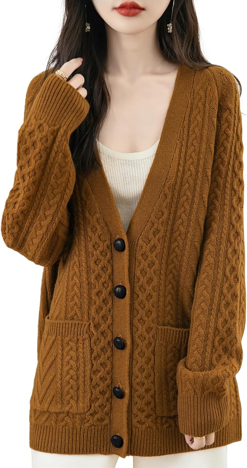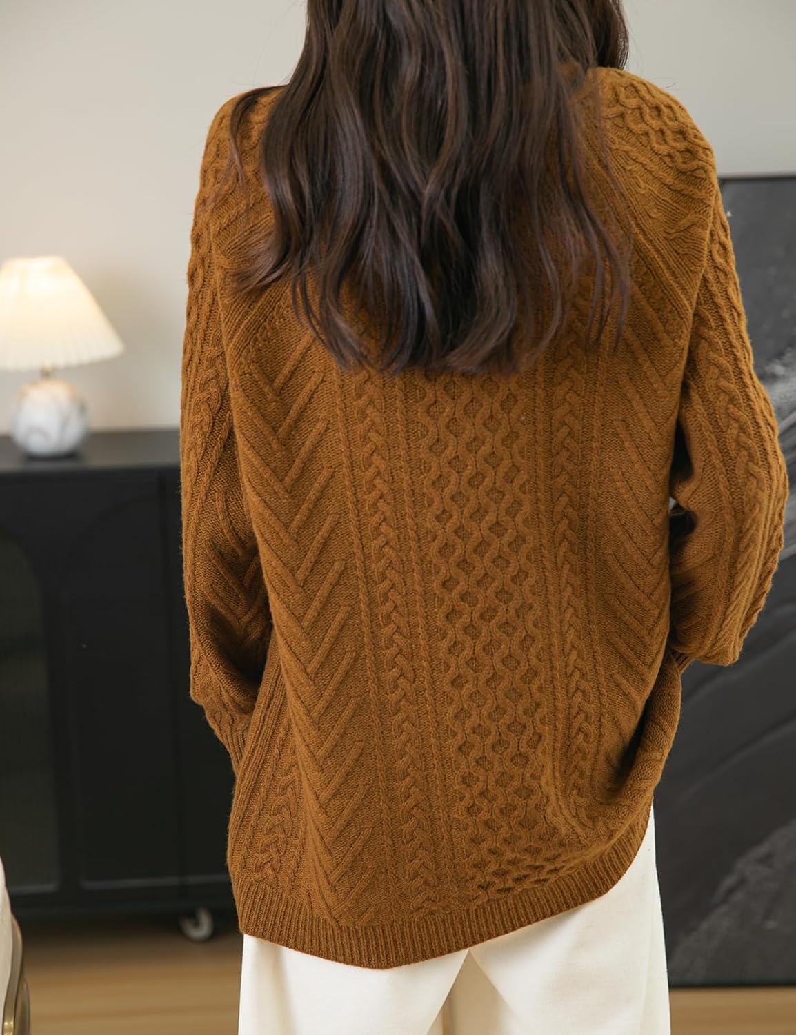 - Funktioner: Fint 5 gauge-tyg, tjockt. Normal passform, enfärgad, v-ringning, långa ärmar, klassisk kabelsömsdesign, ribbade ärmar. Hög elasticitet, avslappnad stil. Lätt, varm, mjuk, mycket bekväm att bära. Denna koftatröja i merinoull har ett unikt texturmönster som ger visuellt intresse och charm till din vintergarderob.