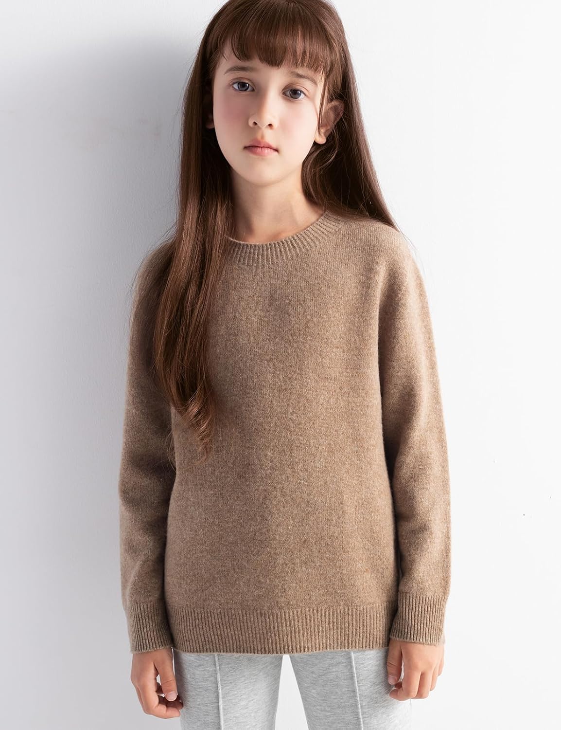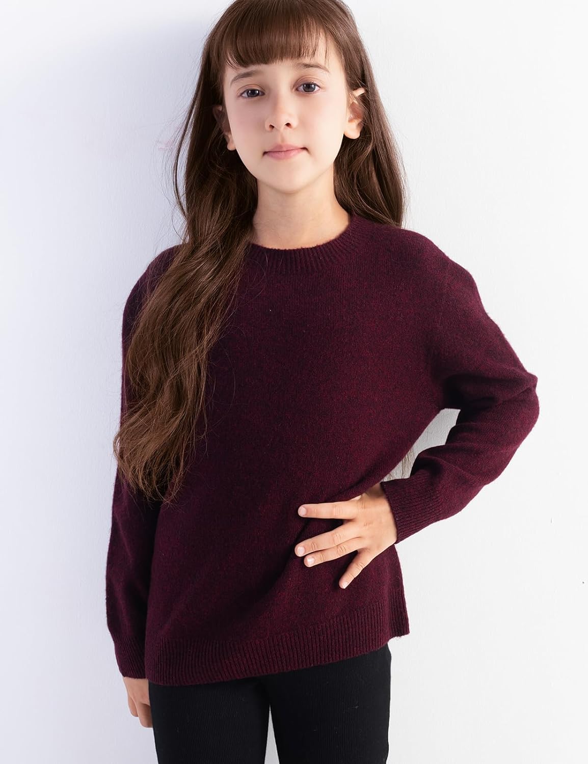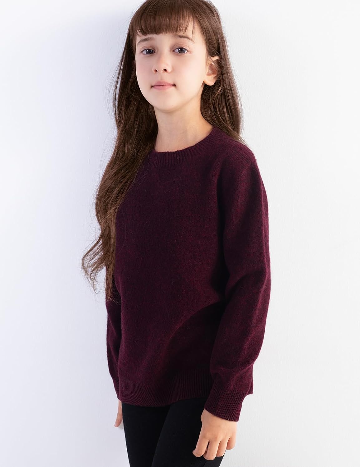 Sömlös tröja med rund hals för flickor i 100 % merinoull