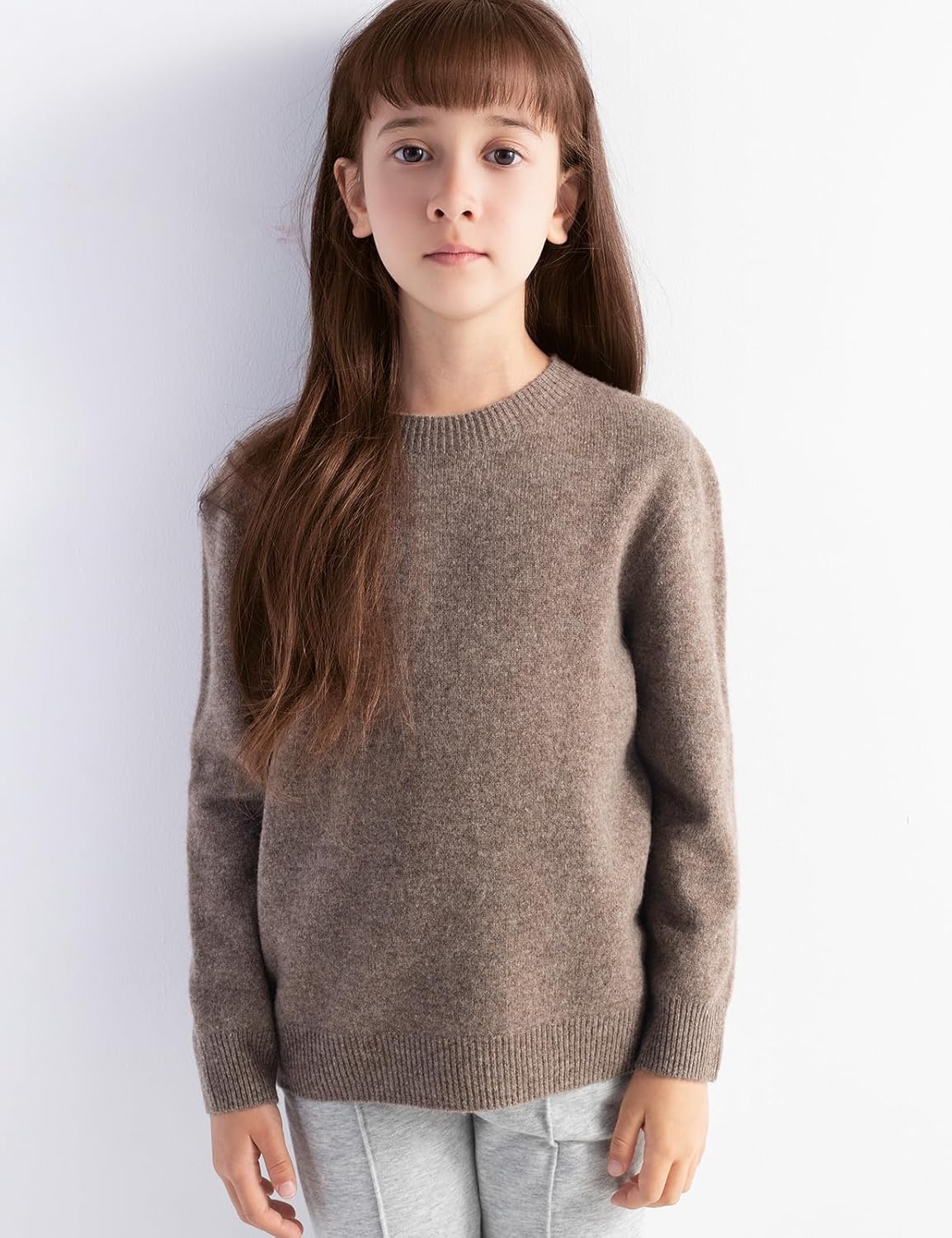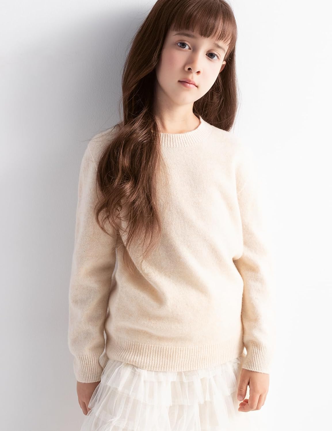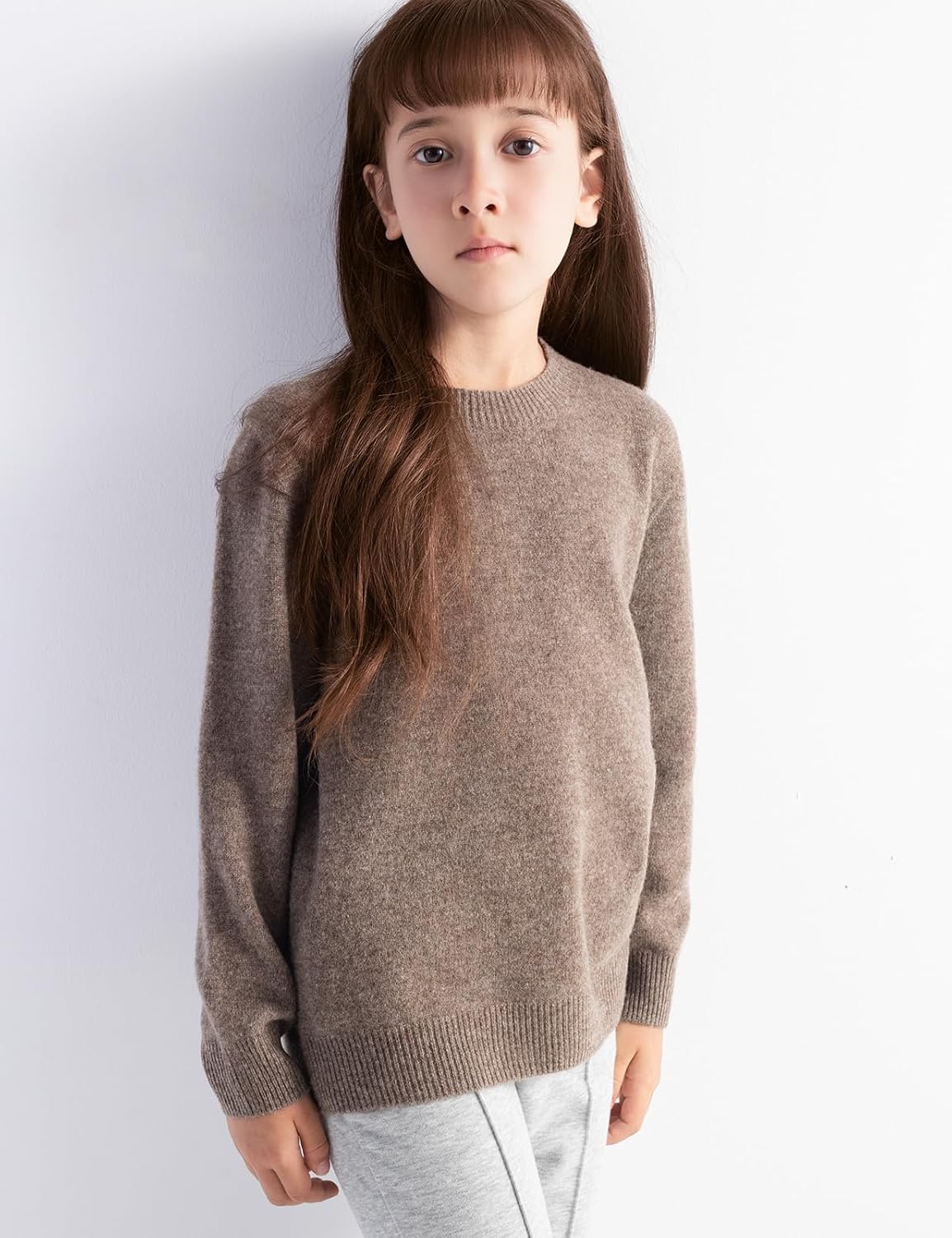 Sömlös tröja med rund hals för flickor i 100 % merinoull