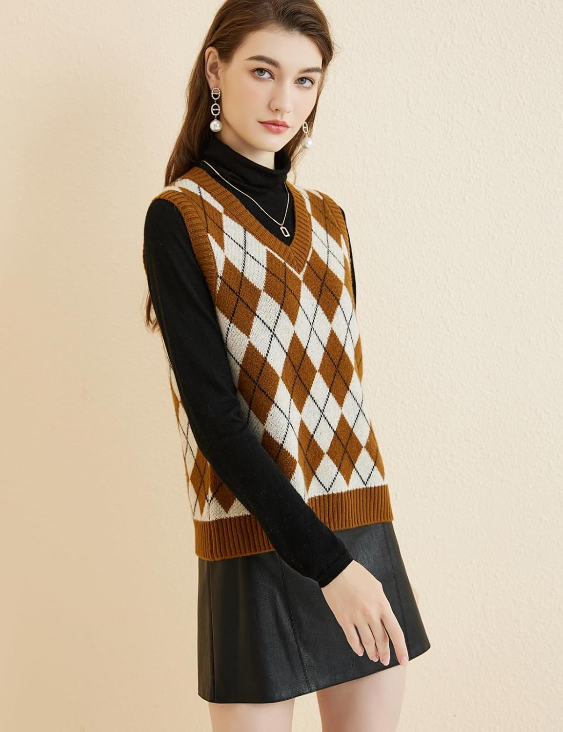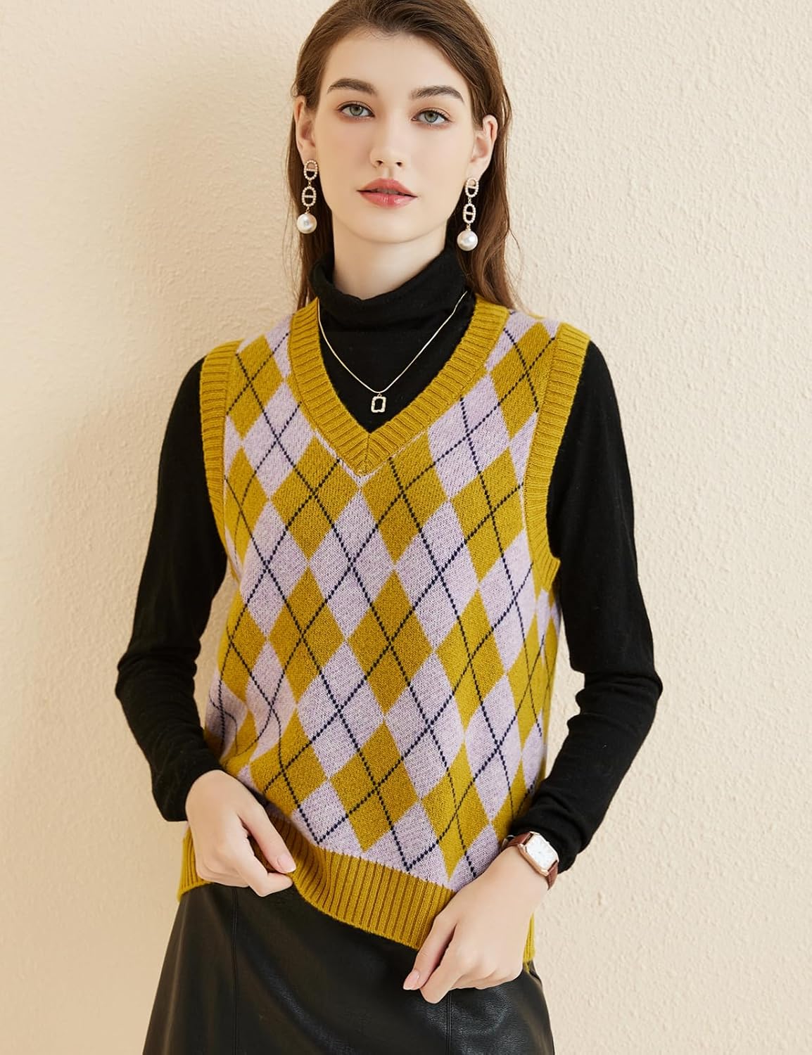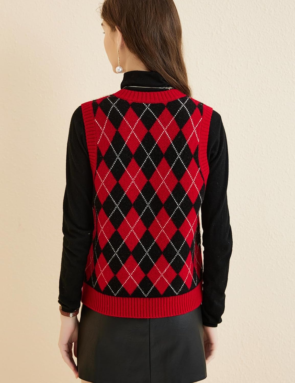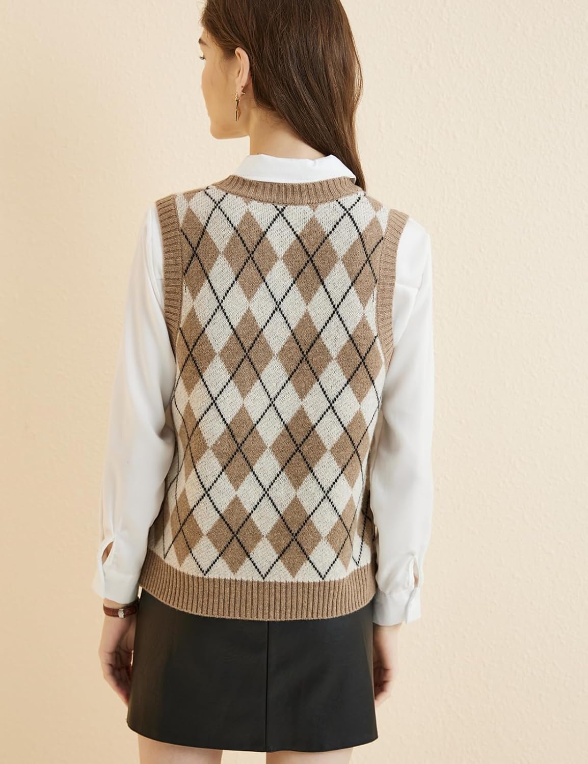 This is a nice, soft sweater vest. The pattern looks nice. Not sure what makes this a women’s sweater vest. The style and patttern are more like many traditionally men’s sweater vests.