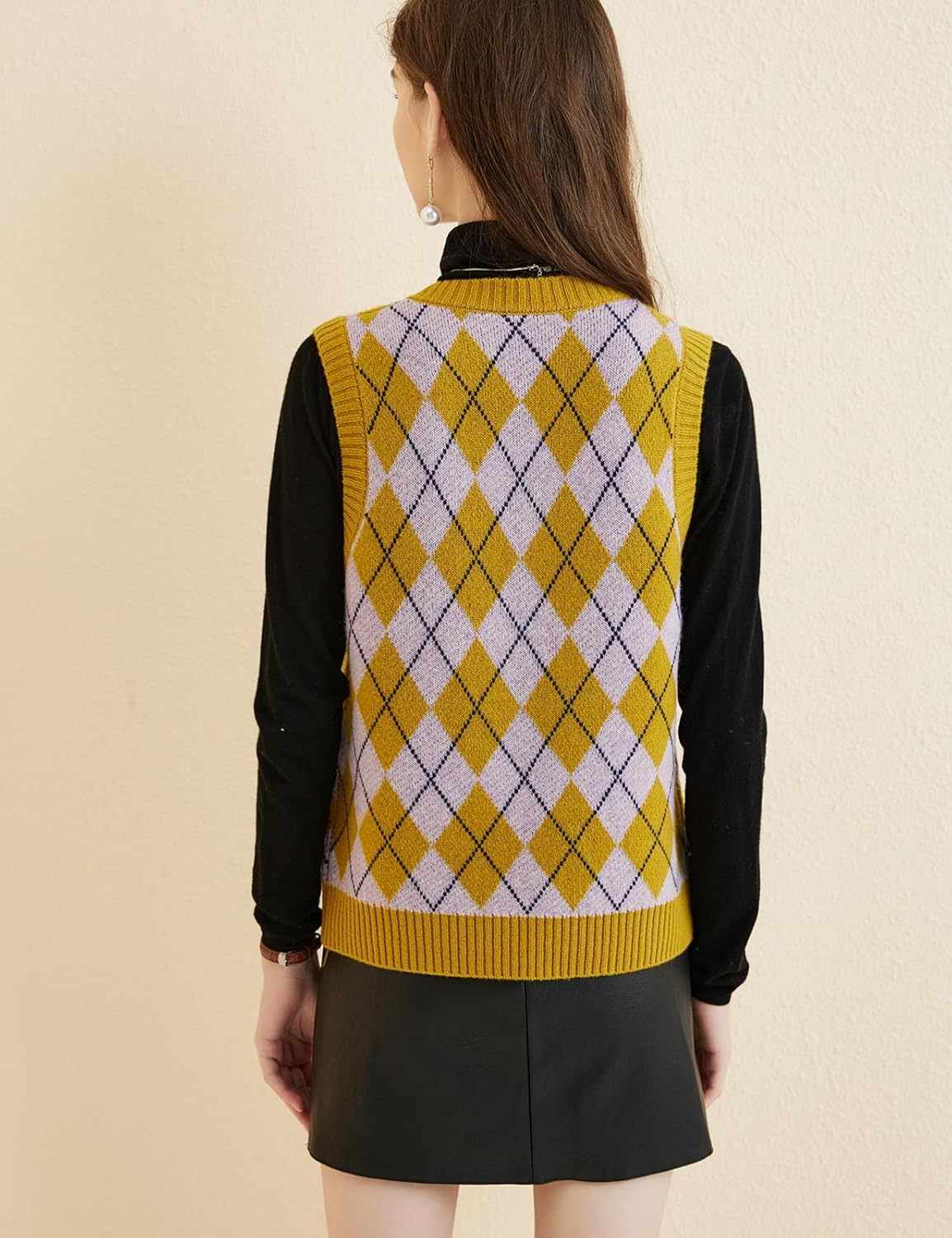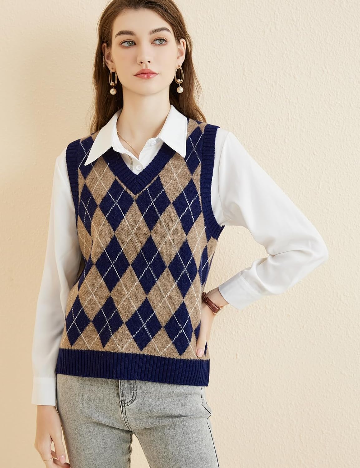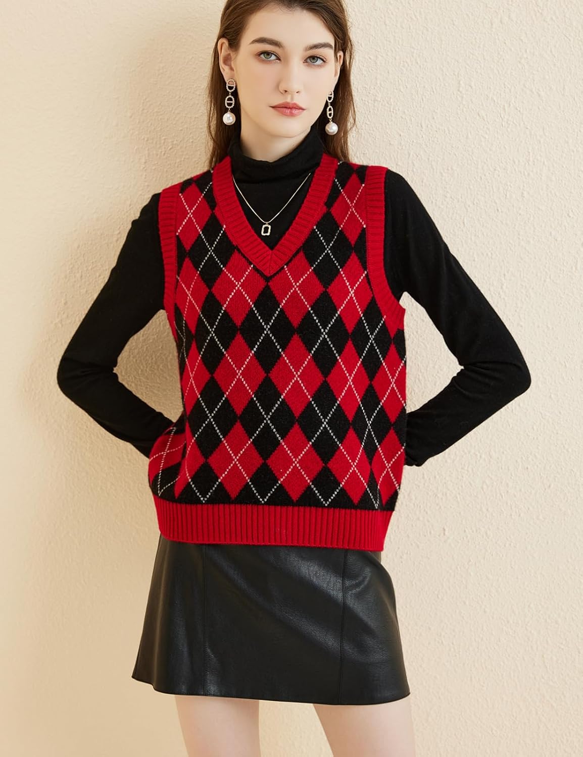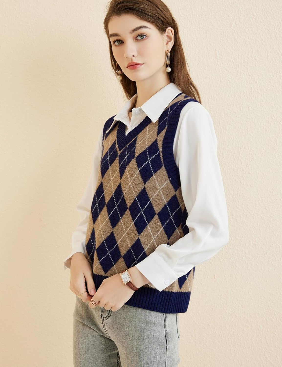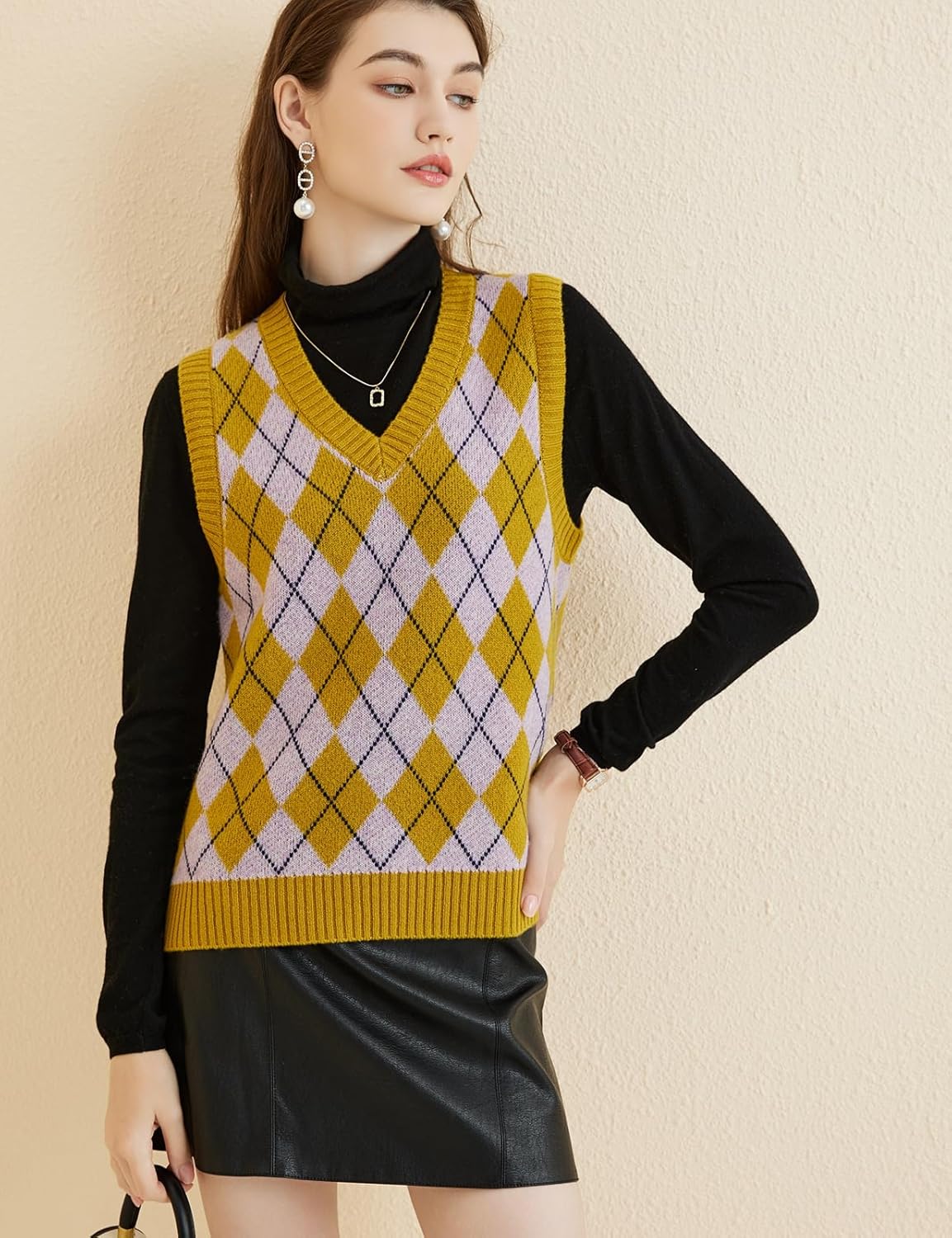 This is a nice, soft sweater vest. The pattern looks nice. Not sure what makes this a women’s sweater vest. The style and patttern are more like many traditionally men’s sweater vests.