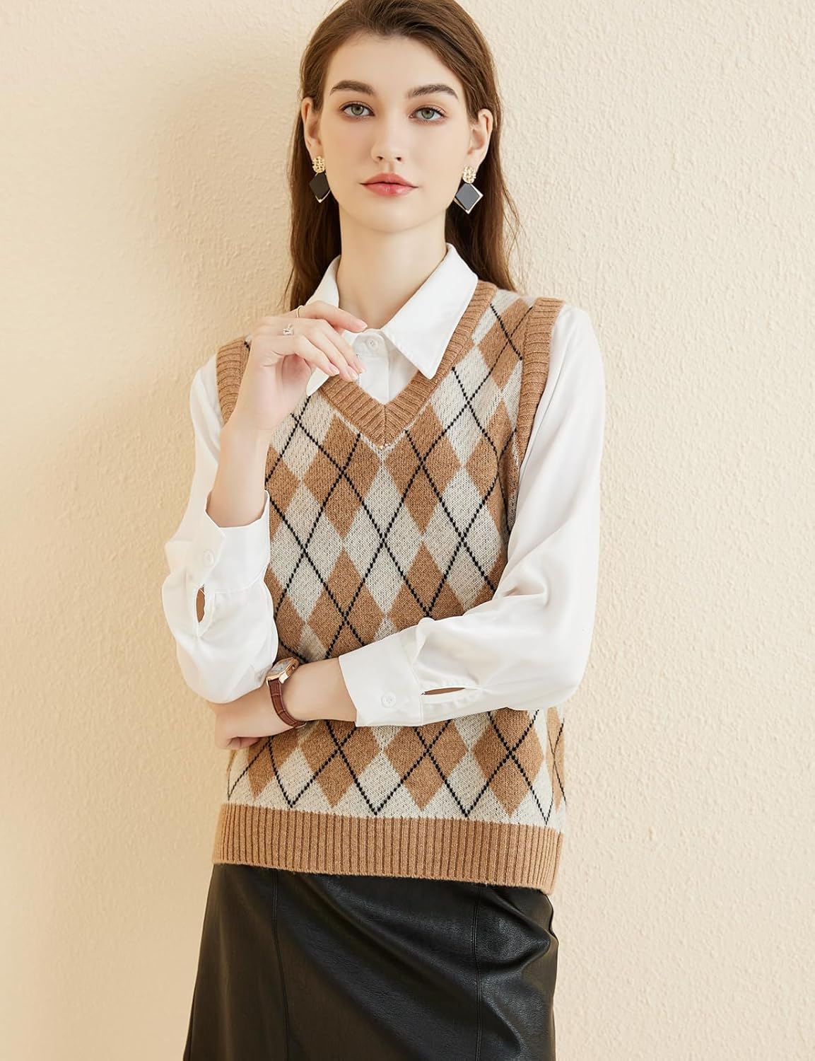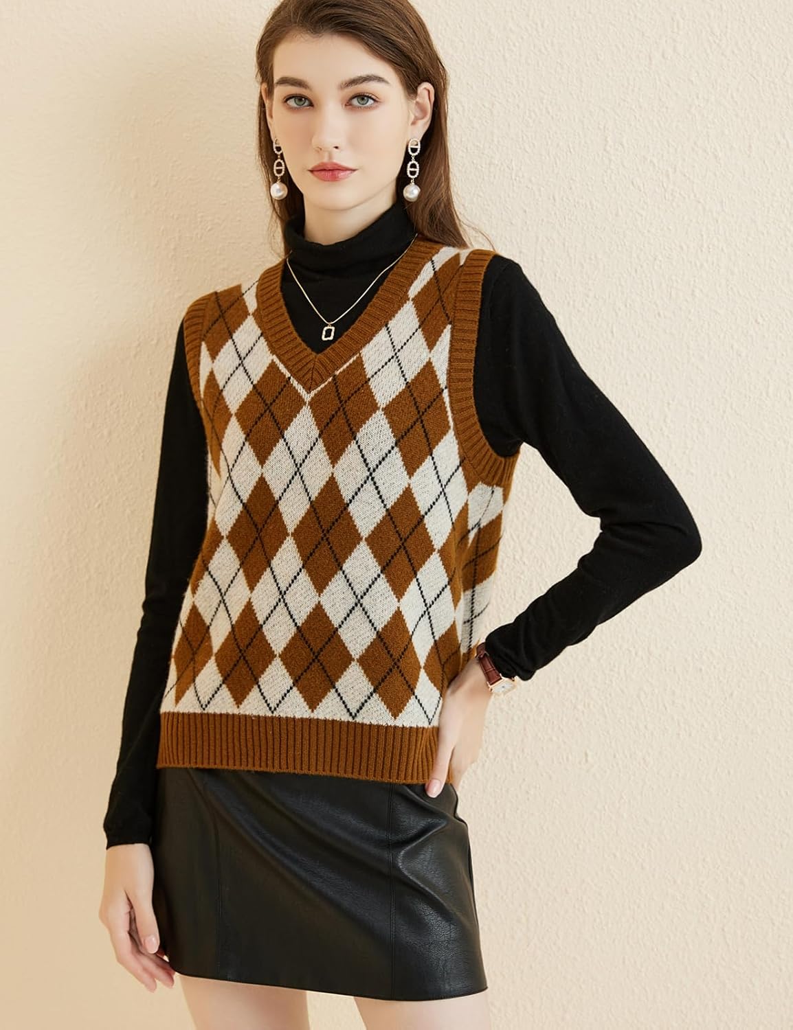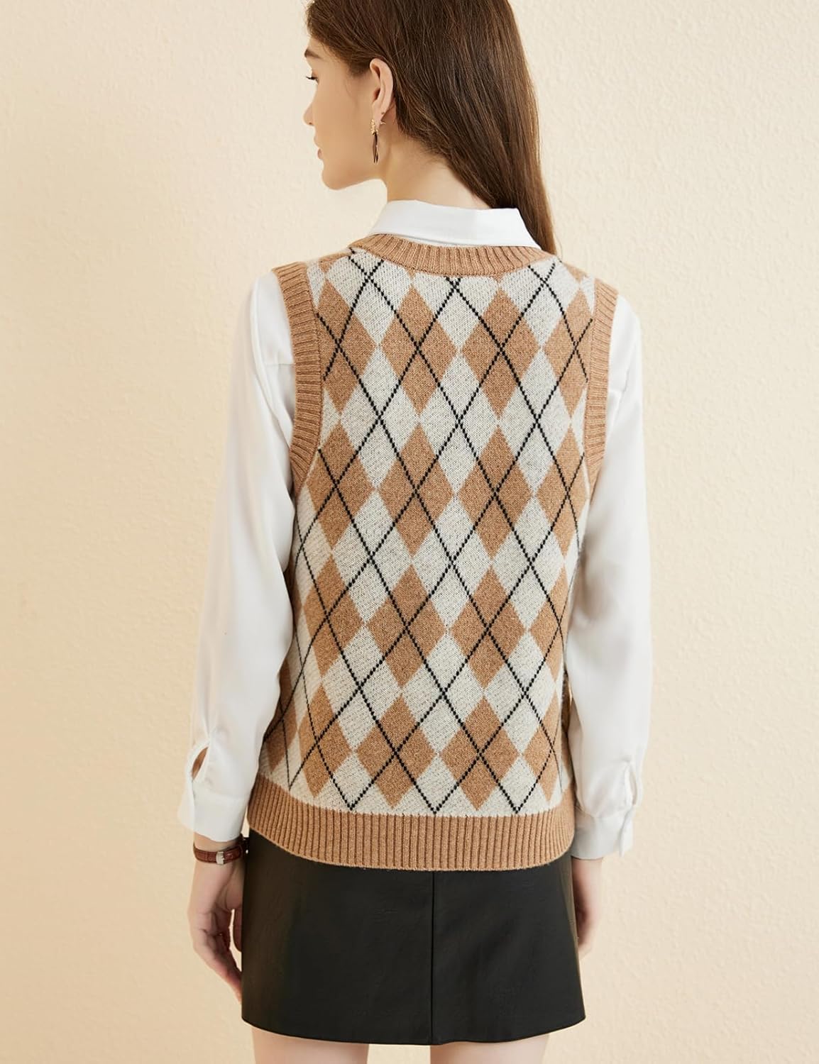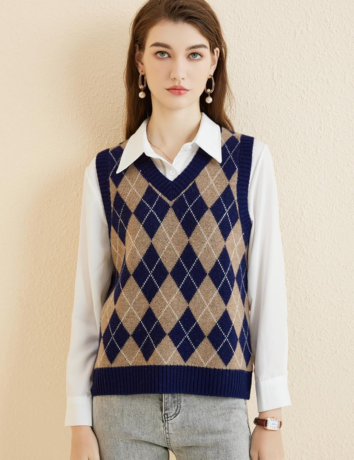 This is a nice, soft sweater vest. The pattern looks nice. Not sure what makes this a women’s sweater vest. The style and patttern are more like many traditionally men’s sweater vests.